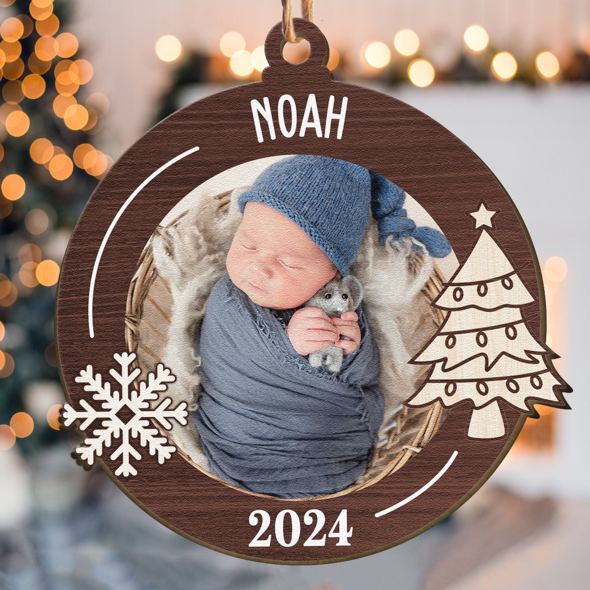 Newborn First Christmas Baby Gift - Personalized Wooden Photo Ornament