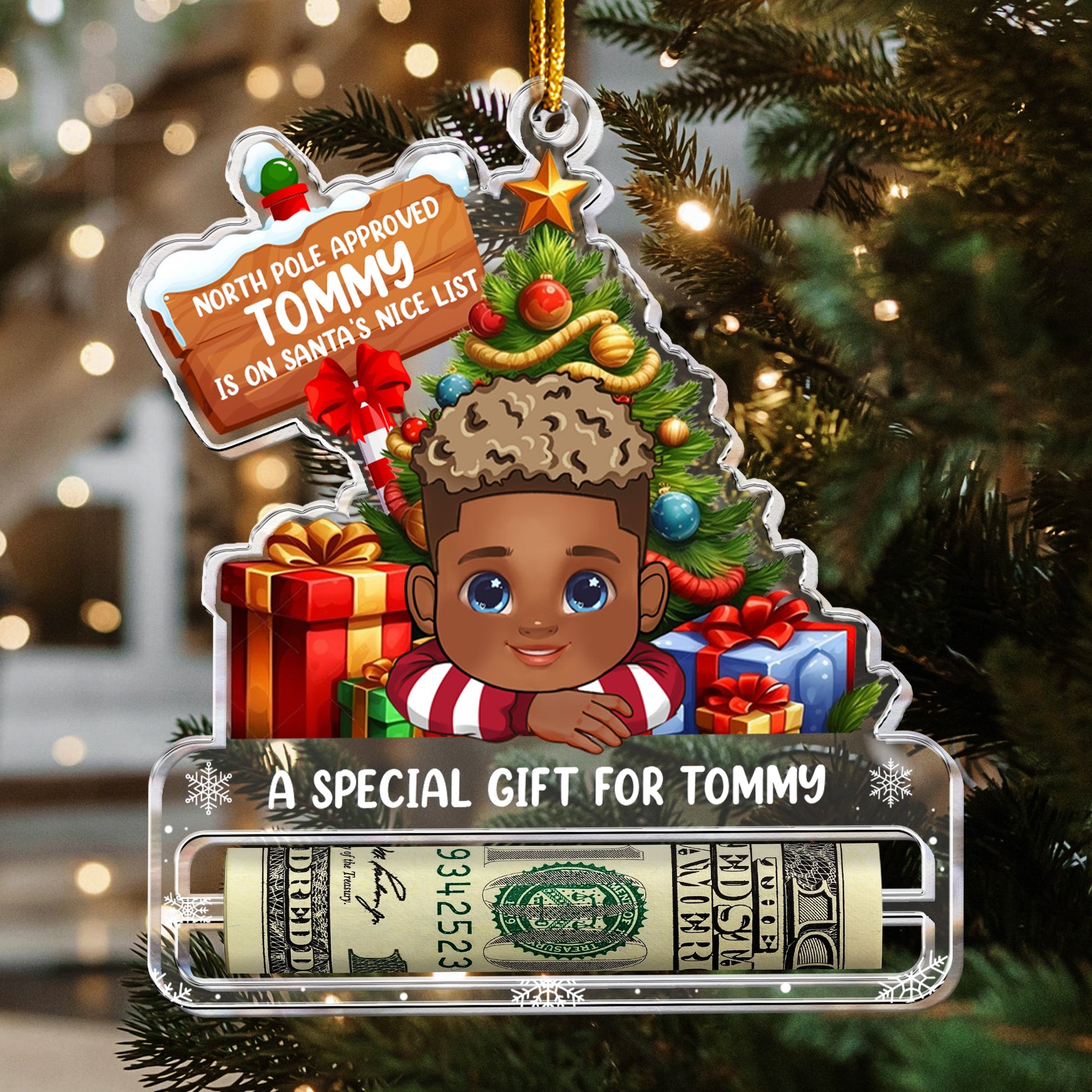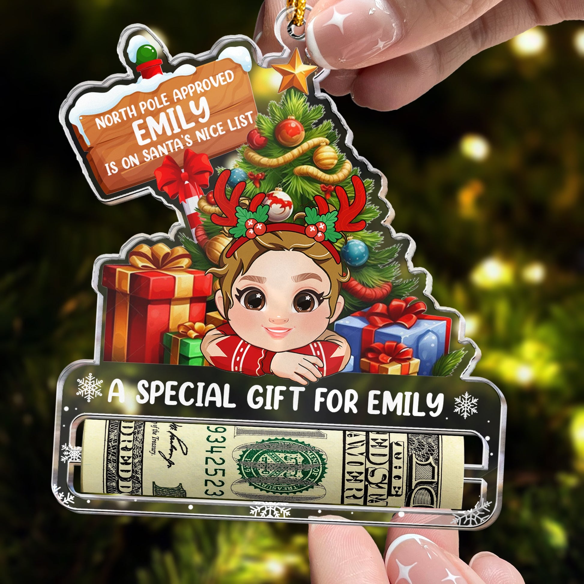 Nice List Santa Christmas Money Holder For Kids, Grandkids - Personalized Acrylic Ornament
