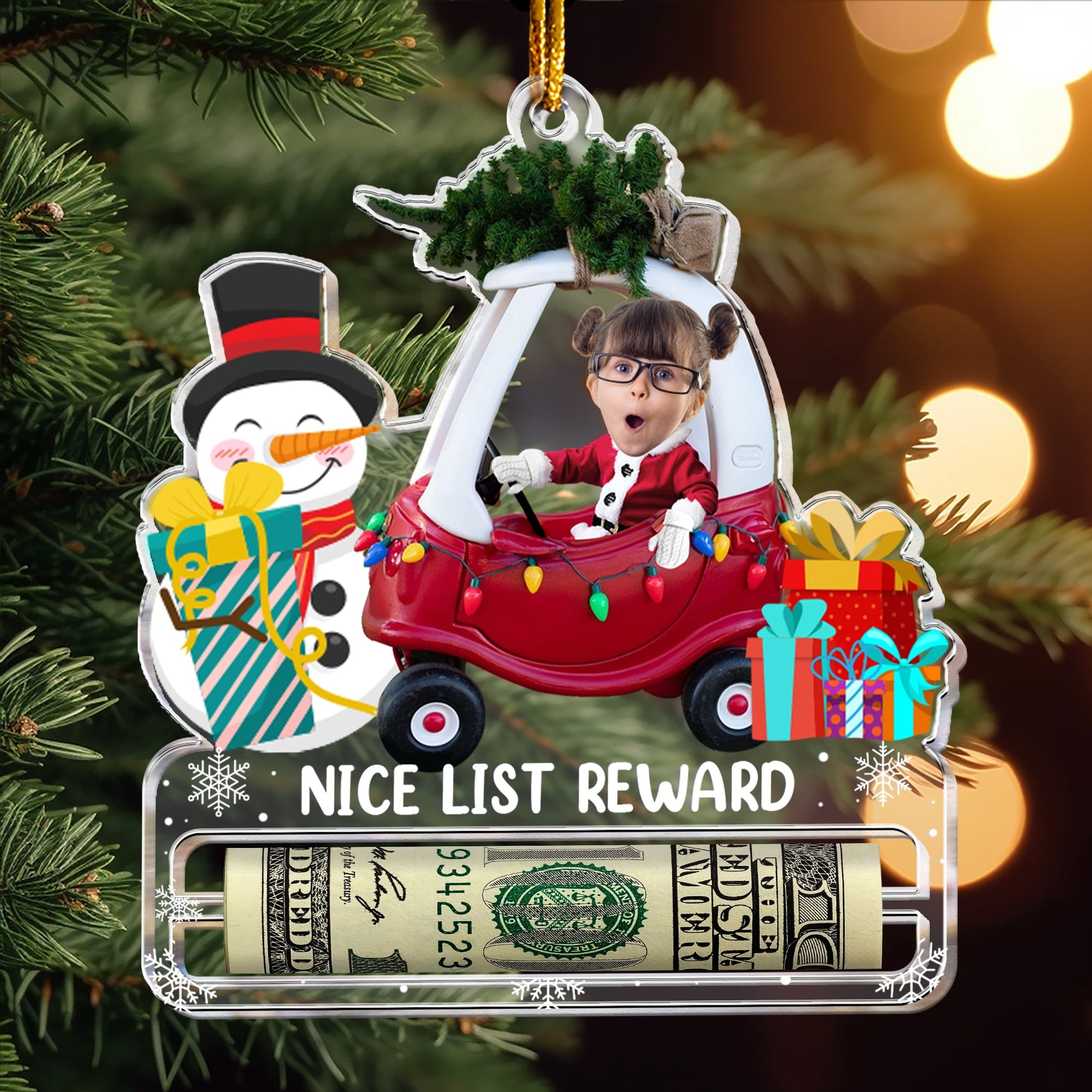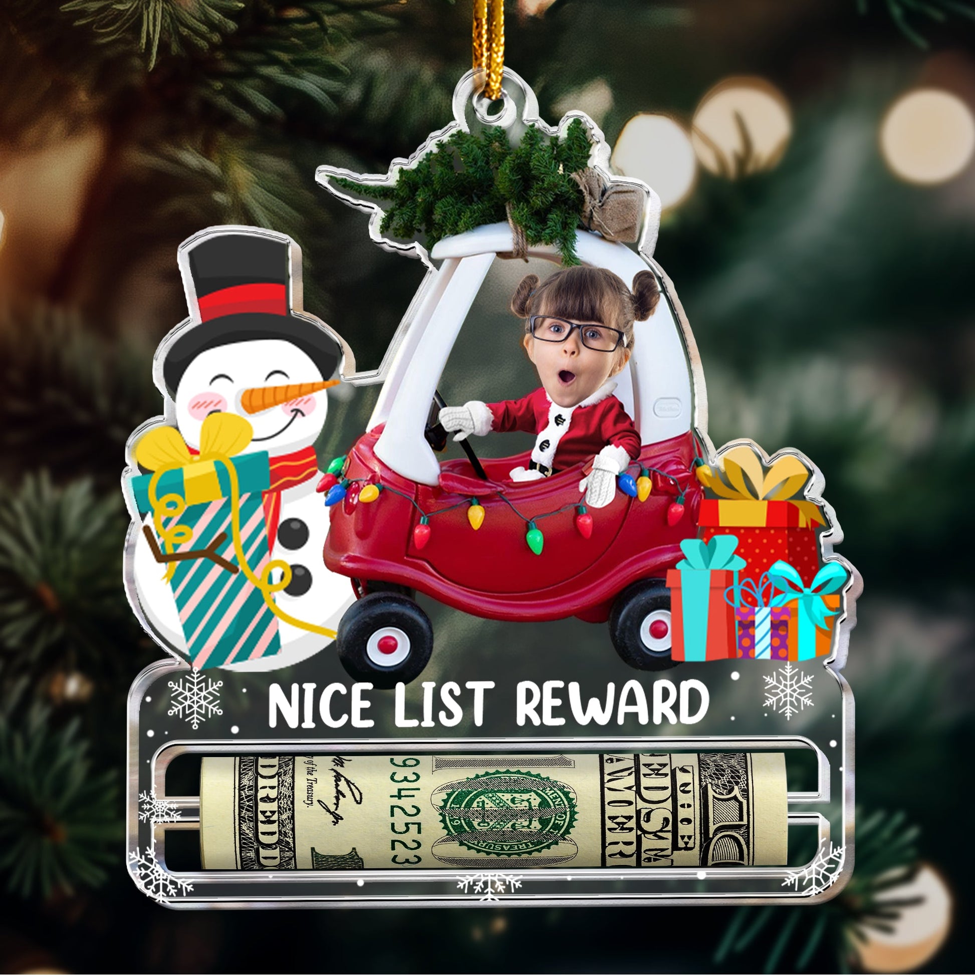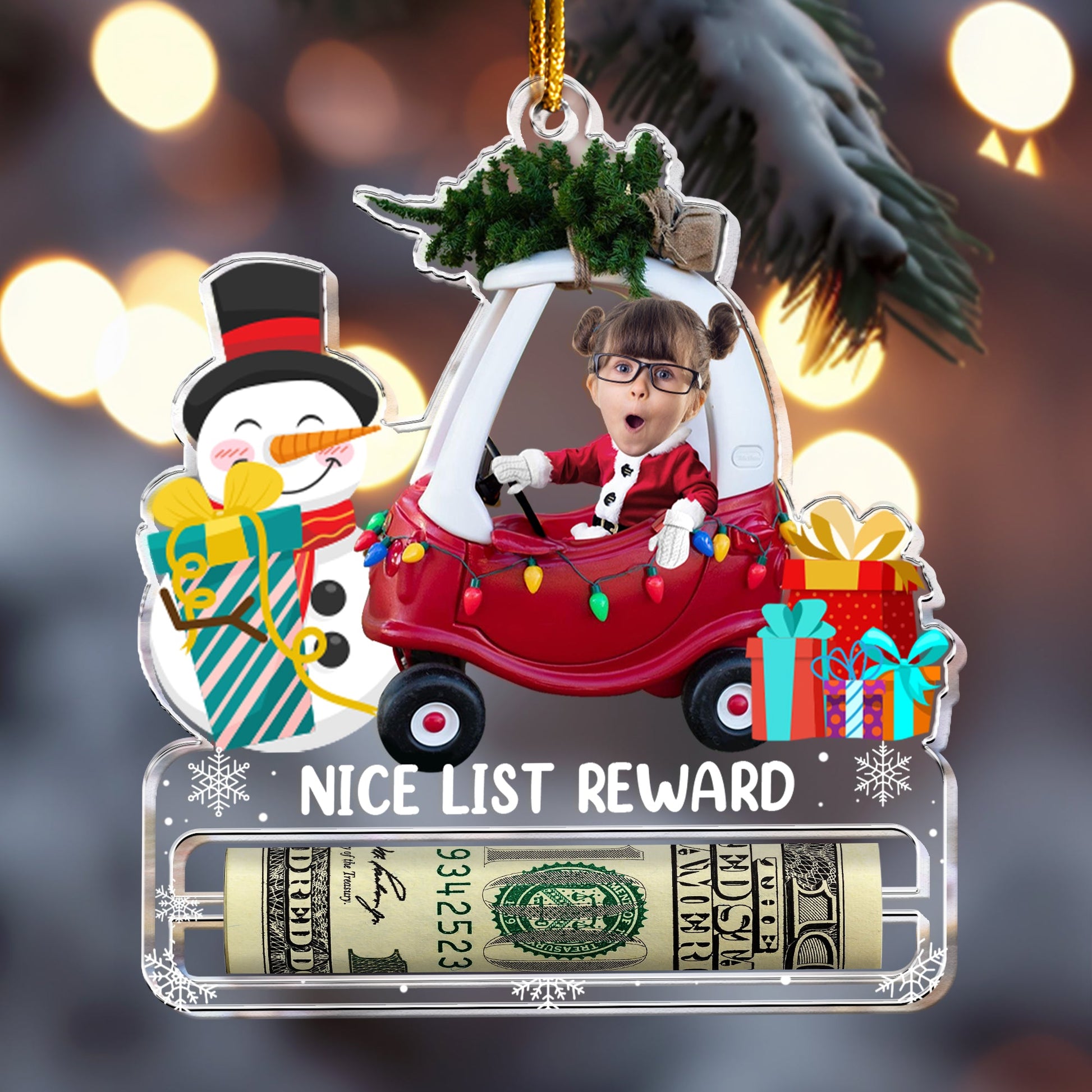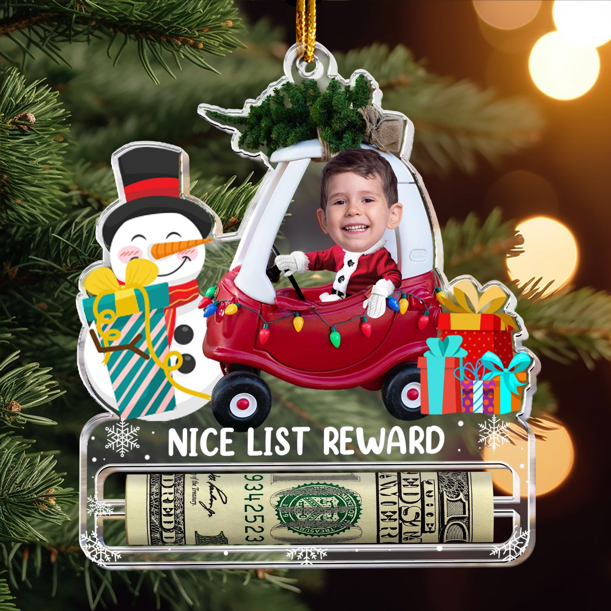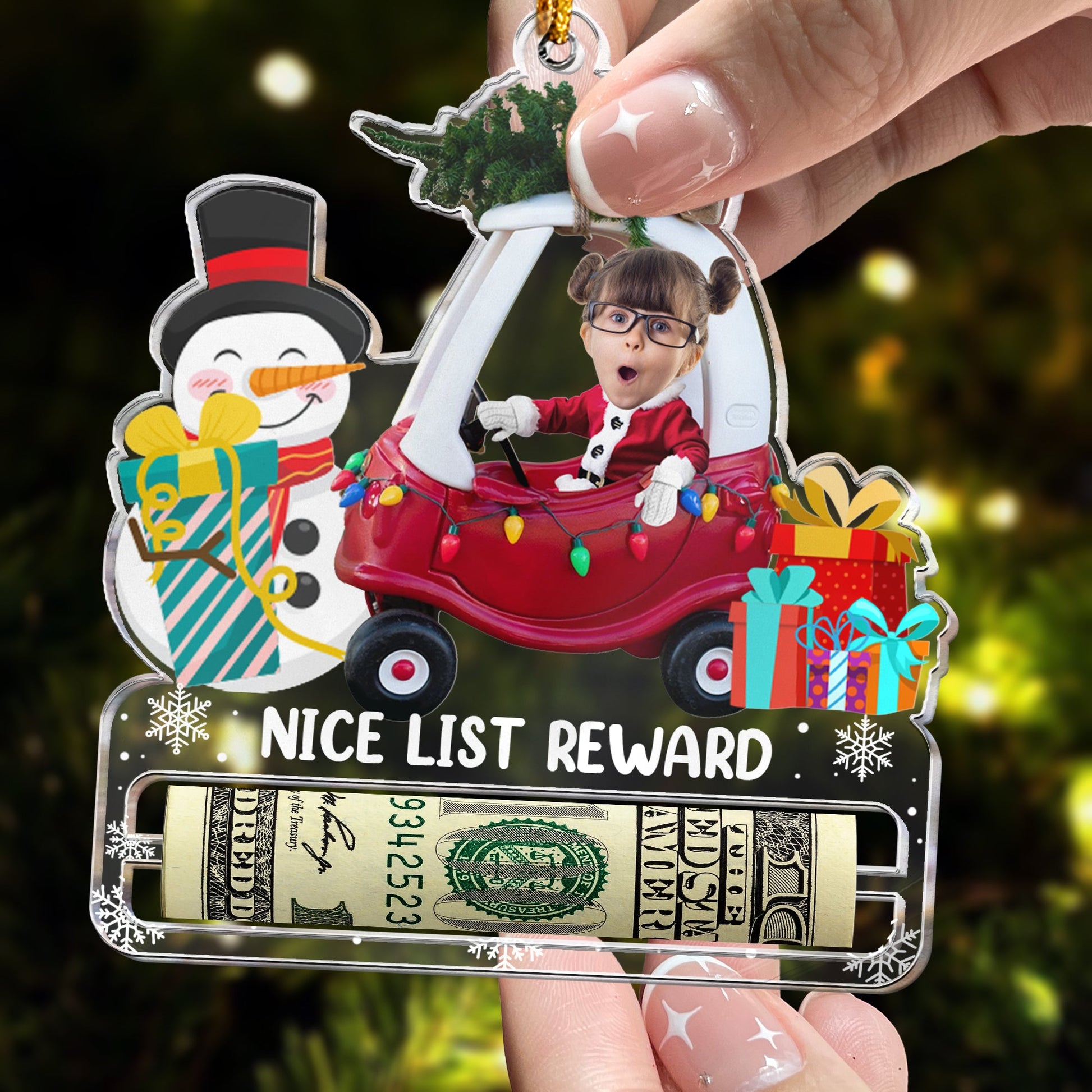 Nice List Santa Christmas Money Holder For Kids - Personalized Acrylic Photo Ornament