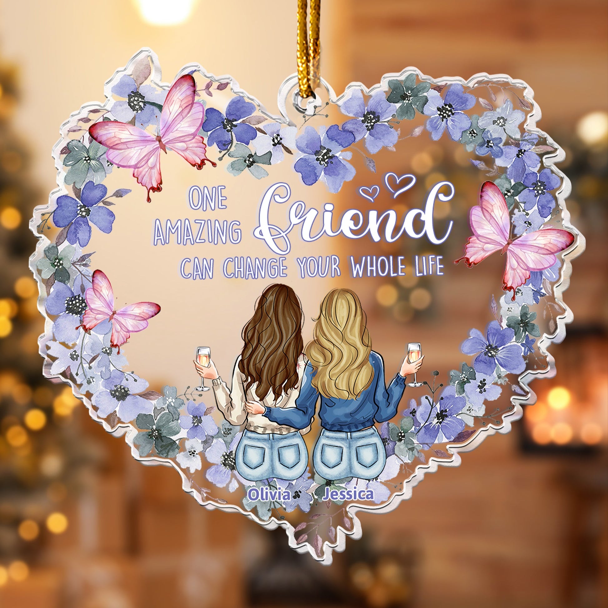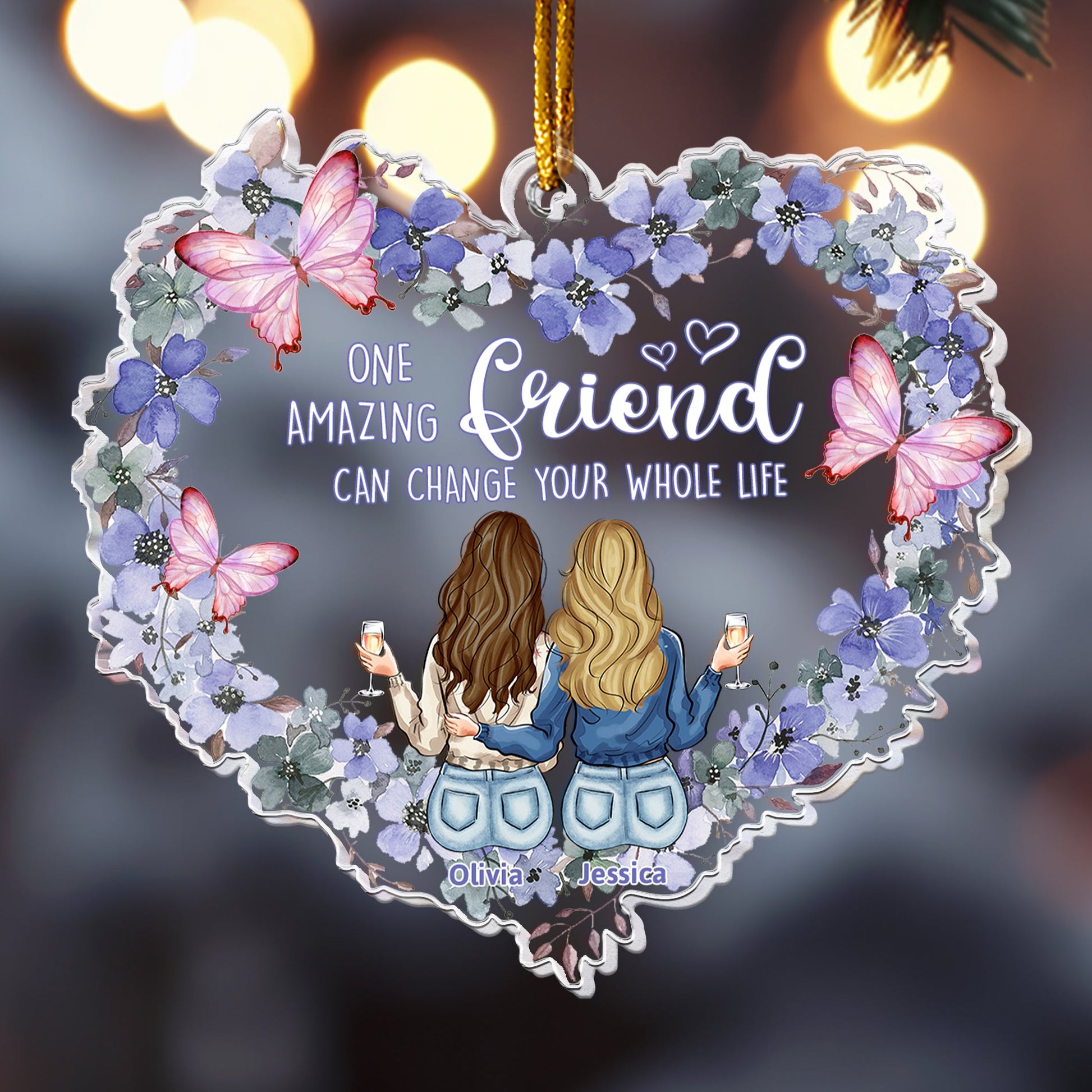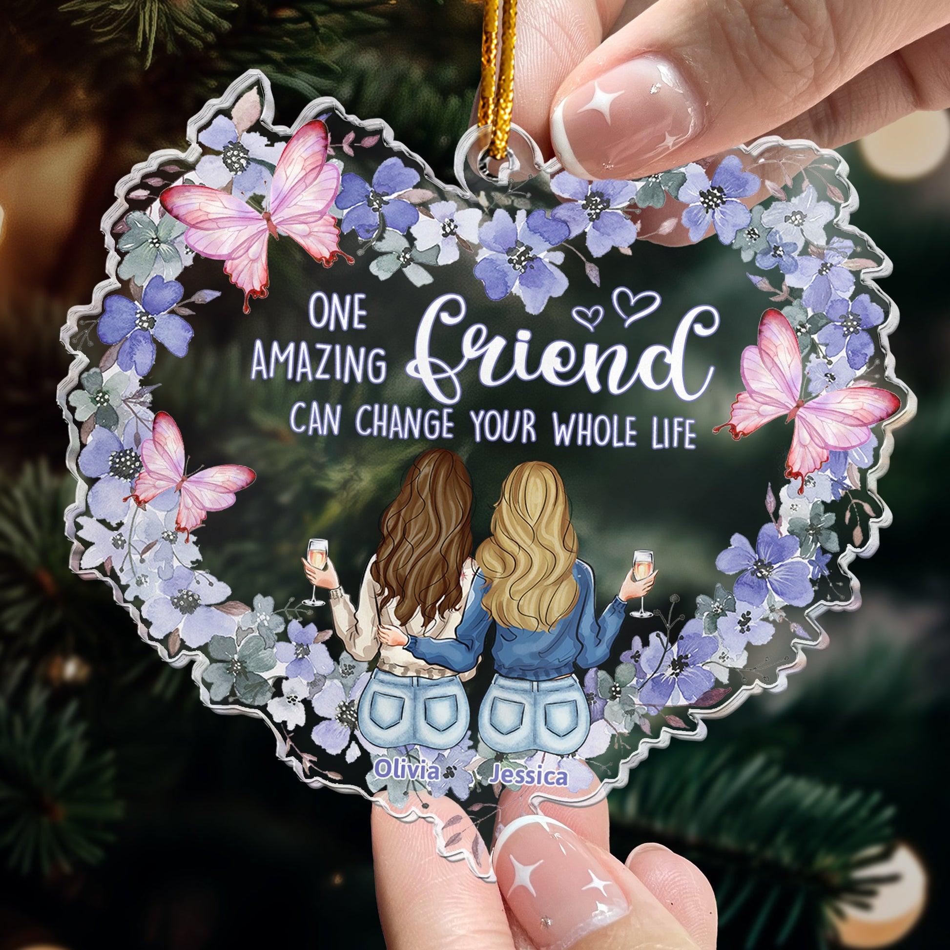 Celebrate the special bond of friendship this Christmas with a personalized meaningful acrylic ornament that speaks from the heart. This ornament is more than just a decoration; it's a lasting reminder of the joy, love, and memories you share with your friend or bestie. Thoughtfully designed and customizable, it captures the essence of your relationship, making it a heartfelt gift they’ll treasure every holiday season. Lightweight yet durable, it sparkles on any tree, serving as a beautiful symbol of your unbreakable connection. Perfect for adding a personal touch to their Christmas décor, this ornament is a gift that will keep your friendship glowing all year long.