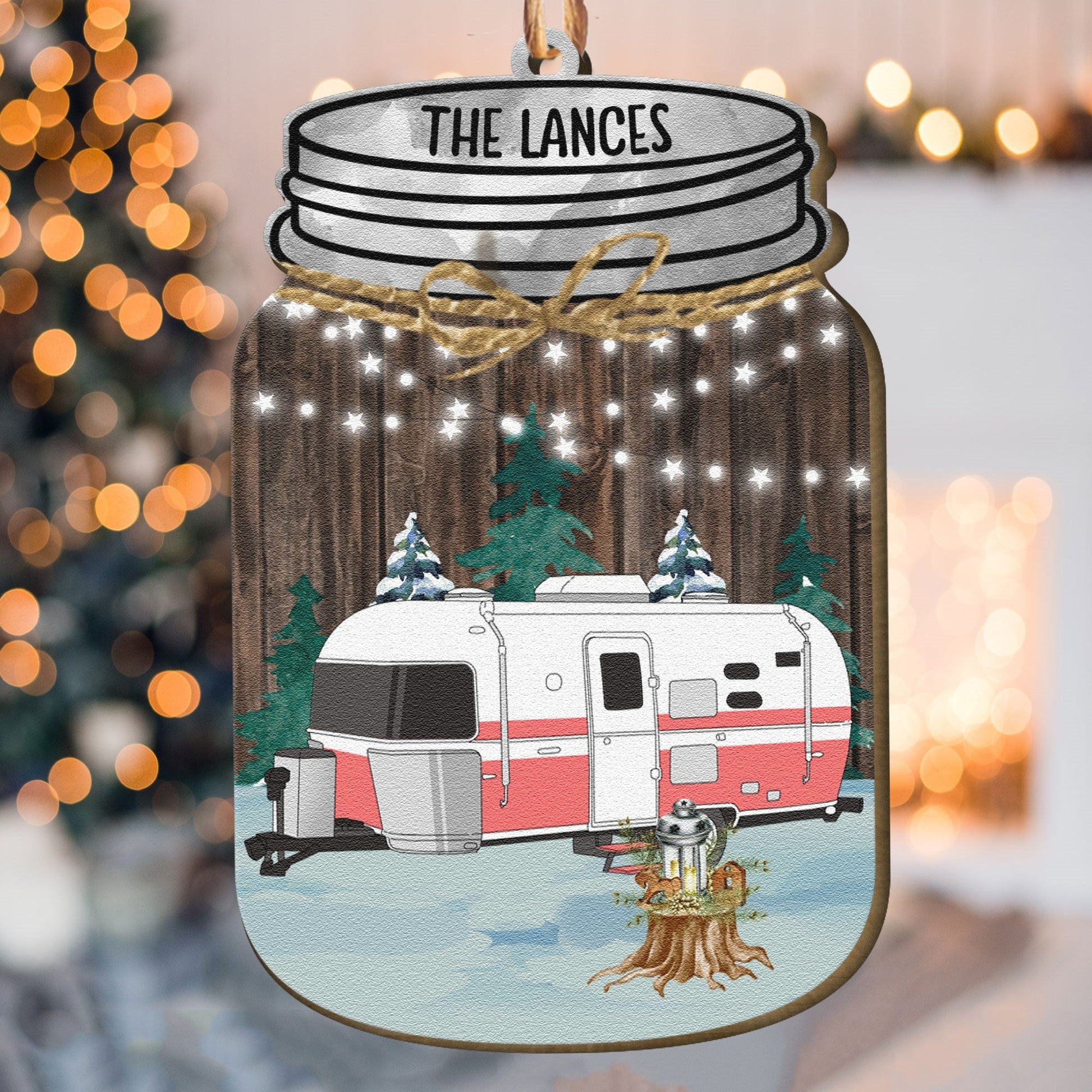 Our Camper - Personalized Mason Jar Shaped Wooden Ornament