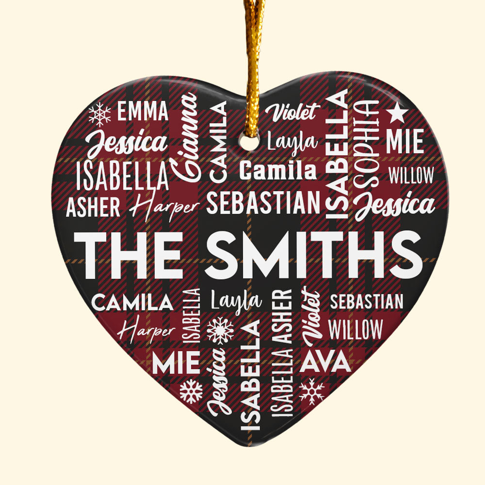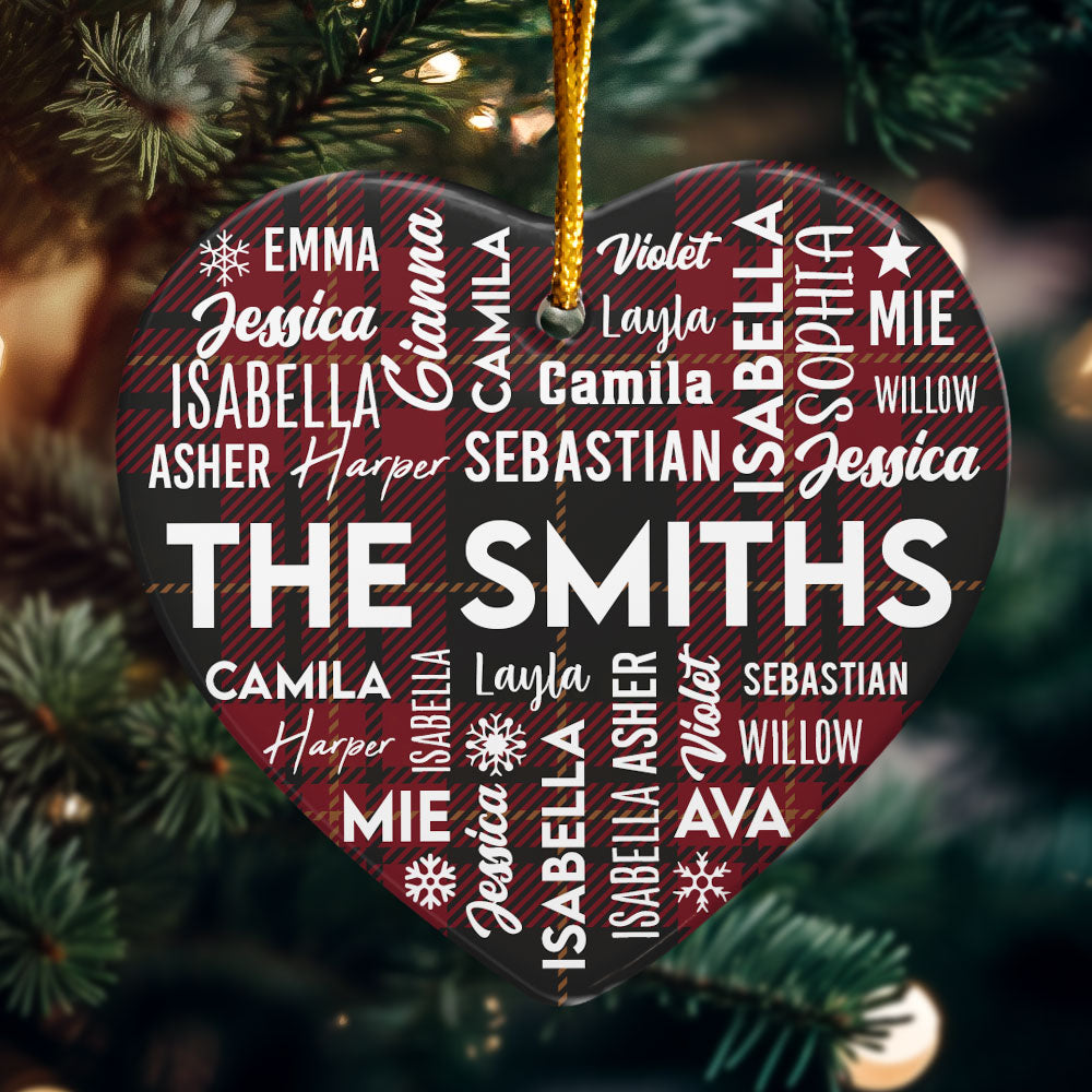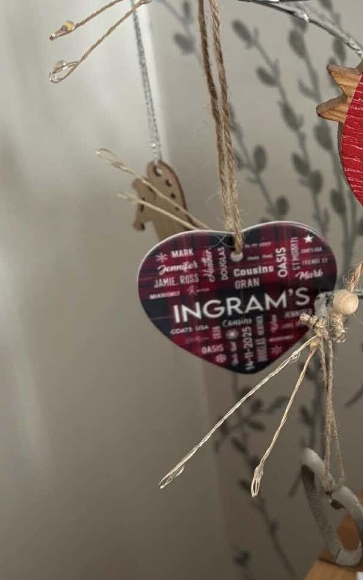 Customize this Personalised Ornament with the names of your family members, whether it's for a family of 2, 3, 4, 5, or 6. Each engraved name adds a special touch to this Holiday Ornament, making it a unique keepsake for your tree.