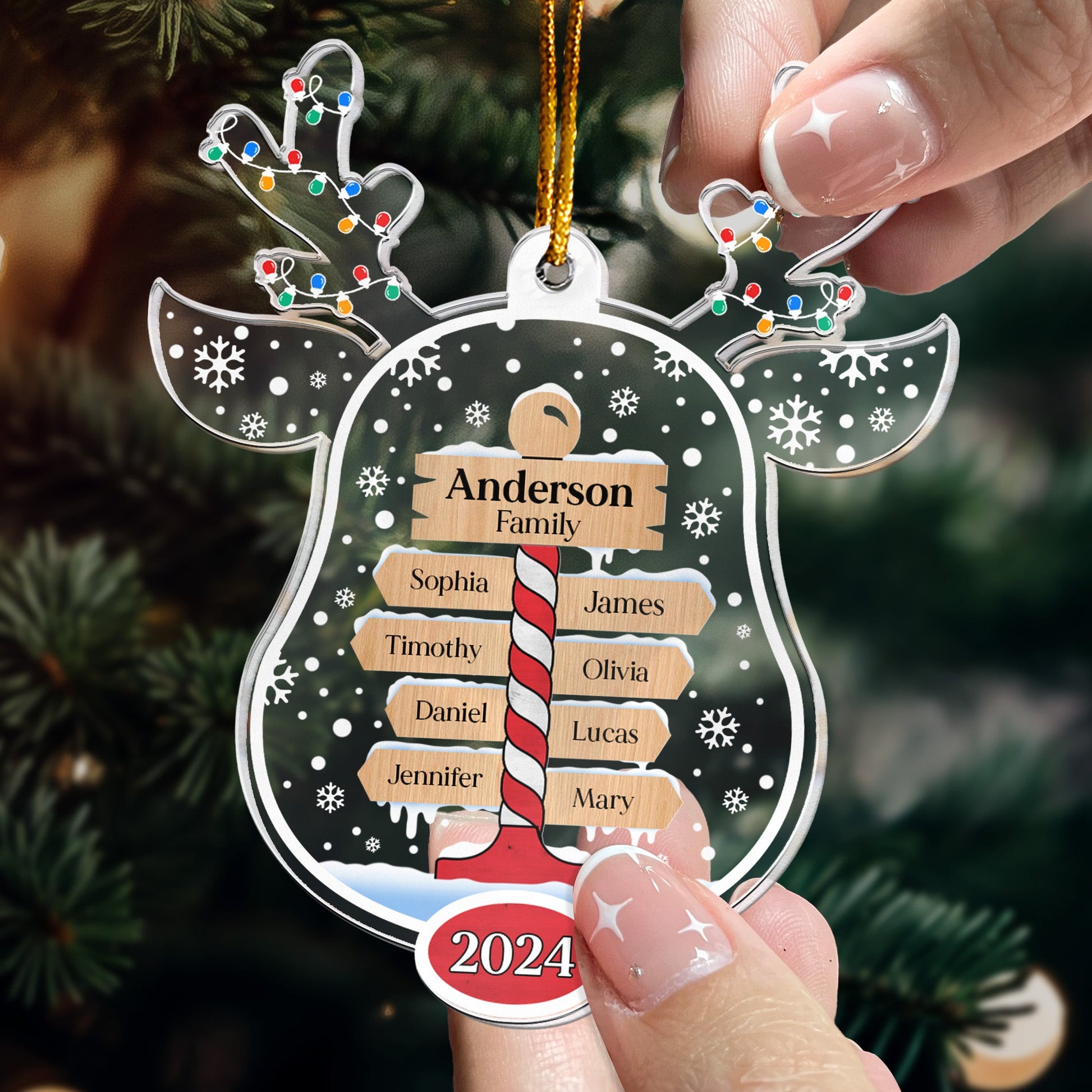 Our Family North Pole Reindeer Shaped - Personalized Acrylic Ornament