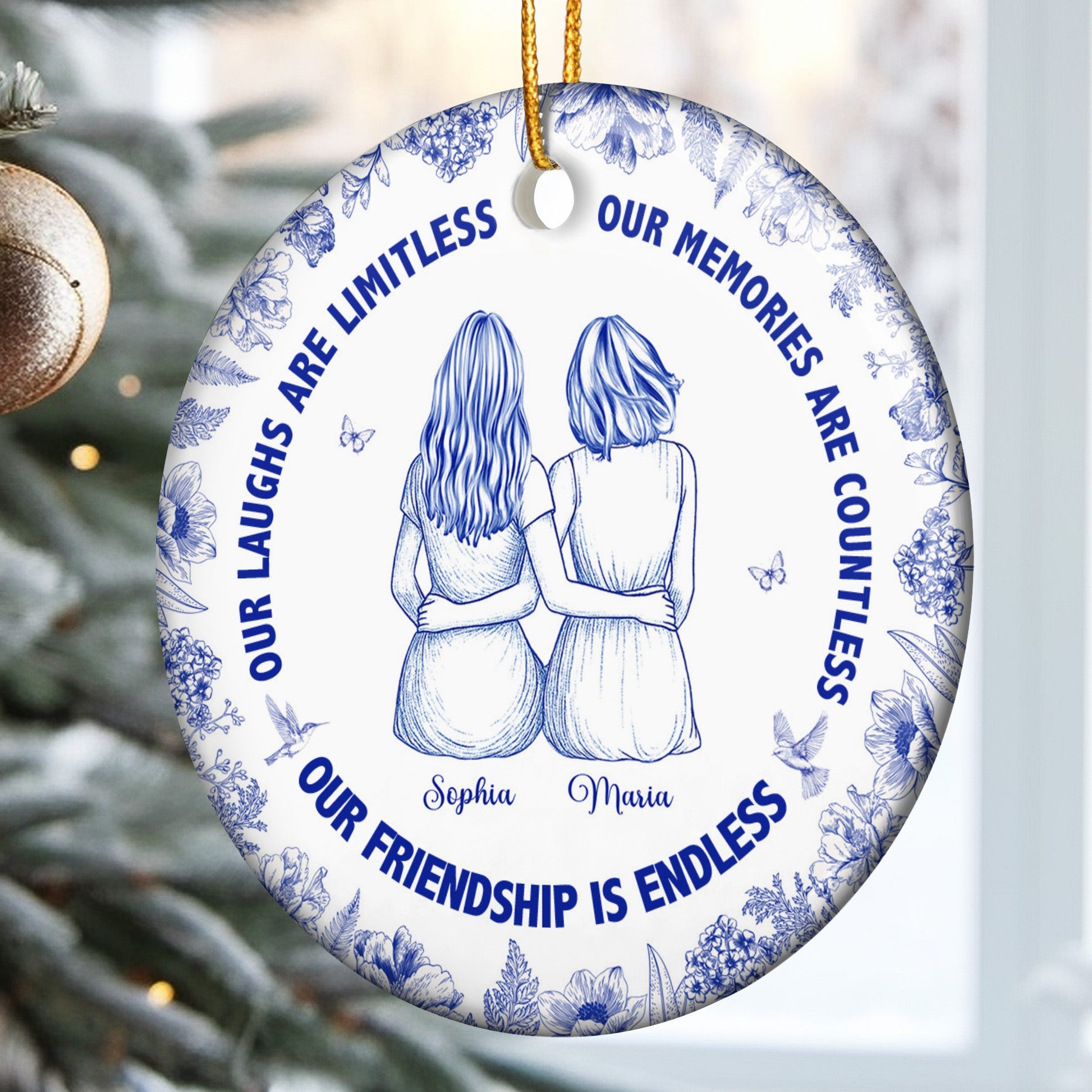 Our Laughs Are Limitless Our Friendship Is Endless Toile De Jouy - Personalized Ceramic Ornament