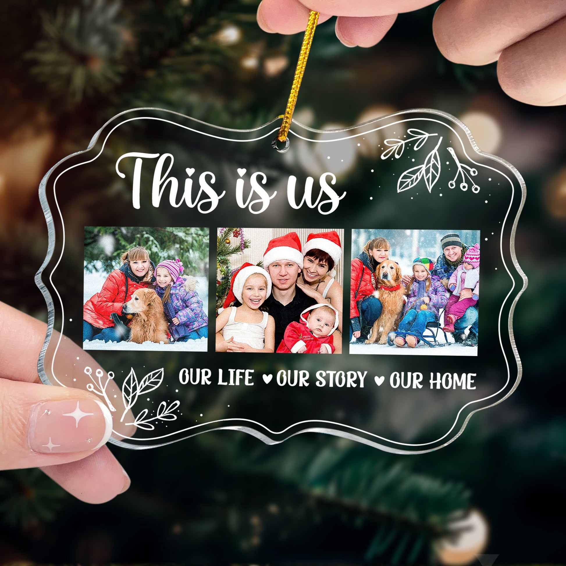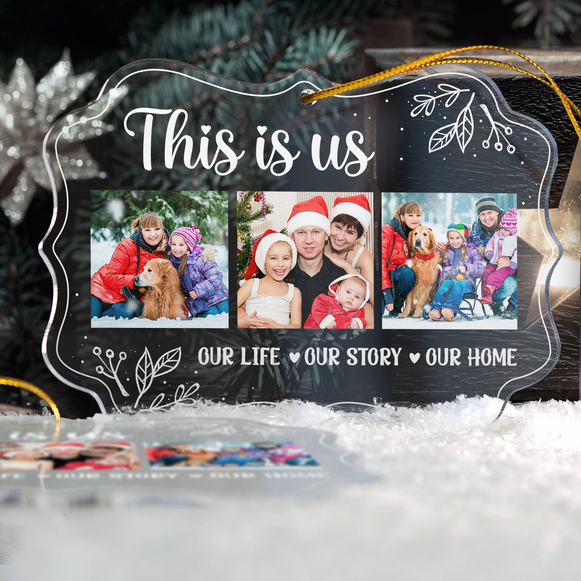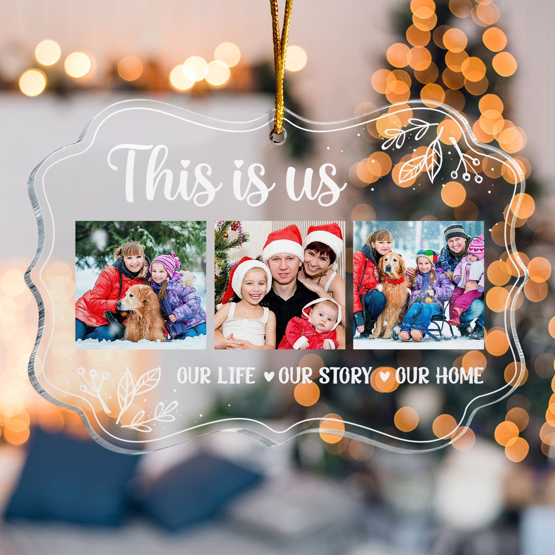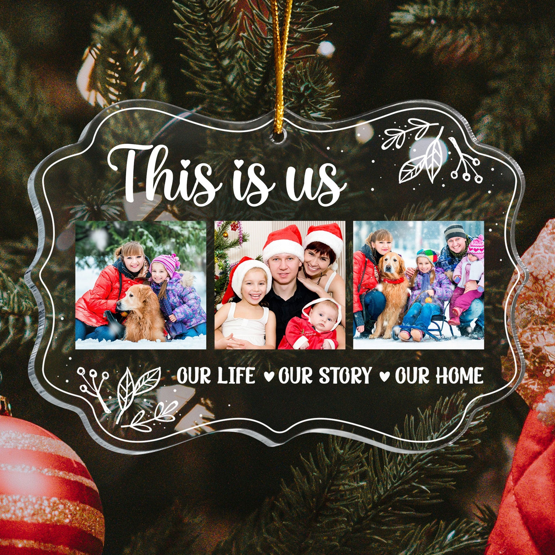 Capture the warmth and love of your family with this Personalized Acrylic Photo Ornament. Featuring the heartfelt message, “This is us—our life. Our story. Our home,” this ornament is a beautiful way to celebrate the moments and memories that make your family unique. Customizable with a favorite family photo, it makes a touching addition to your holiday decor and a keepsake to cherish for years. Perfect as a Christmas gift for a family member, this ornament brings an extra touch of personalization and heart to the holidays, celebrating the people and places you call home.