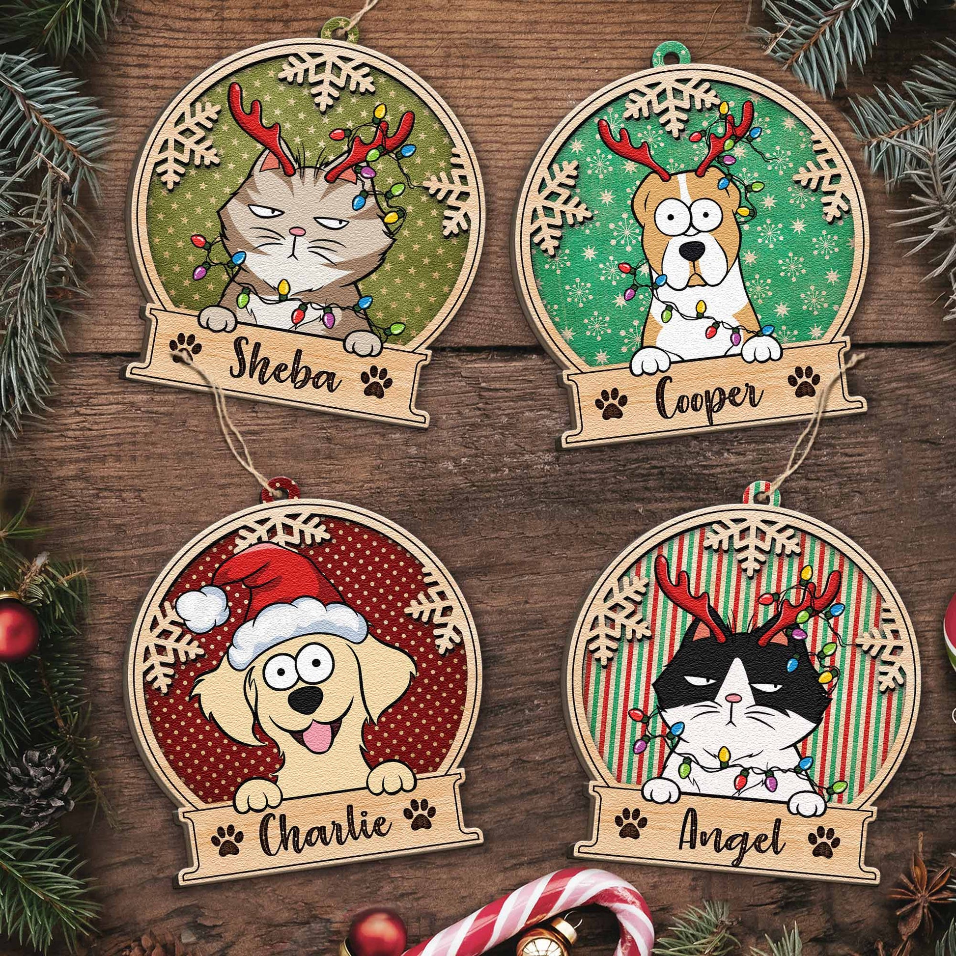 Peeking Pet Christmas - Personalized Custom Shaped Wooden Ornament