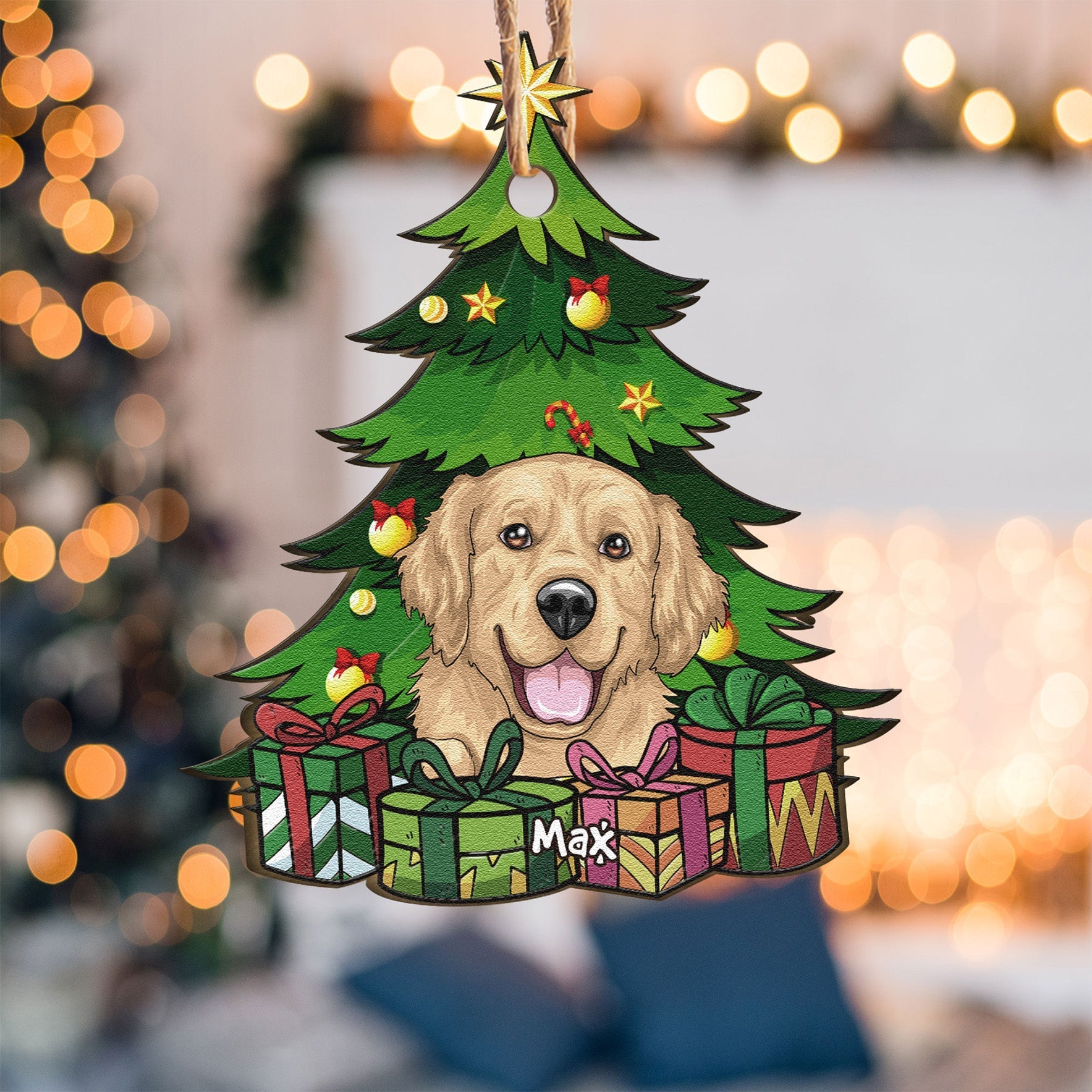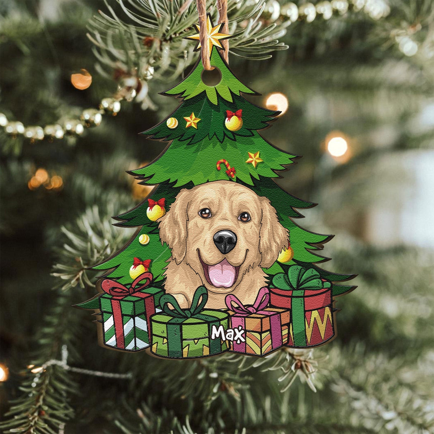 Pet Under Christmas Tree - Personalized Tree Shaped Wooden Ornament