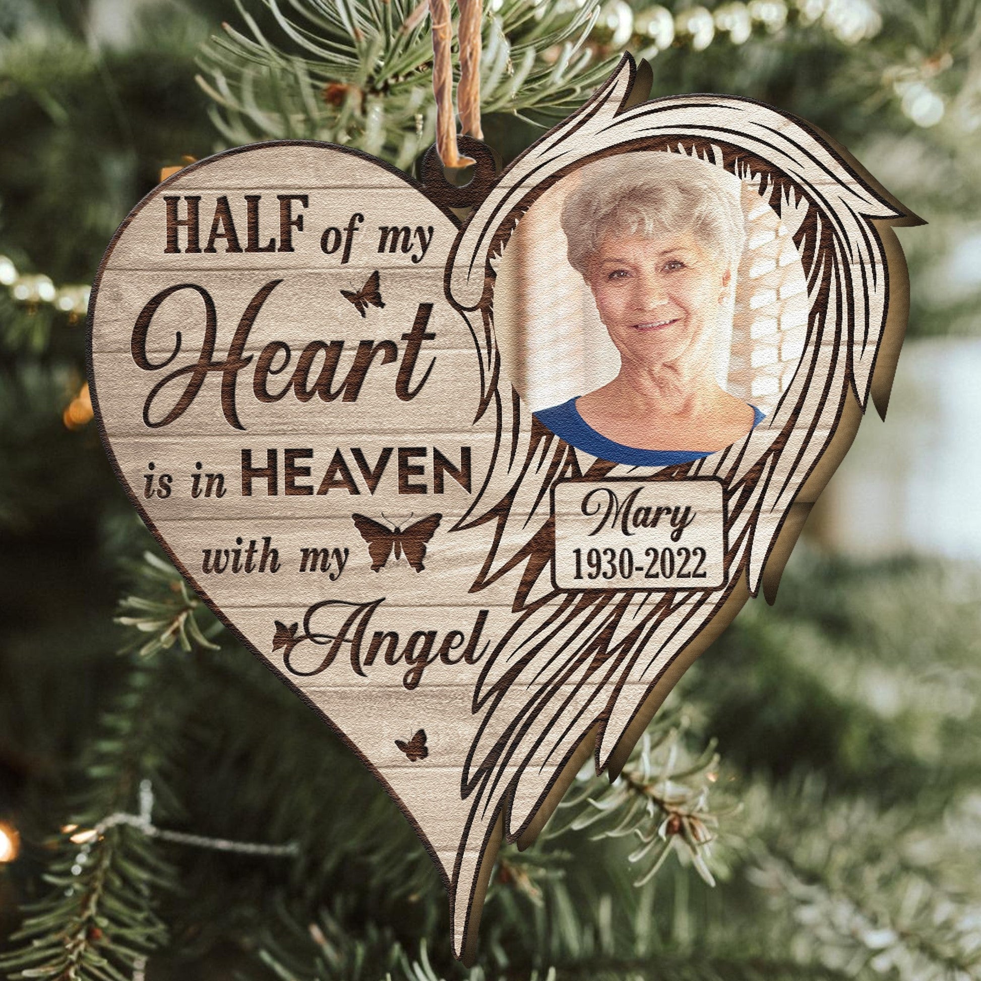 Half Of My Heart Is In Heaven - Personalized Custom Shaped Wooden Photo Ornament