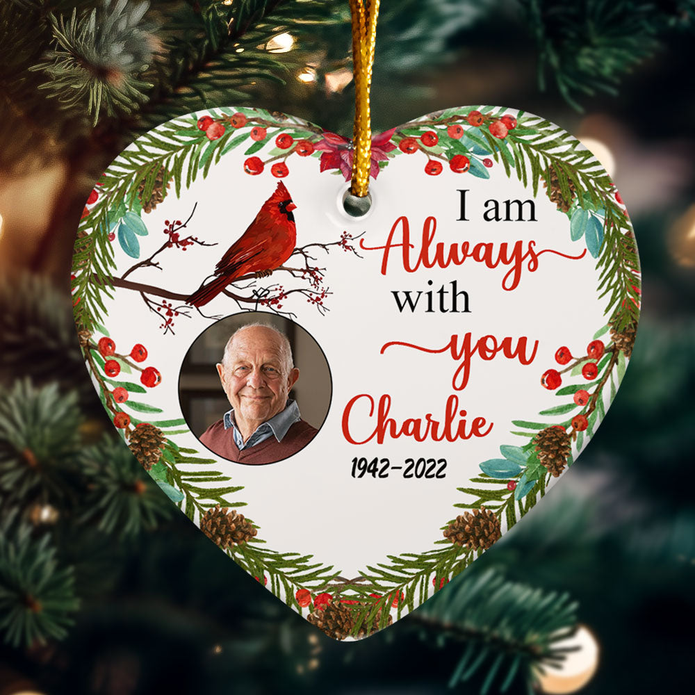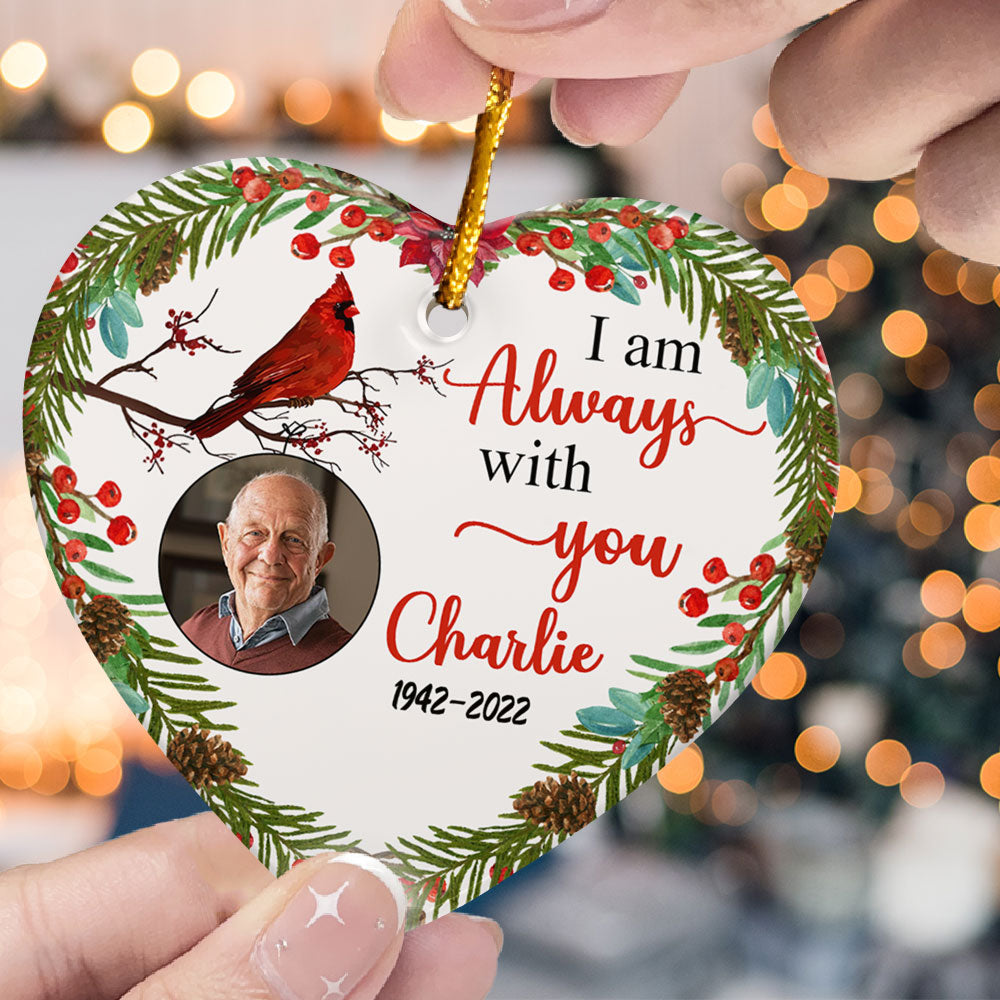I Am Always With You - Personalized Heart Shaped Ceramic Photo Ornament