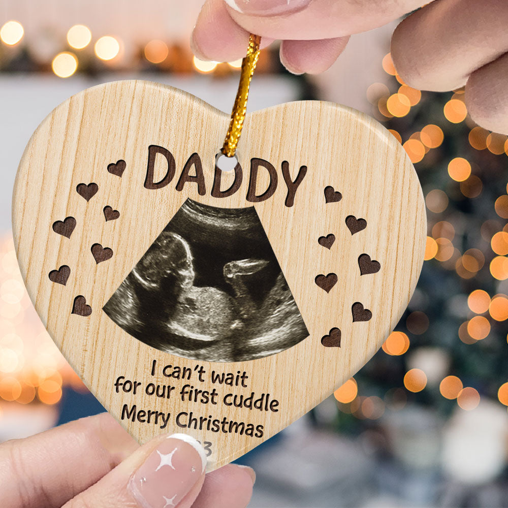 I Can't Wait For Our First Cuddle - Personalized Heart Shaped Ceramic Photo Ornament