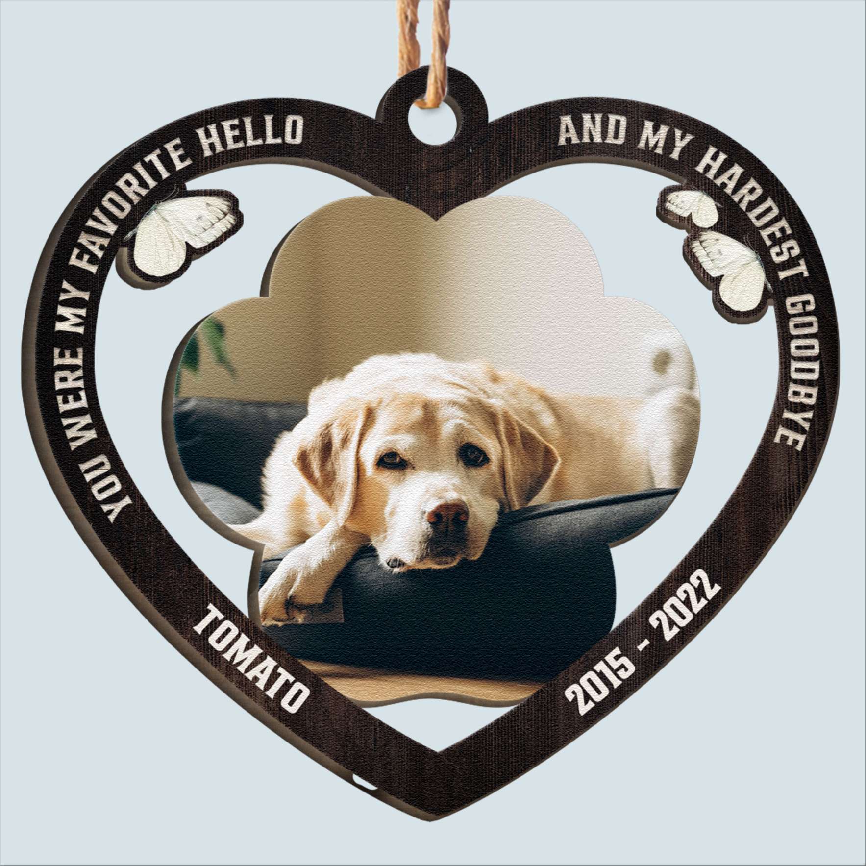 My Favorite Hello And My Hardest Goodbye - Personalized Custom Shaped Wooden Photo Ornament