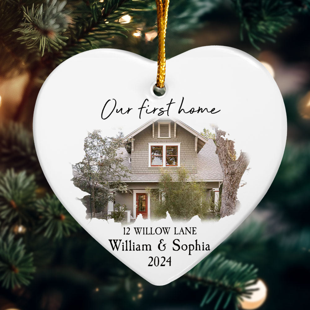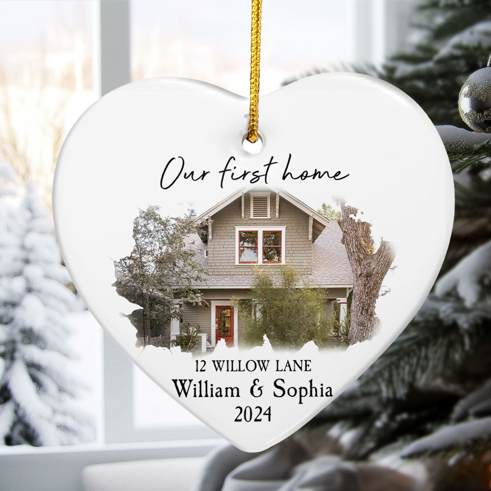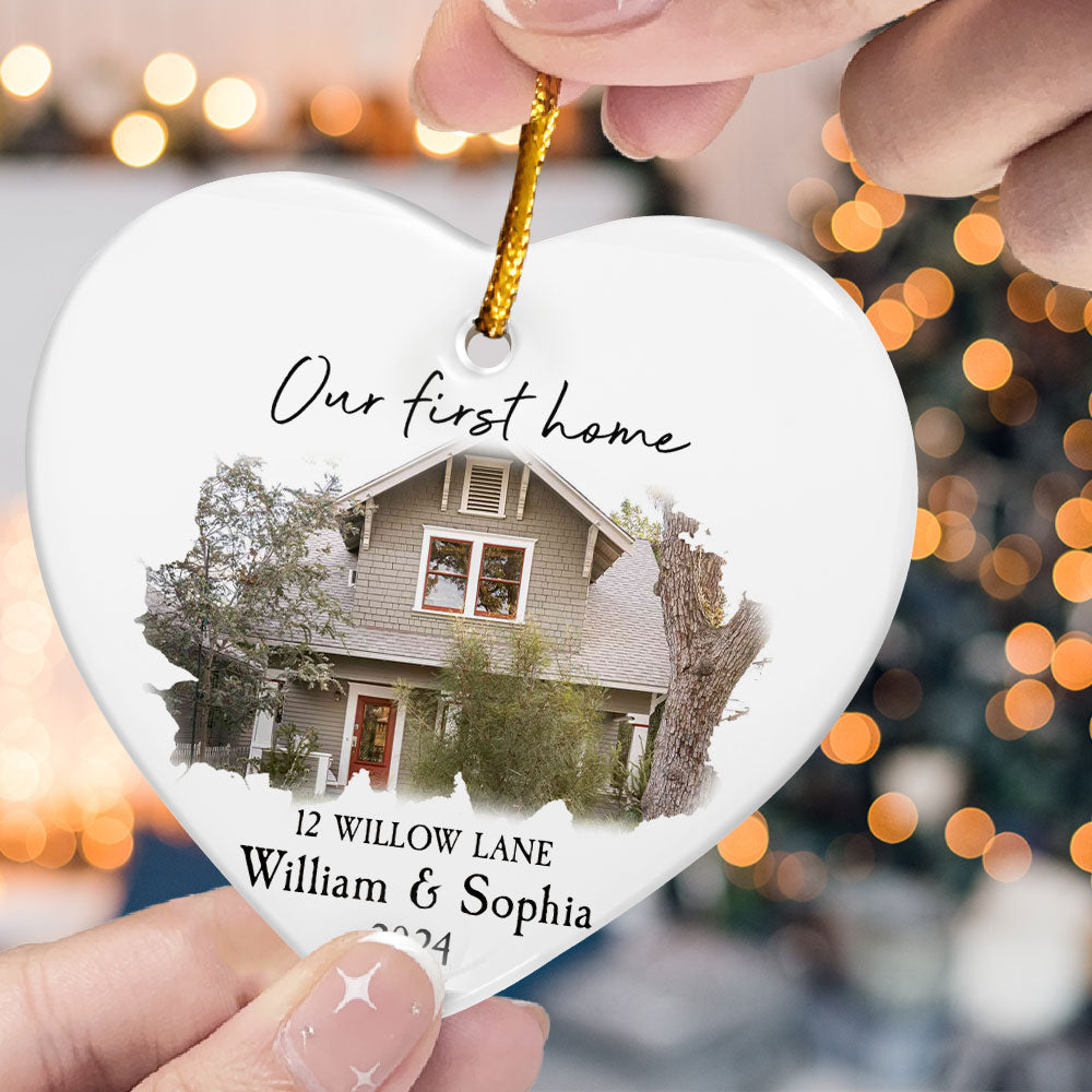 Our New Home - Personalized Heart Shaped Ceramic Photo Ornament