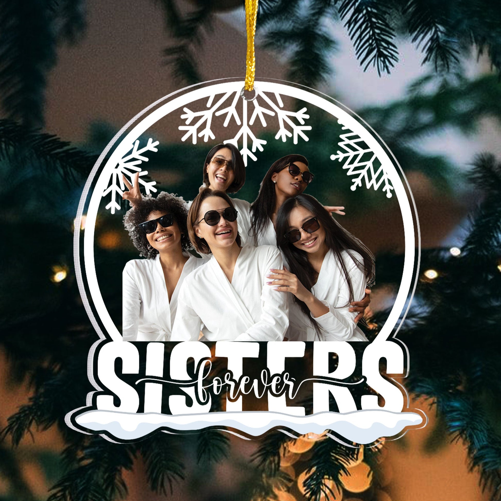 Sisters Forever - Personalized Snow Globe Shaped Acrylic Photo Ornament