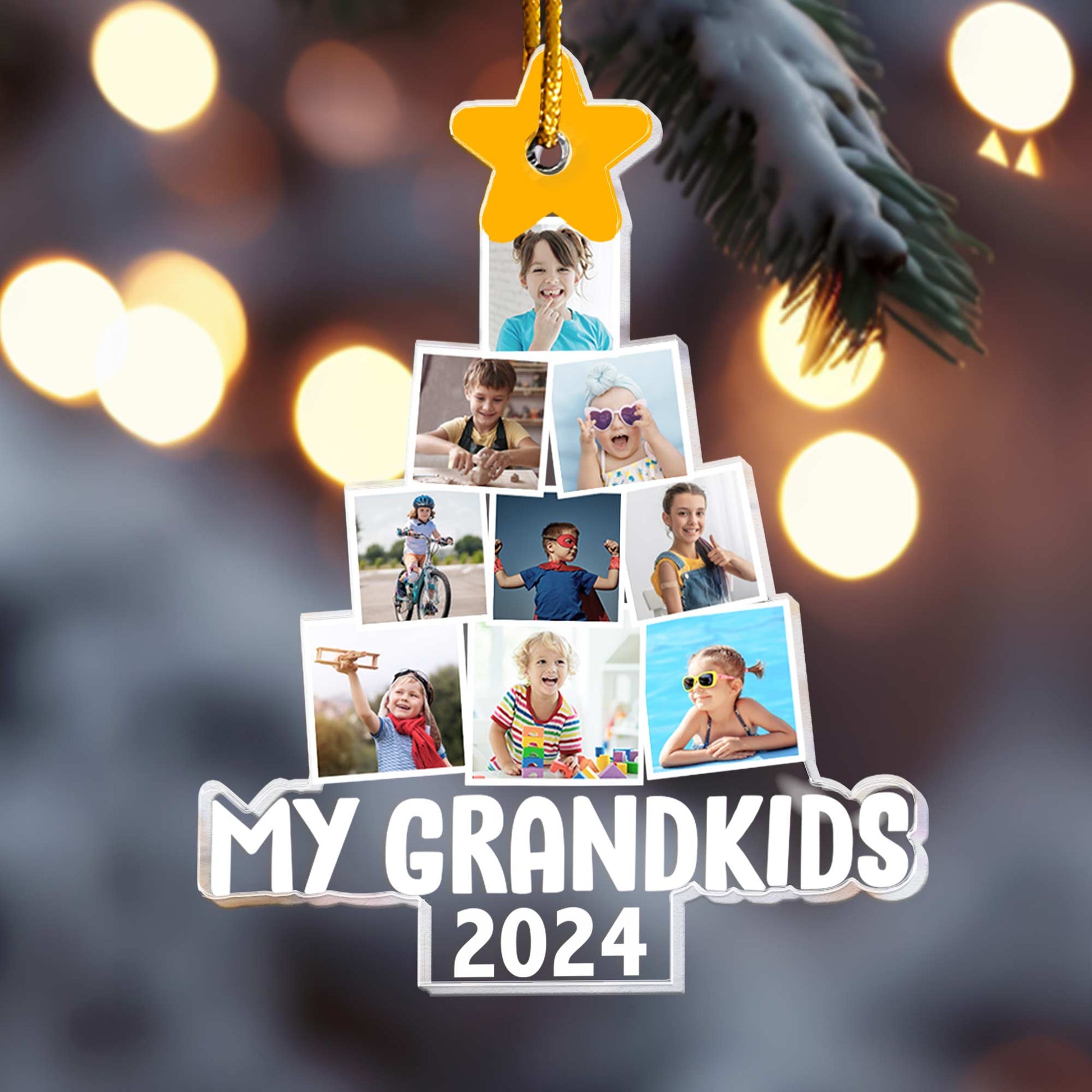 Photo My Grandkids Christmas Tree - Personalized Acrylic Photo Ornament - Up To 15 Photos