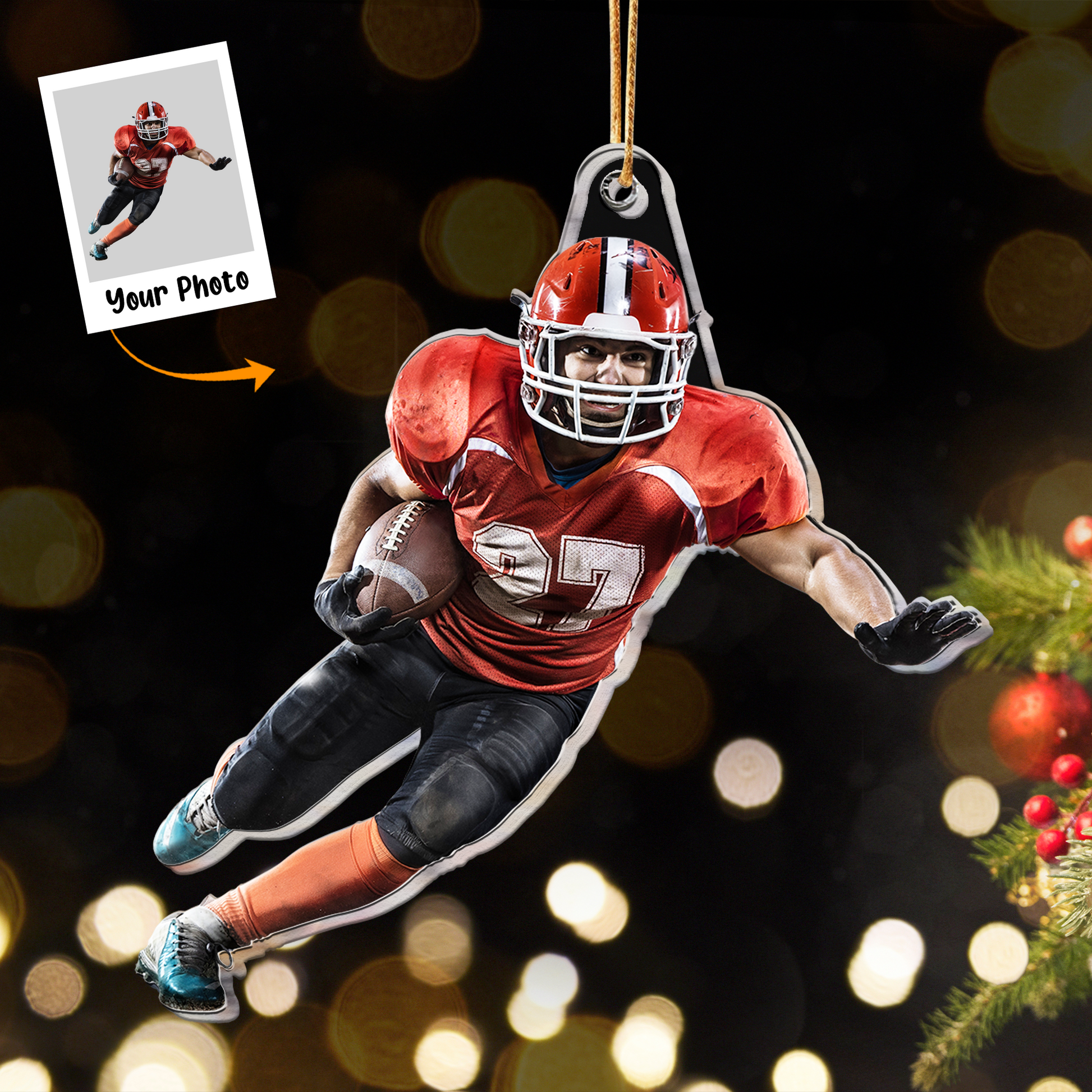 Photo Ornament For American Football Players - Personalized Shaped Acrylic Photo Ornament
