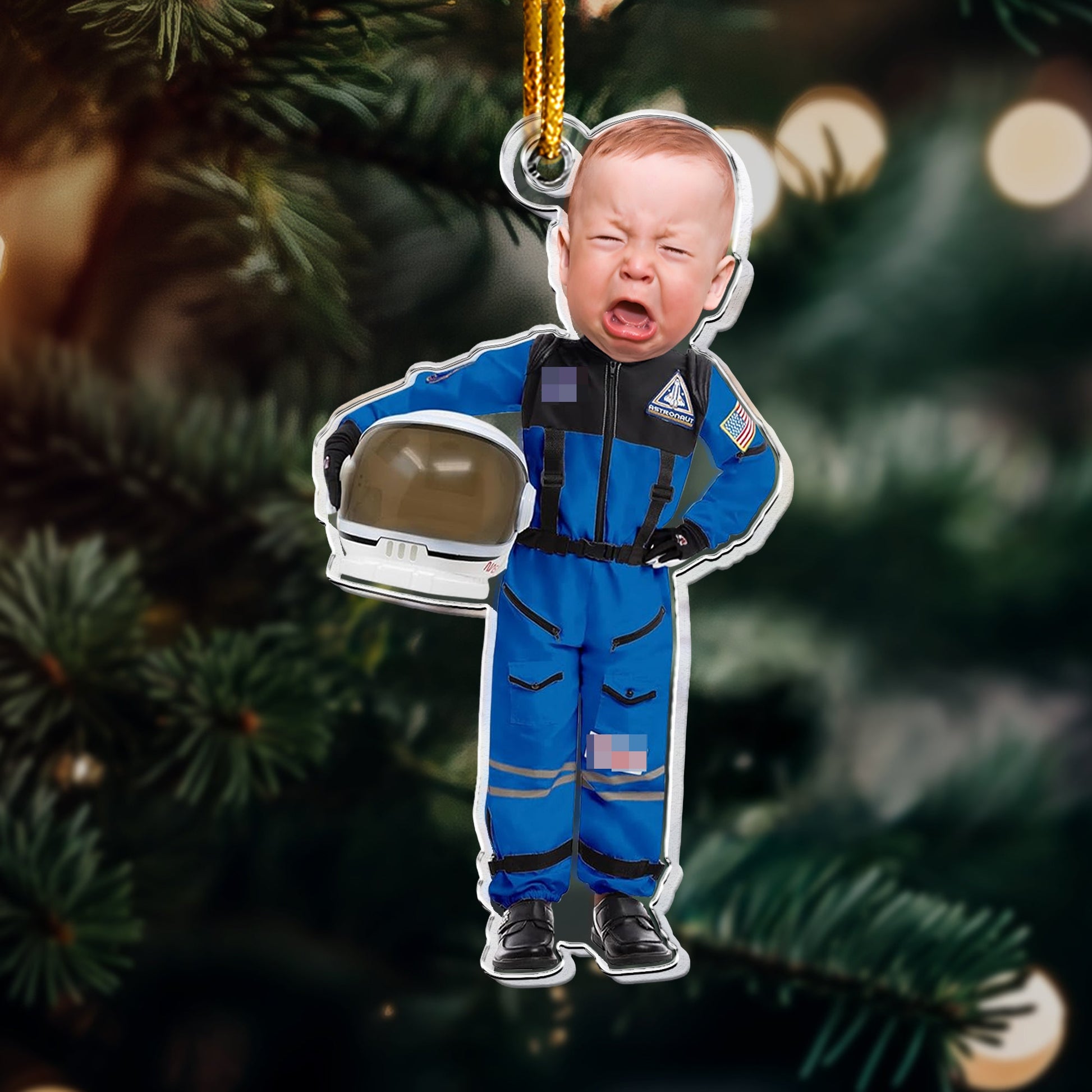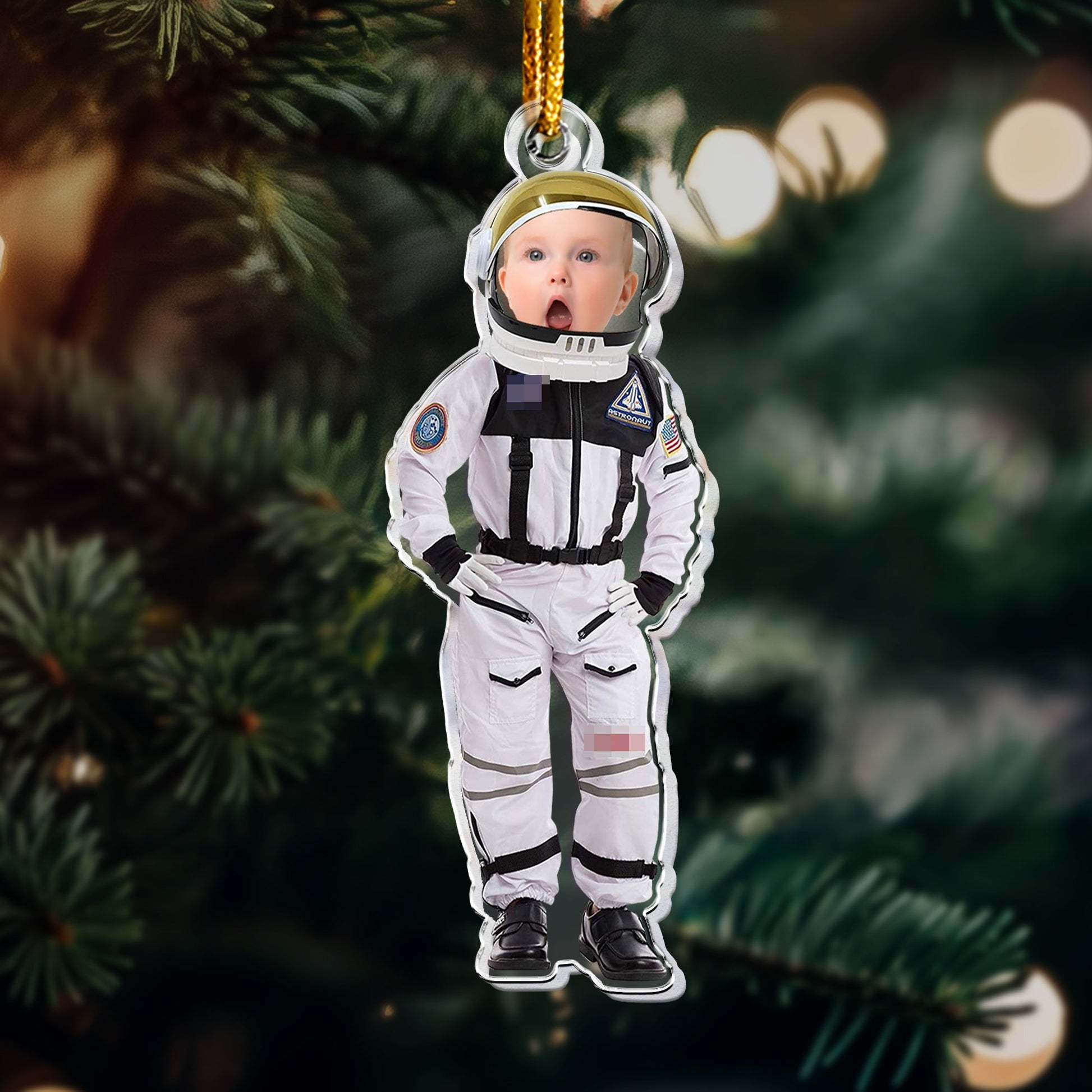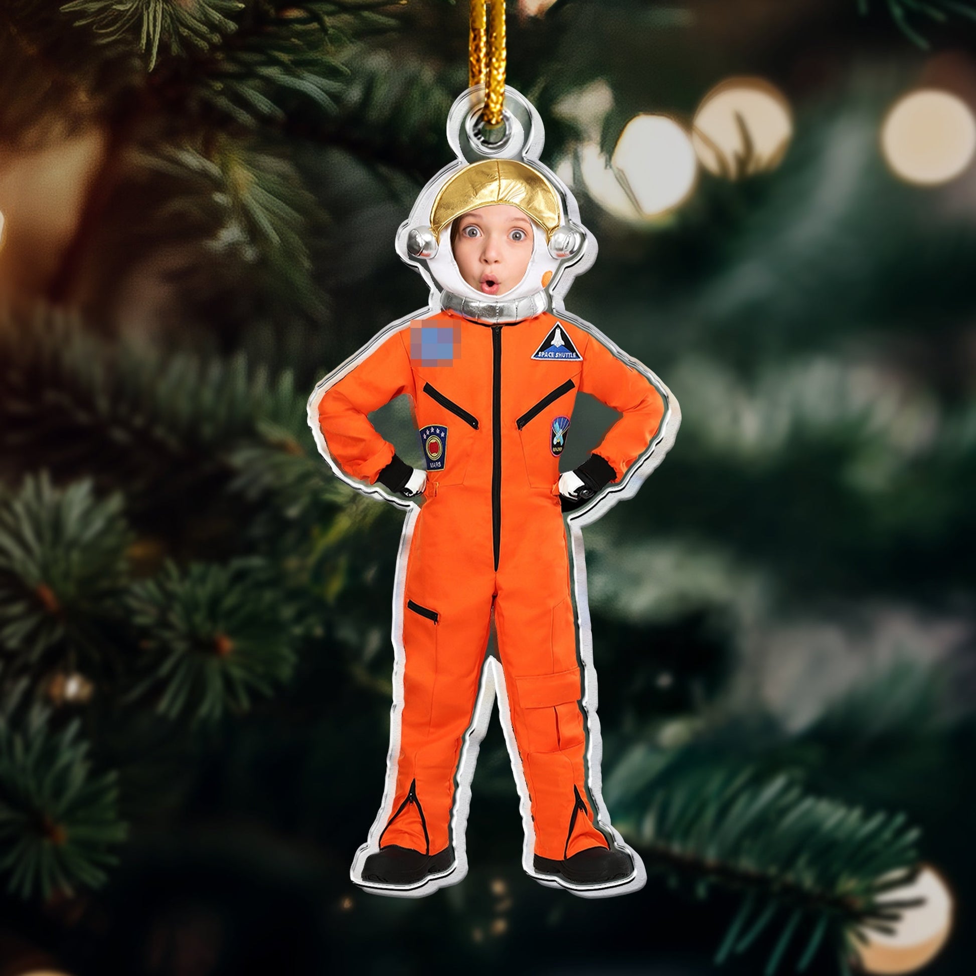 Crafted with care, this ornament features a space-themed design and can be customized with a photo. It's not just a decoration; it becomes a cherished memory, making it a thoughtful and meaningful gift for your loved ones.