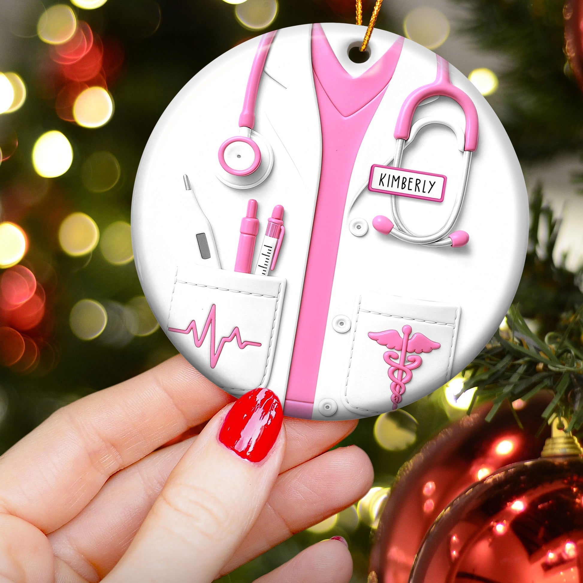 Introducing our Proud Nurse Custom Scrubs Ceramic Ornament, the ideal gift for that special nurse in your life! This heartfelt and personalized item is designed to express admiration and highlight the bond shared with those honourable individuals in the nursing profession. Not just for Christmas, this ceramic ornament is a perfect gift for any occasion such as birthdays, anniversaries, or simply to show appreciation.