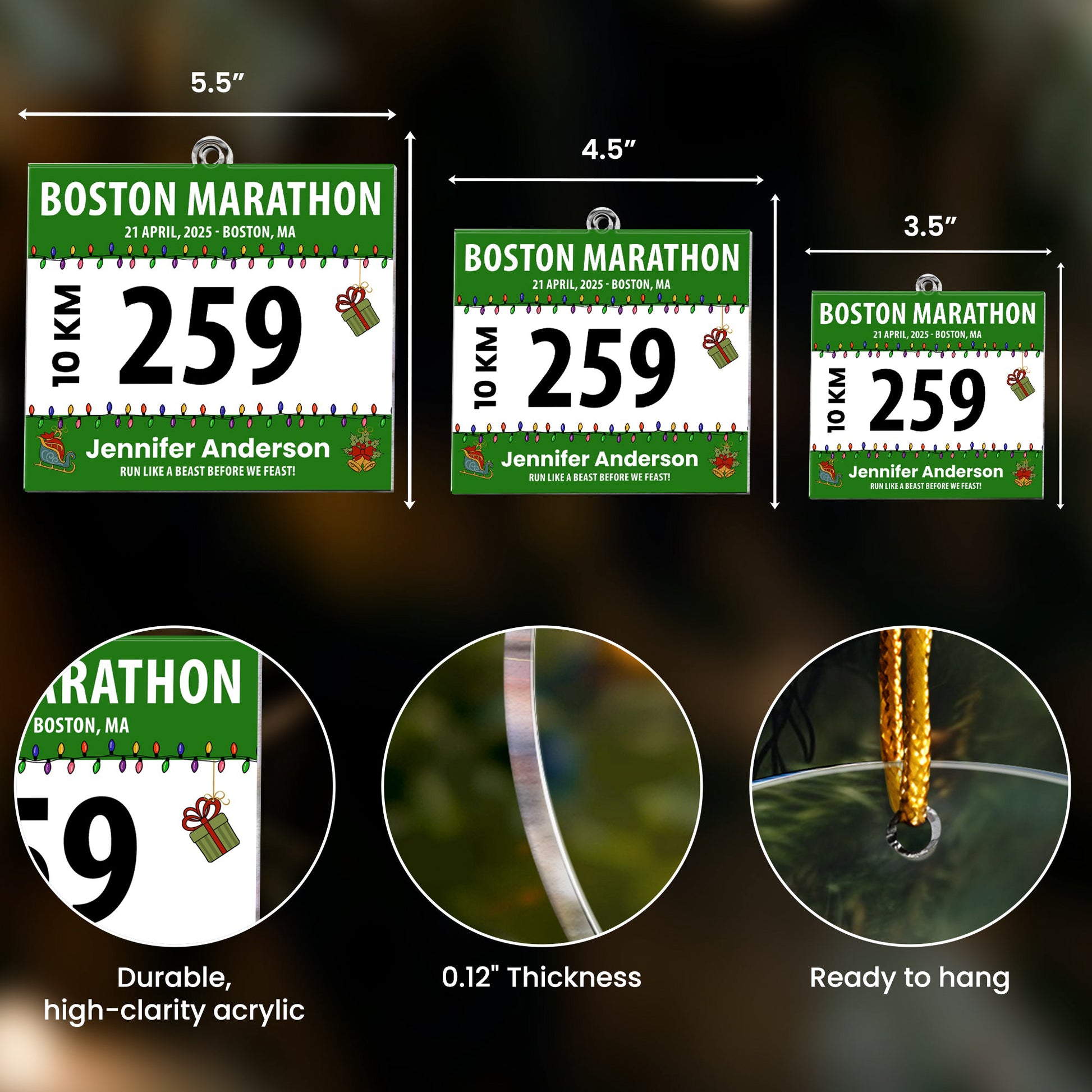 This ornament comes to life especially during the festive spirit of Christmas and other significant occasions, making it the perfect gift for these times - anniversaries, birthdays, or just to convey a heartfelt thank you. It embodies the sentiments of sport, kinship, and shared interests in a way few gifts can, offering an endearing way to express your affection. So why wait? Show how much you value their love for running with this personalized acrylic runner bib ornament - a gift that will always remind them of their resilience and your shared passion.