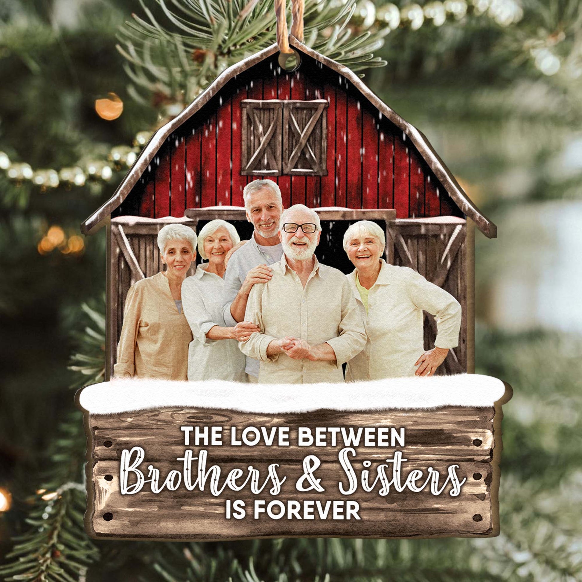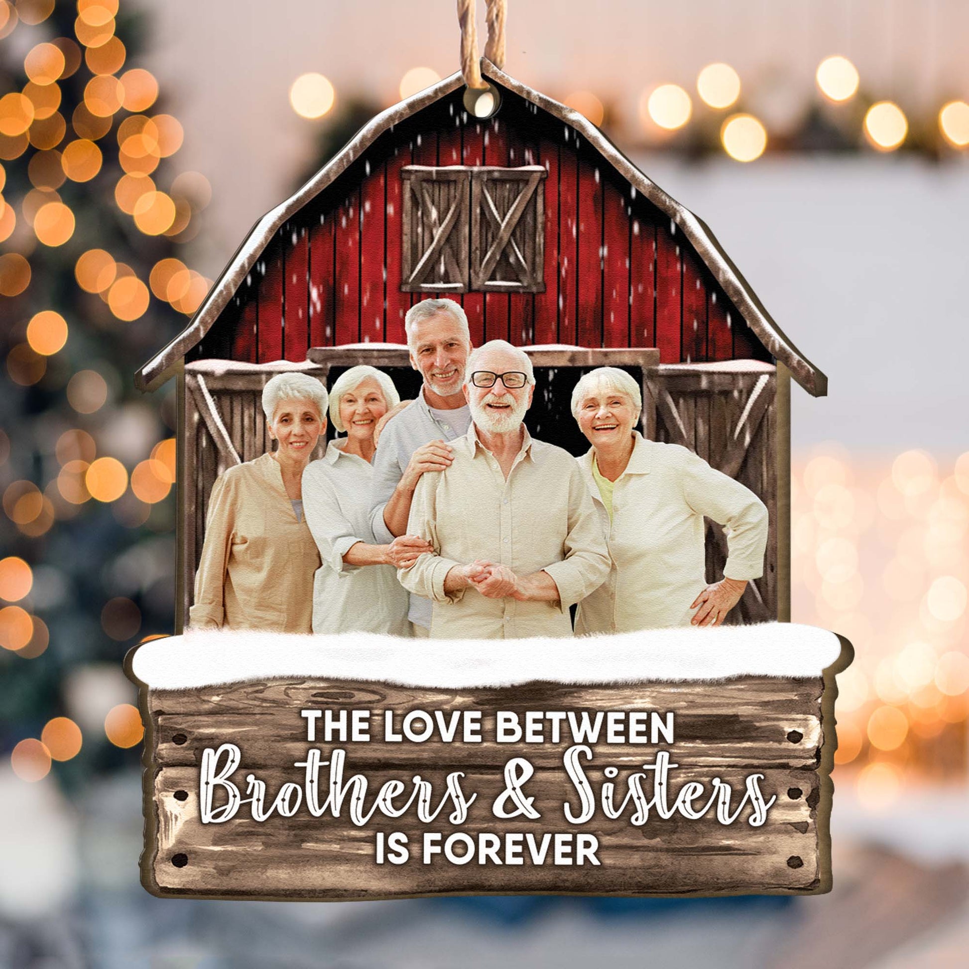 Red Barn The Love Between Brothers & Sisters Is Forever - Personalized Wooden Photo Ornament