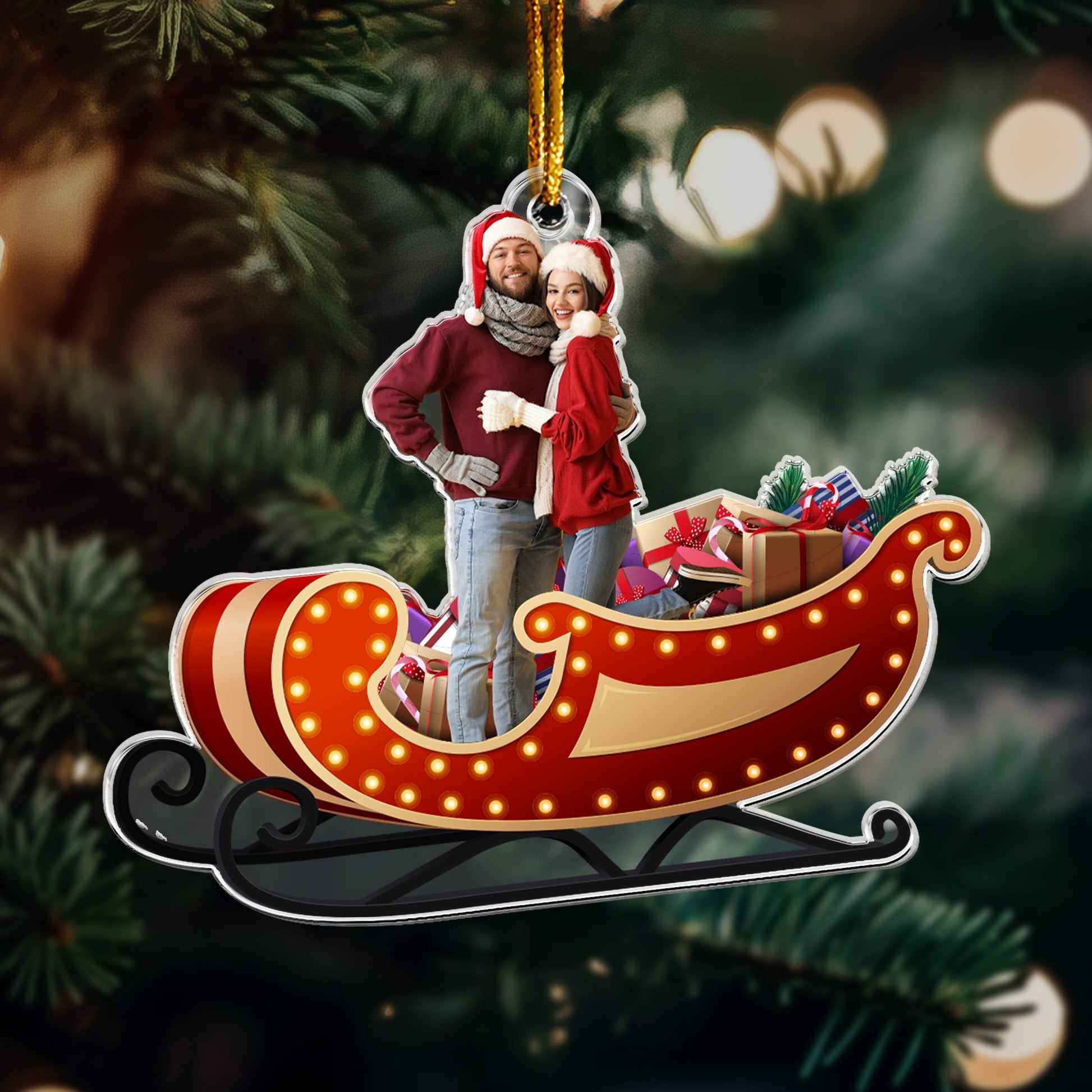 Santa Sleigh Custom Photo Family, Friends, Couples - Personalized Acrylic Photo Ornament
