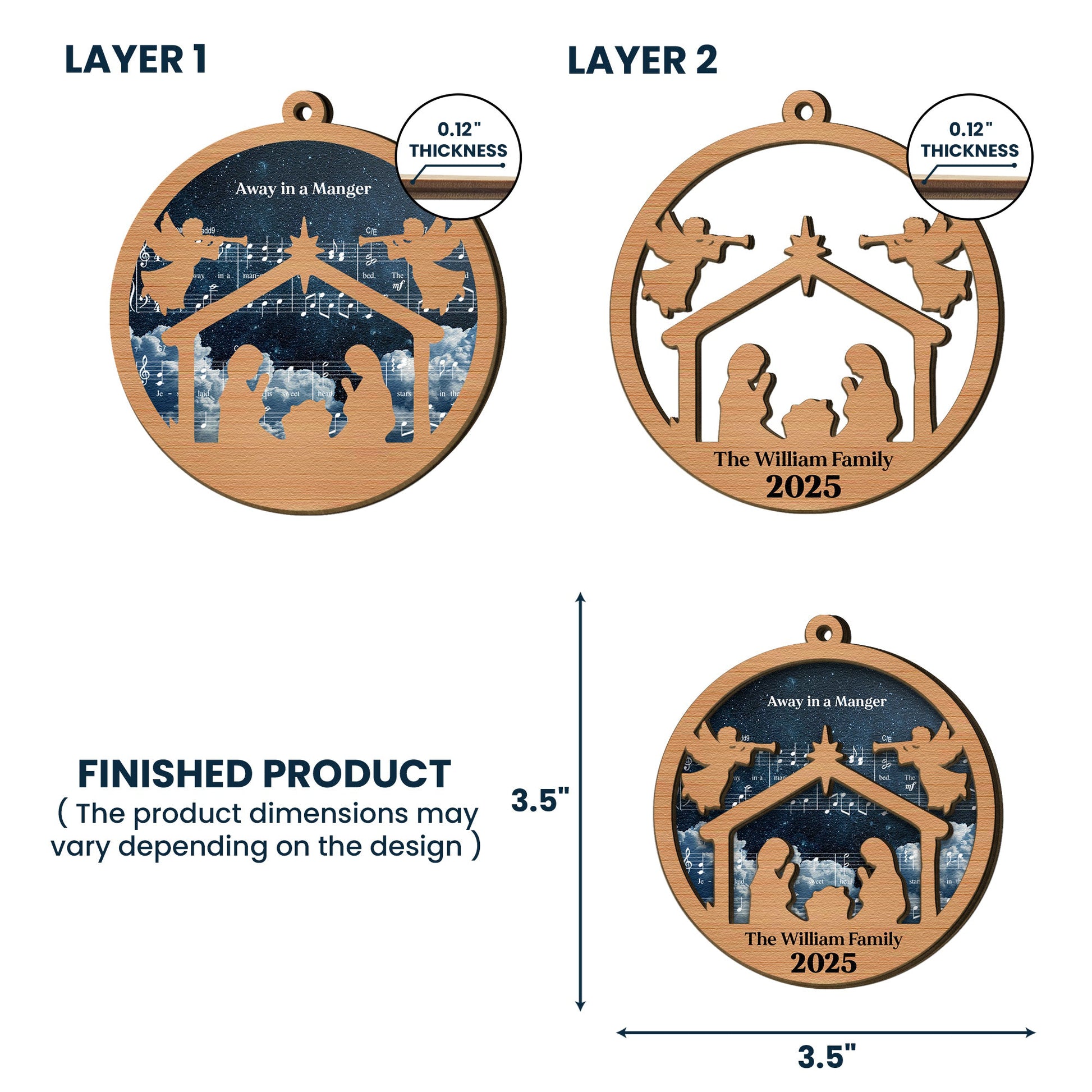 Celebrate the festive season in style with our stunning Set of 5 Pieces Nativity Christmas With Music Sheet. These personalized wooden ornaments are much more than just decorations; they're a representation of faith, family, Christian values, and the spirit of love that binds us all together. Crafted with precision, these ornaments can be beautifully displayed on your Christmas tree and throughout your home to create a warm festive ambiance. Ideal for the Christian family, these ornaments not only show your devotion to faith but also bring a sense of togetherness during the holiday season, making it enjoyable for everyone.