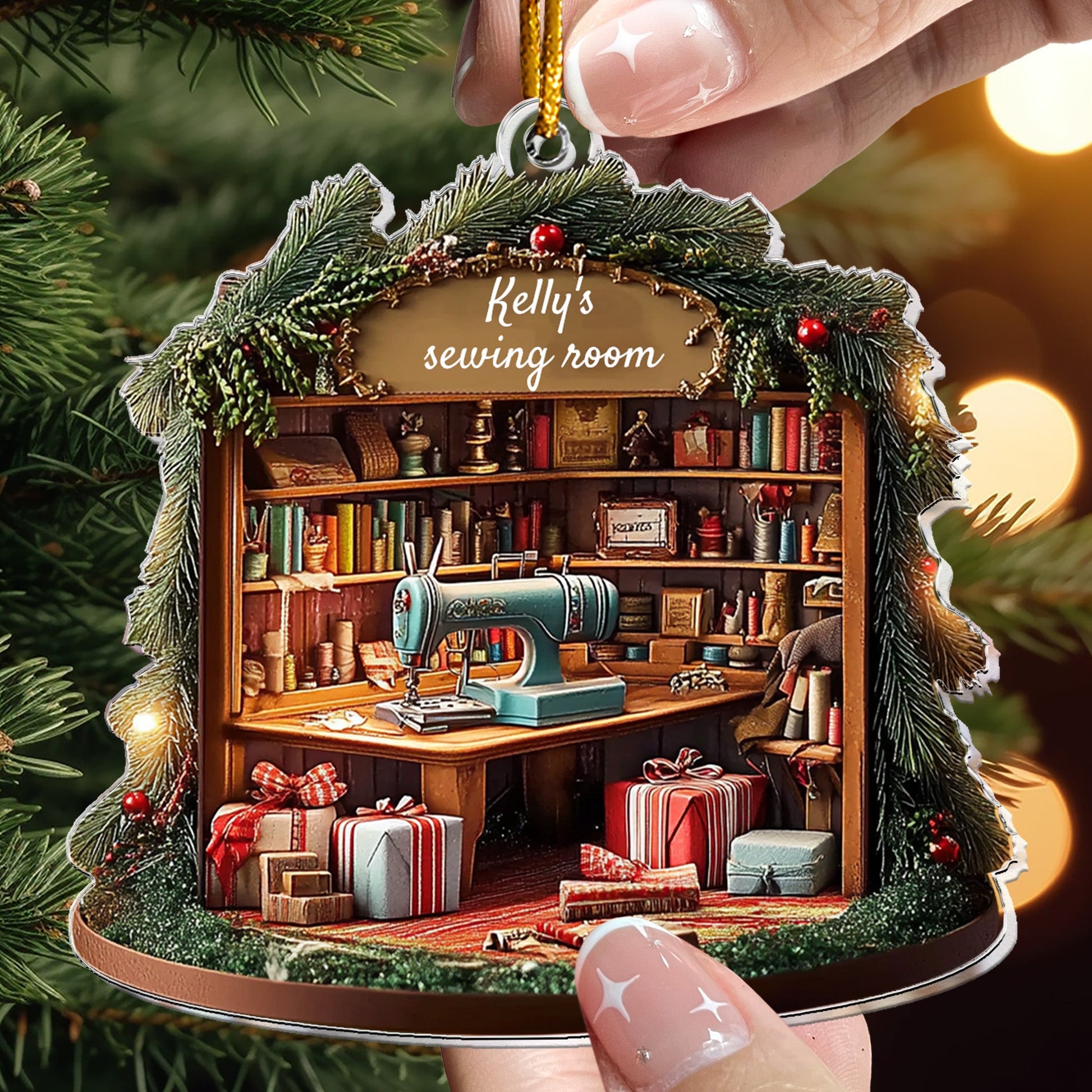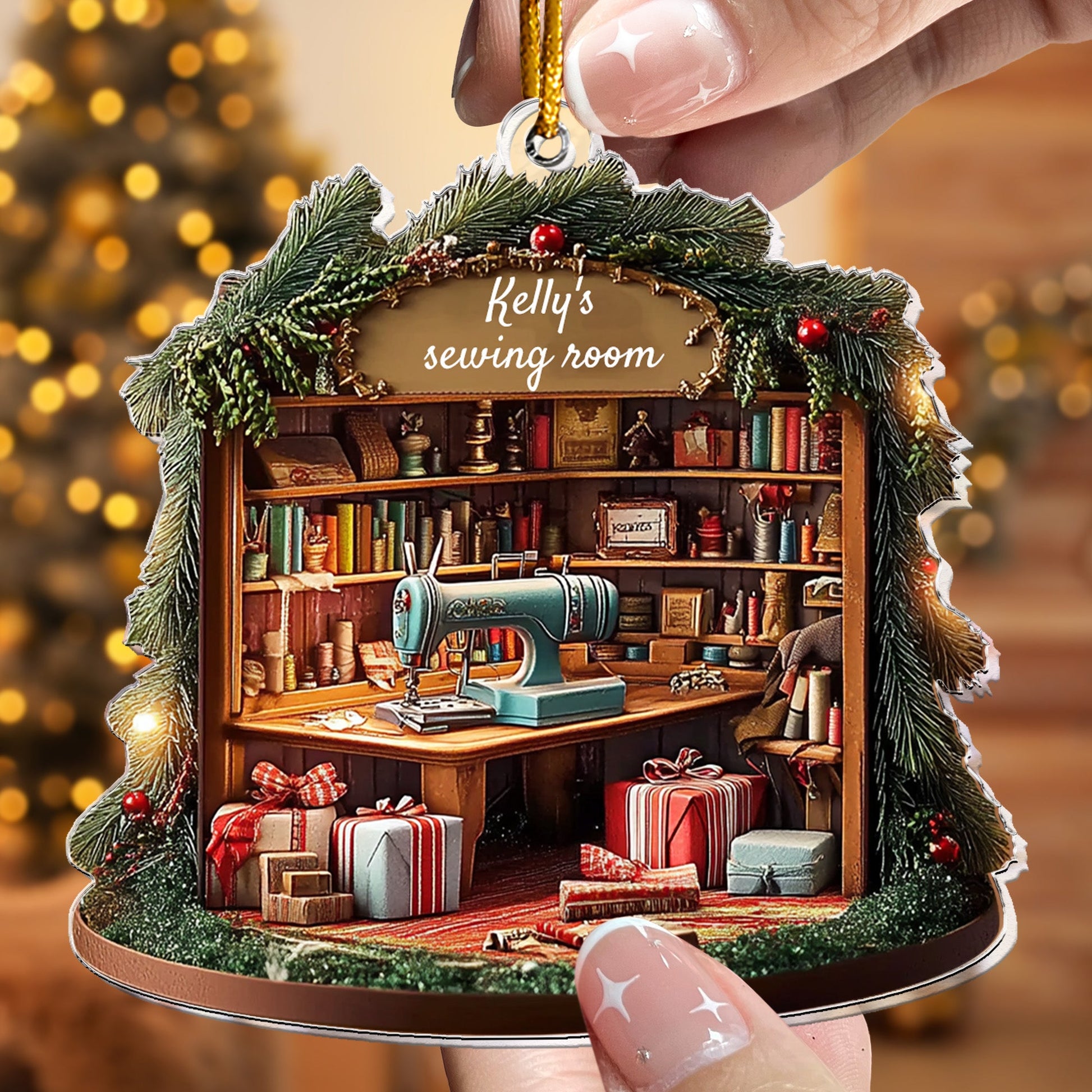 Whether it's a thoughtful Christmas keepsake or a special gift for a mom, grandma, or any sewing enthusiast, this 2D flat (not 3D) ornament captures the heart of a sewing lover's space with charm. Personalize it to bring a unique touch to holiday décor, honoring the joys of needlework and crafting!