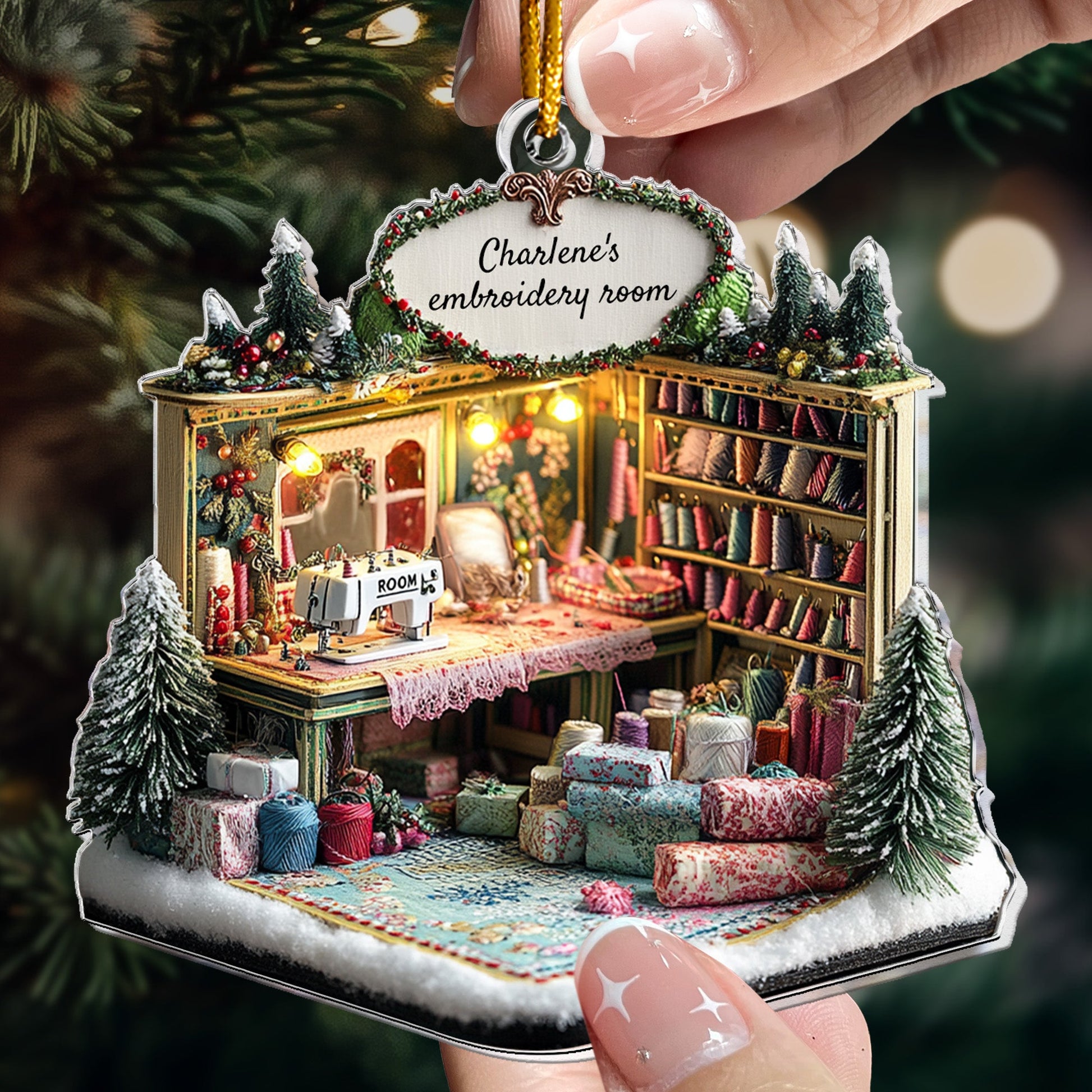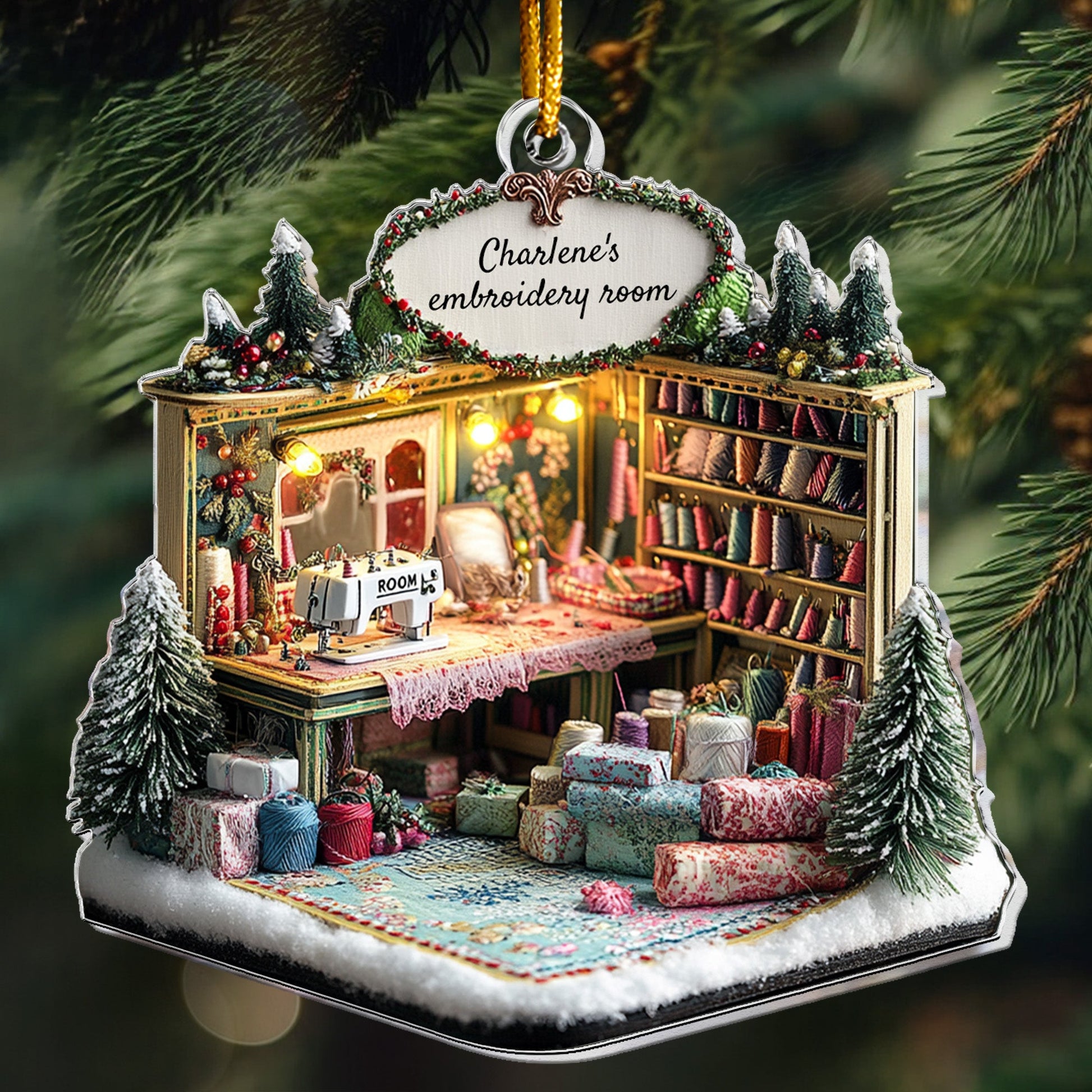 She Shed Sewing Room, Embroidery Room, Crafting, Flat Ornament - Personalized Acrylic Ornament