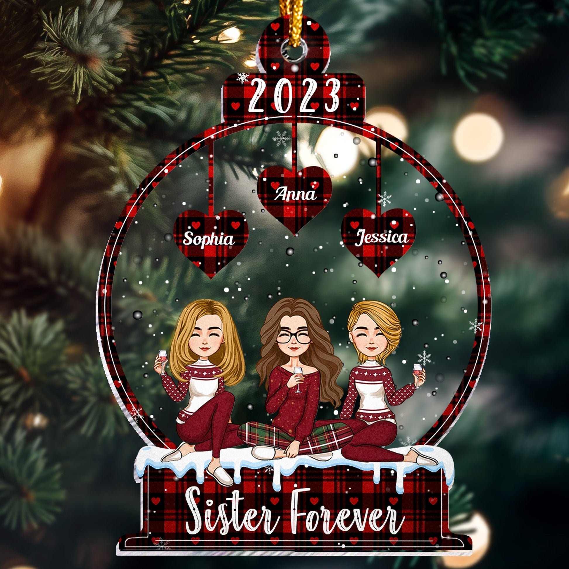 Sibling Forever - Personalized Snowball Shaped Acrylic Ornament