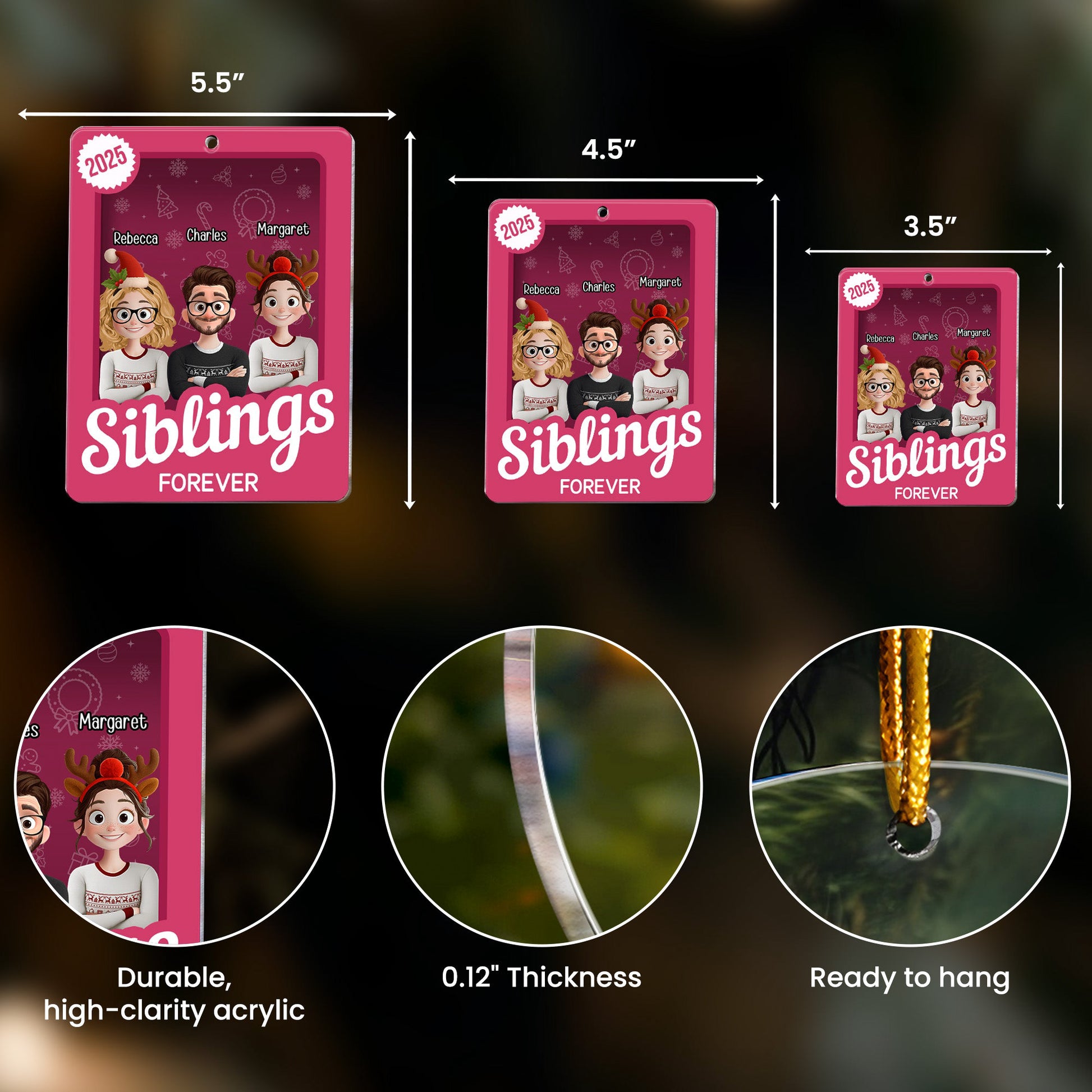 Every glance of this acrylic ornament shares an unspoken message of timeless sibling loyalty and familial affection, conveying a sentiment that says 'Siblings Forever, Family Forever, Sisters Forever, Brothers Forever.' Brighten up your Christmas tree, infuse warmth into your living space or add a personal touch to your festive decorations with this ornament. It suits any recipient - be it your sibling or the whole family, reminding them of the love and bond shared. Act now, add this piece of love to your cart and delight your loved ones with a gift that strengthens bonds and creates lasting memories.