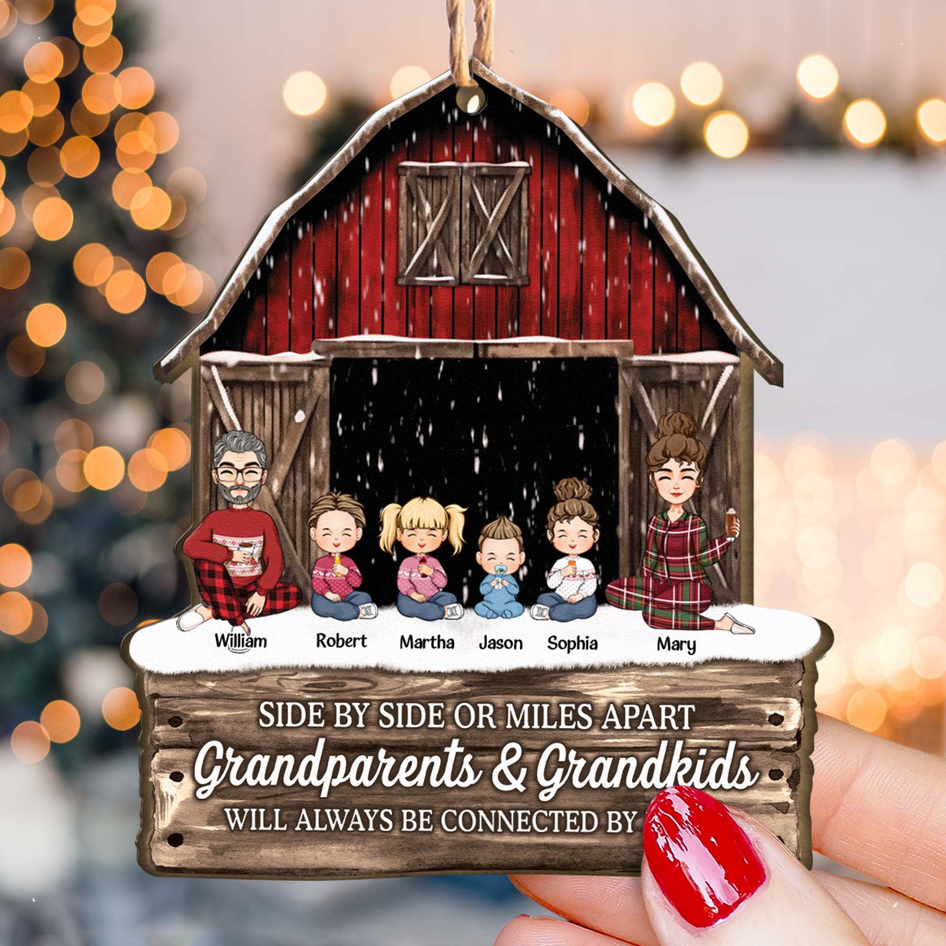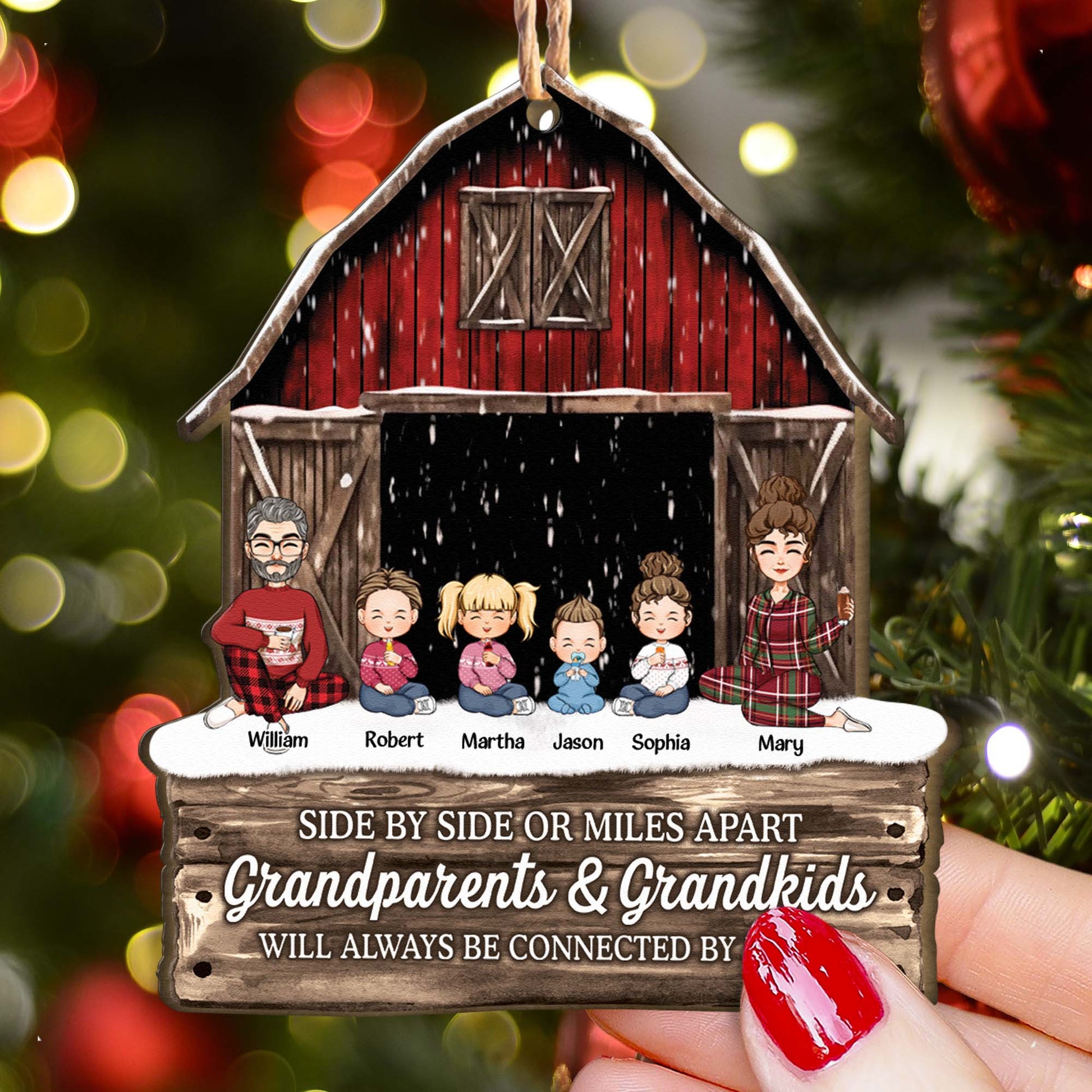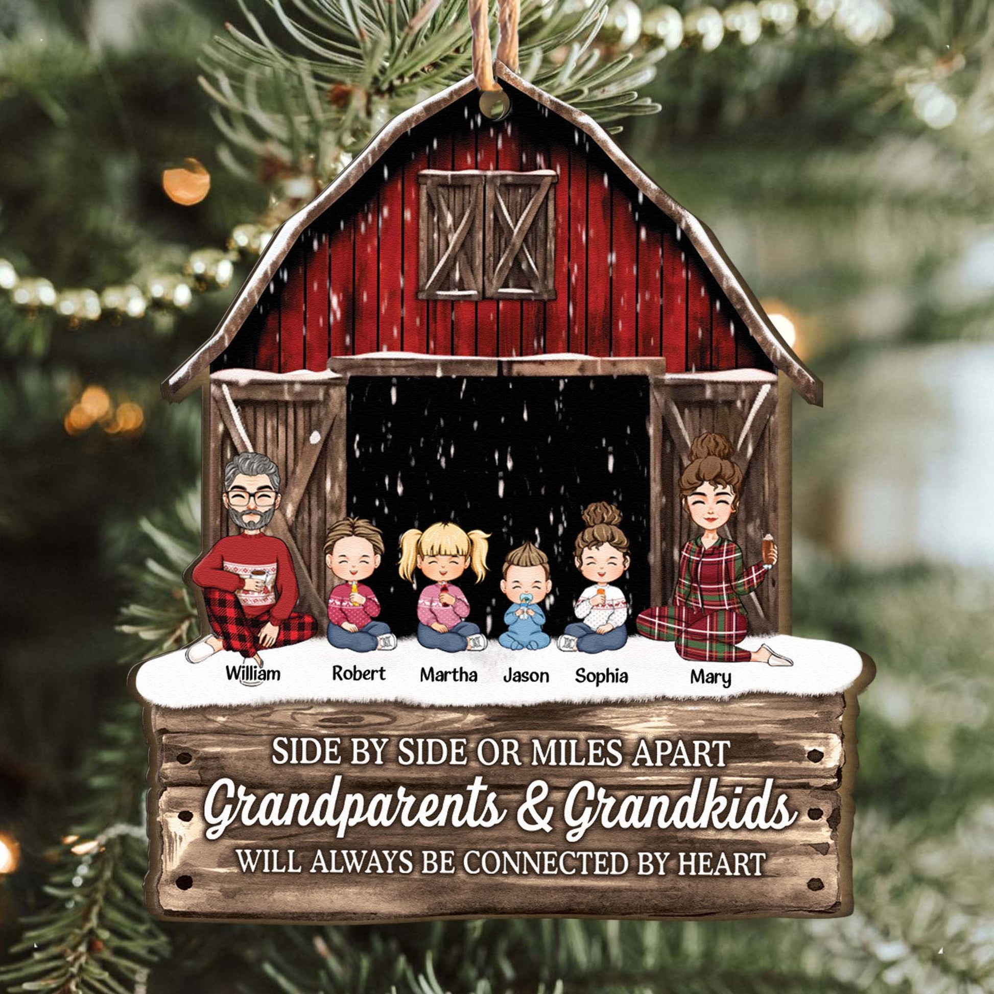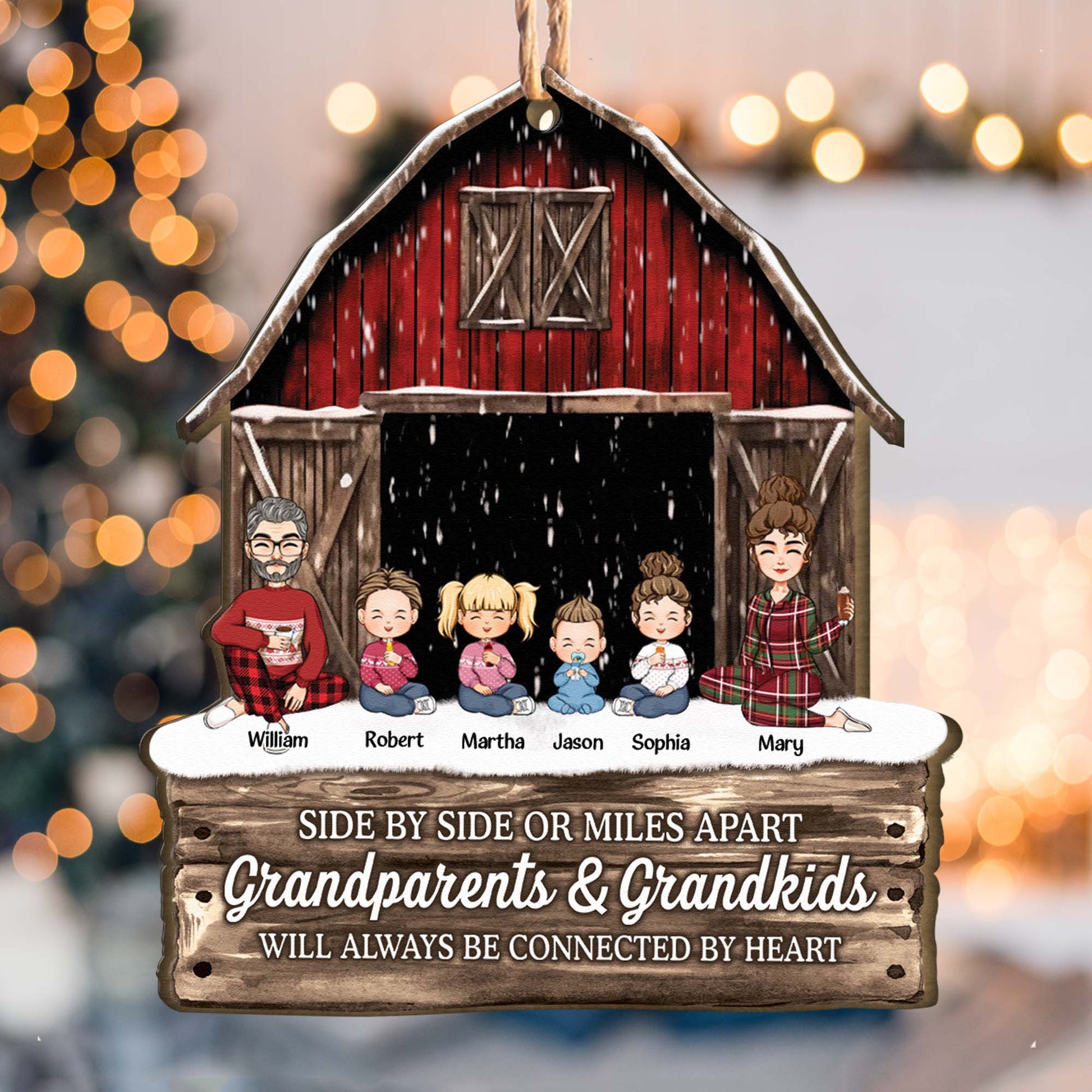 Side By Side Or Miles Apart Grandparents Grandkids Connected By Heart - Personalized Wooden Ornament