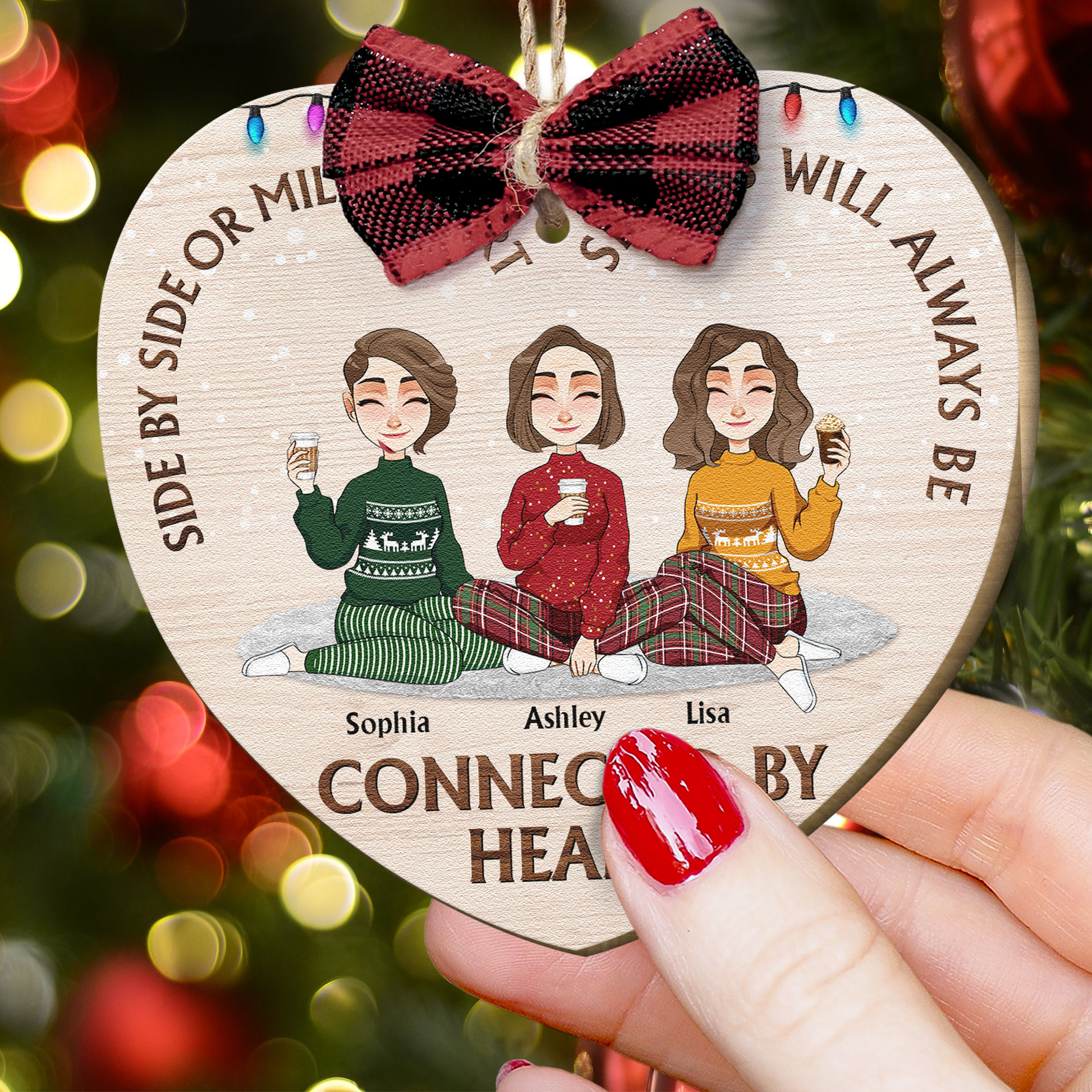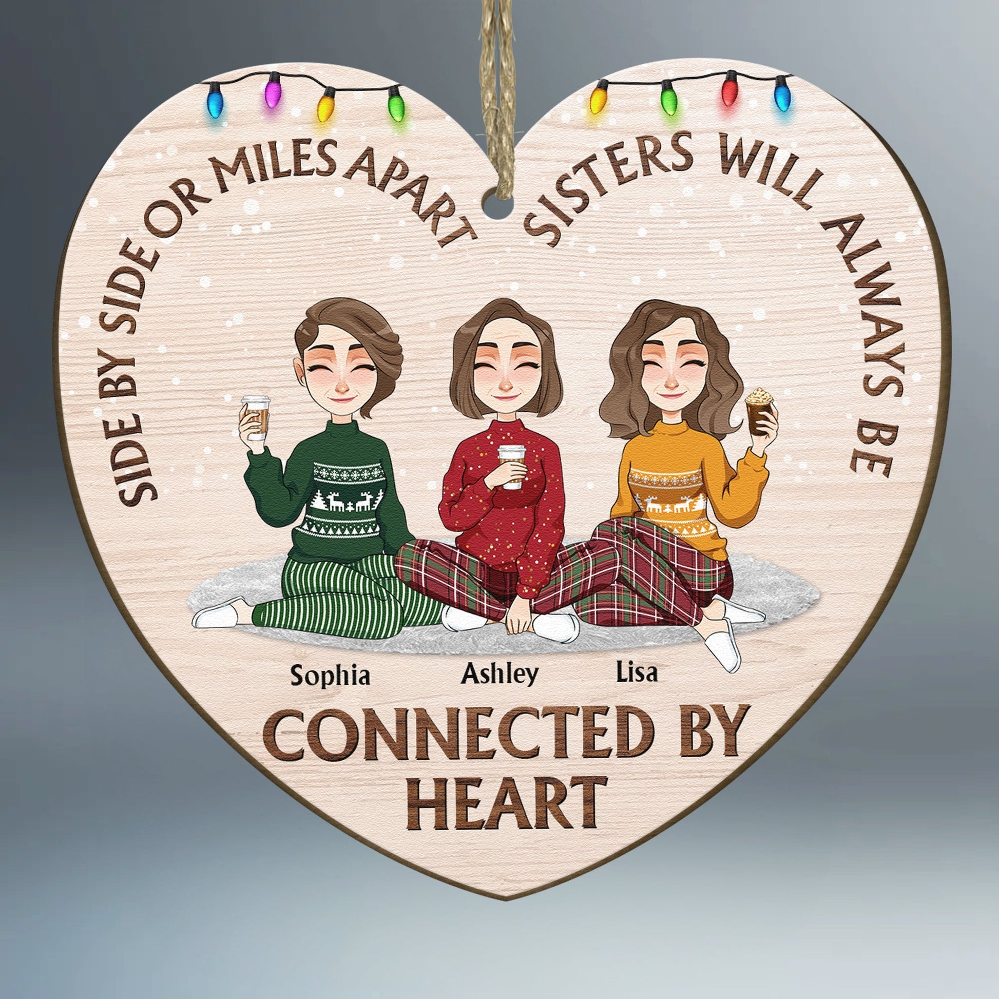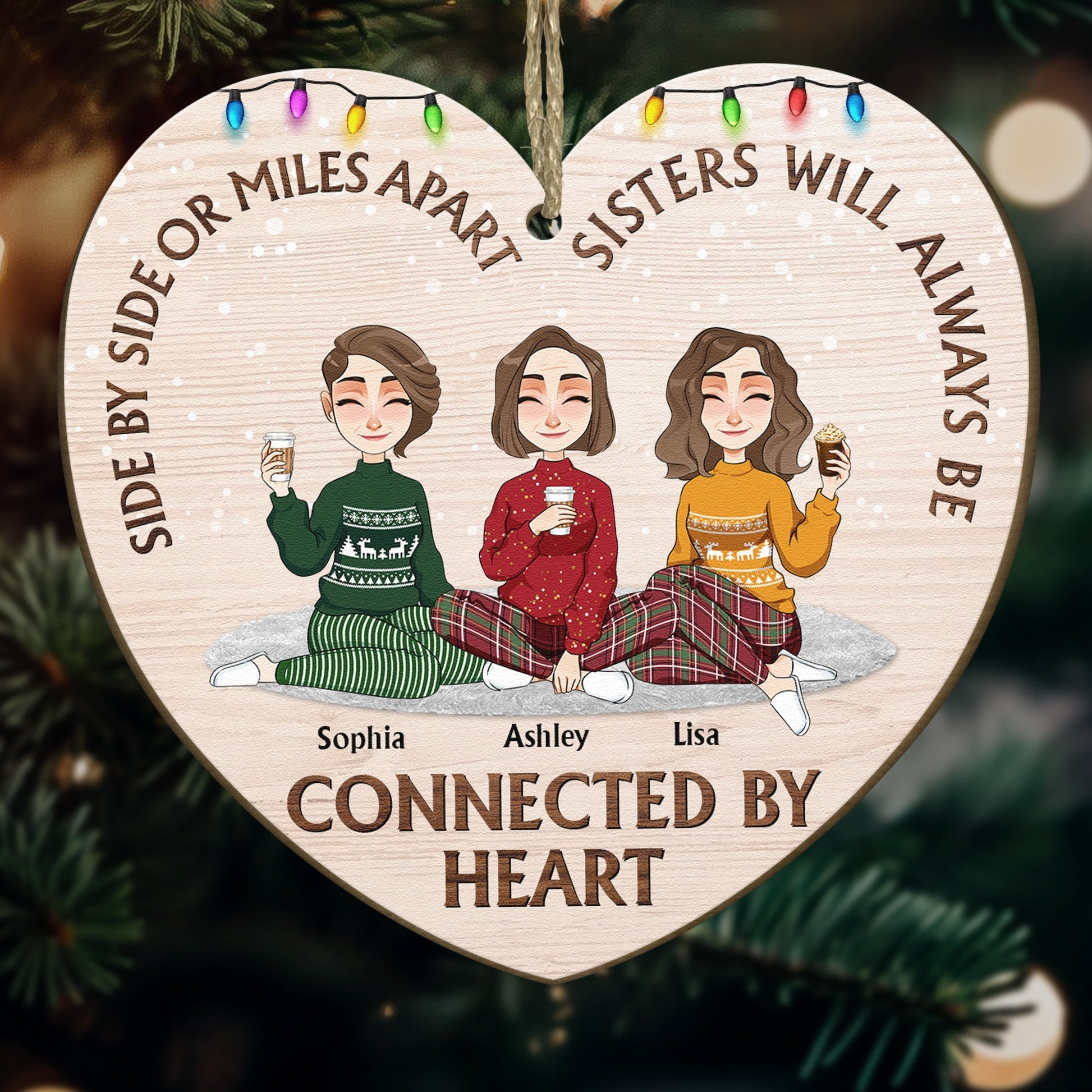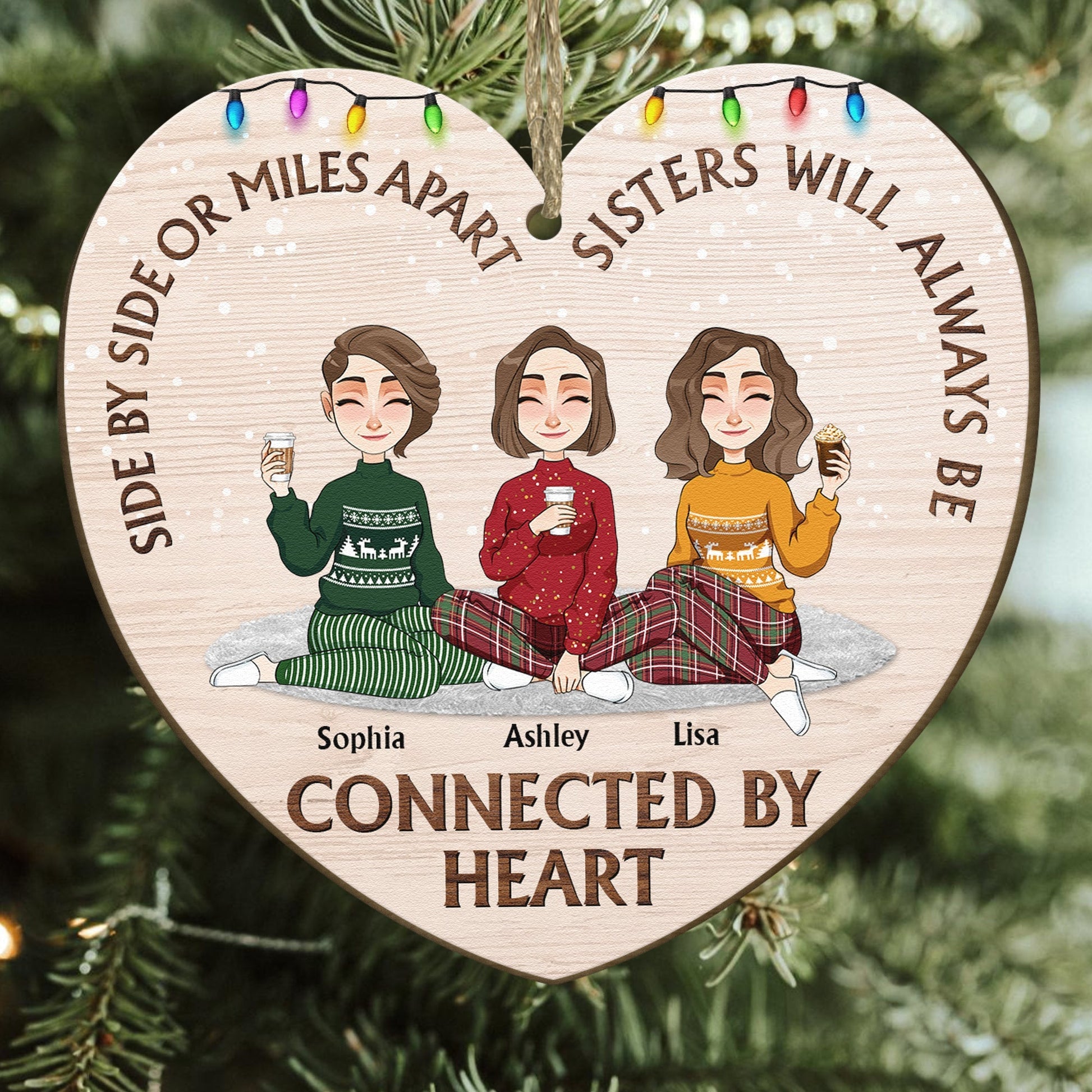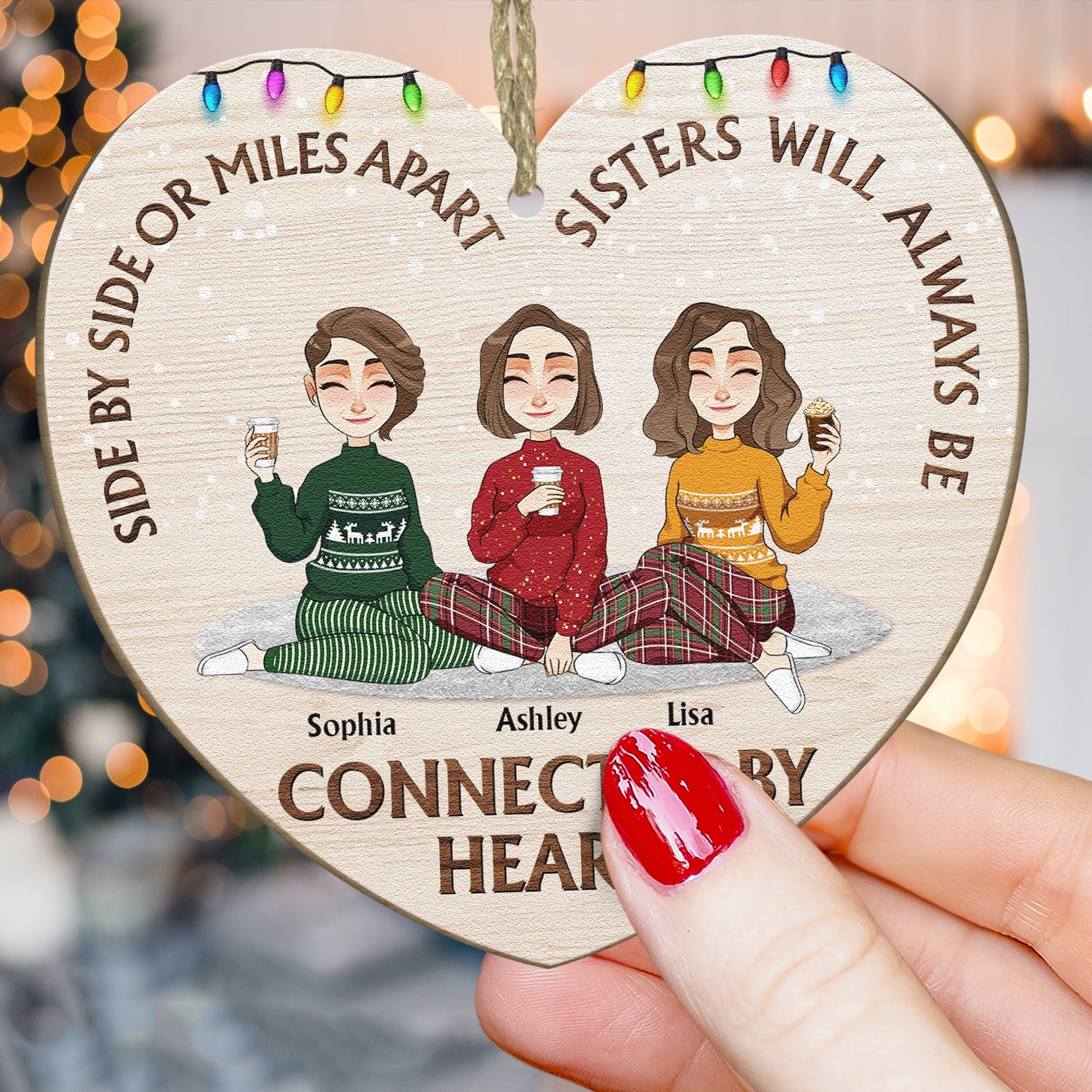 Sisters Always Be Connected By Heart- Personalized Wooden Ornament