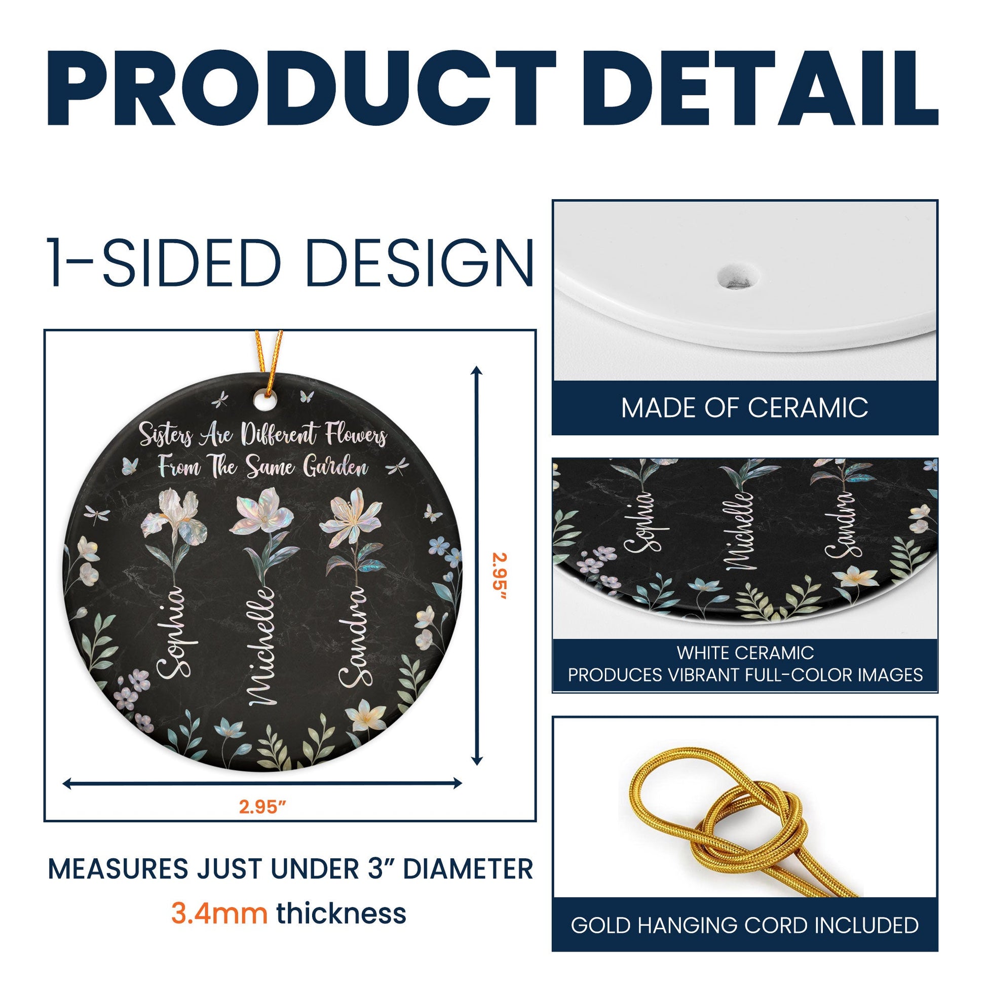 Cherish the unique bond and sisterhood with our Sister Are Different Flowers From Same Garden - Personalized Ceramic Ornament. This one-of-a-kind ceramic ornament speaks to the bond between sisters and the familial love they share. Just like flowers in a garden, sisters bloom from the same roots but each one is distinct and special in its own way. Perfect for siblings, it makes an ideal gift for birthdays, anniversaries, Christmas or any occasion where you'd like to demonstrate that familial bond.