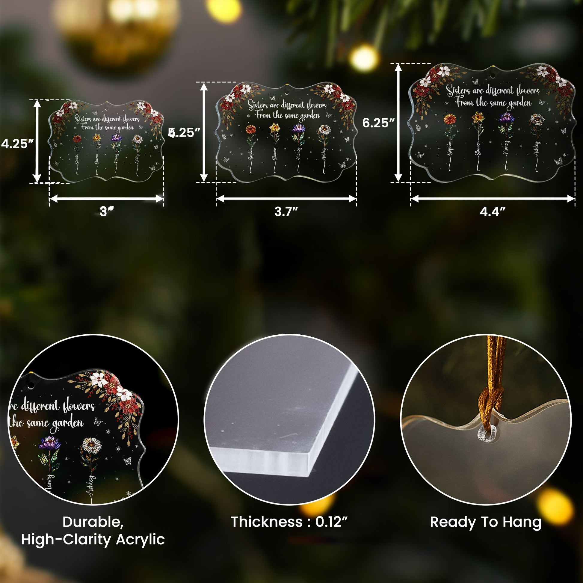 Sisters Are Different Flowers From The Same Garden Birth Flowers - Personalized Acrylic Ornament