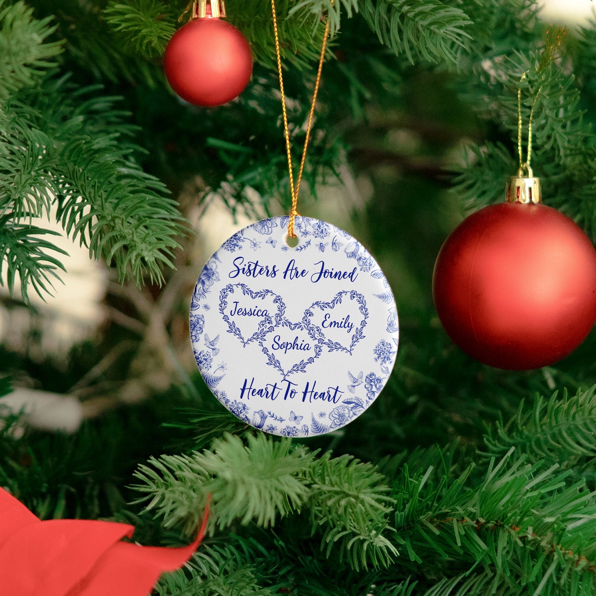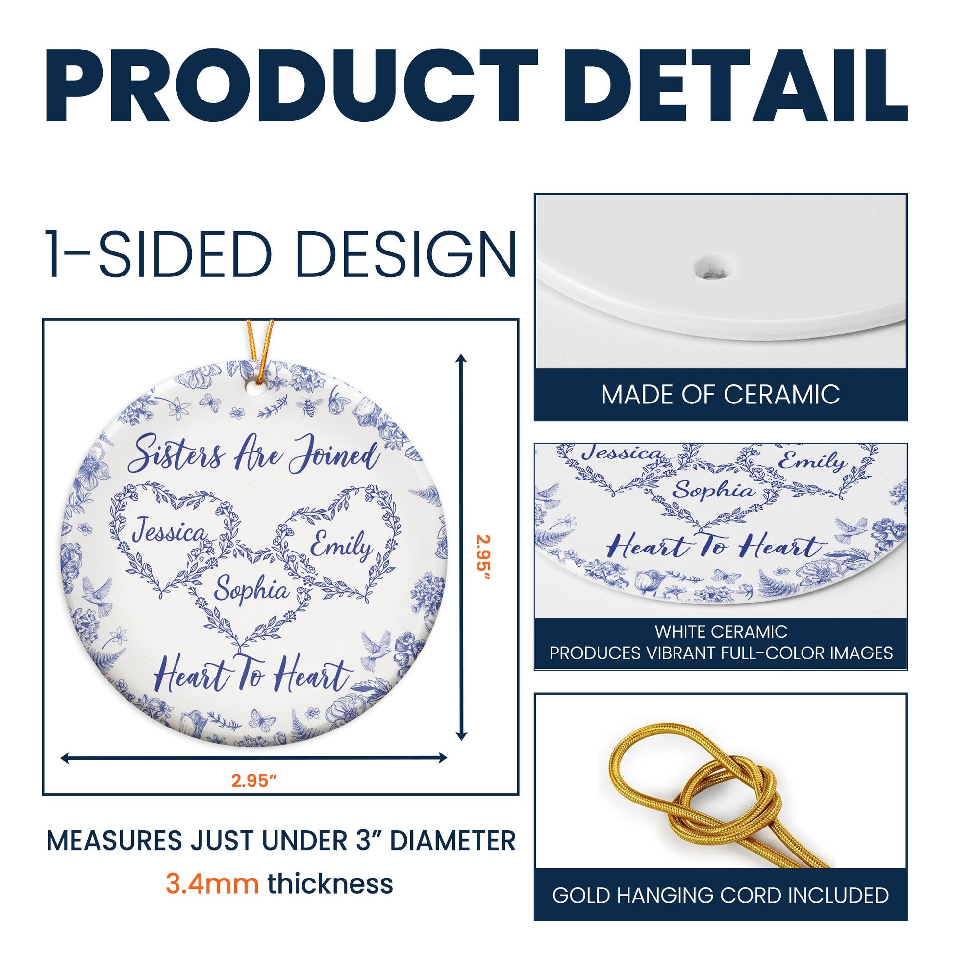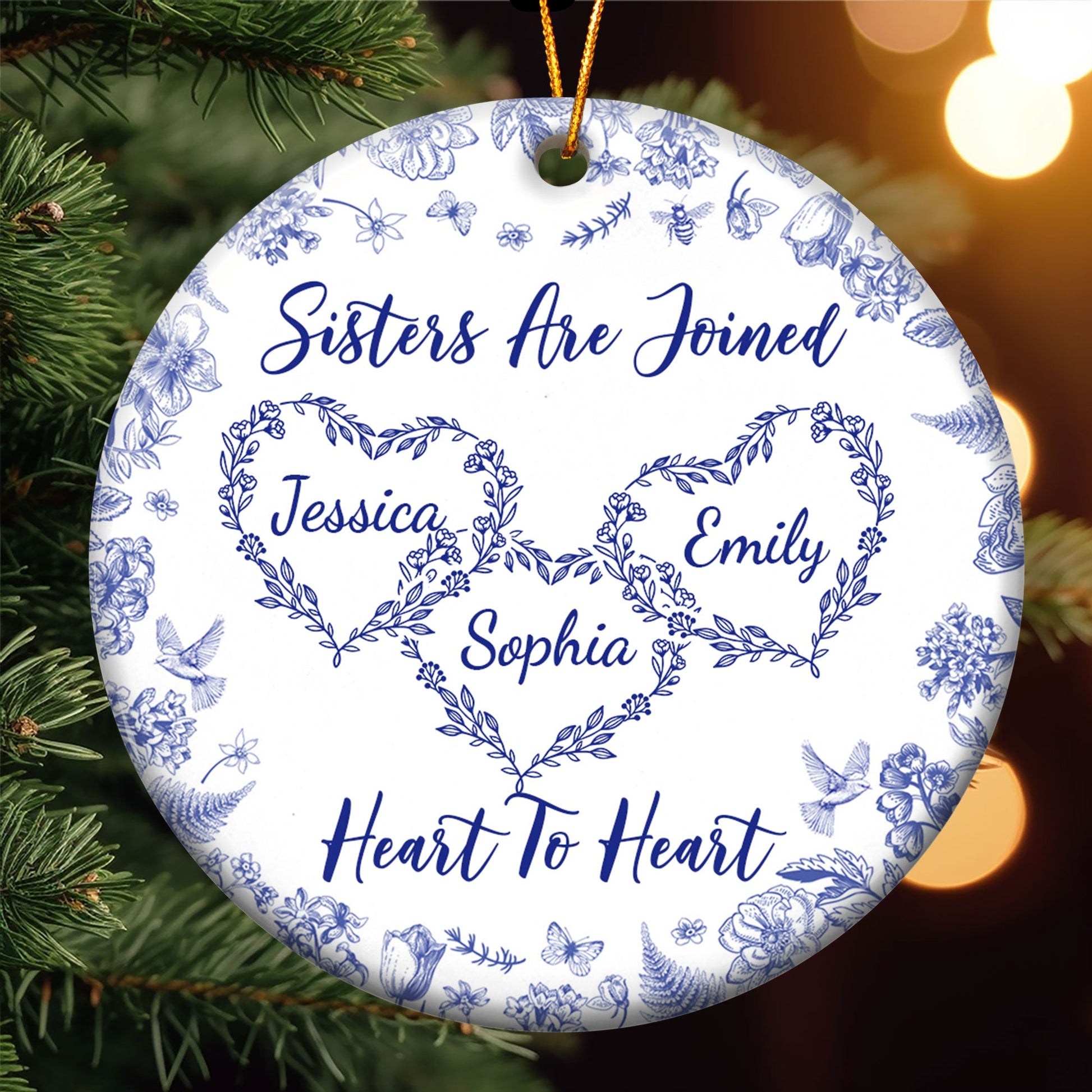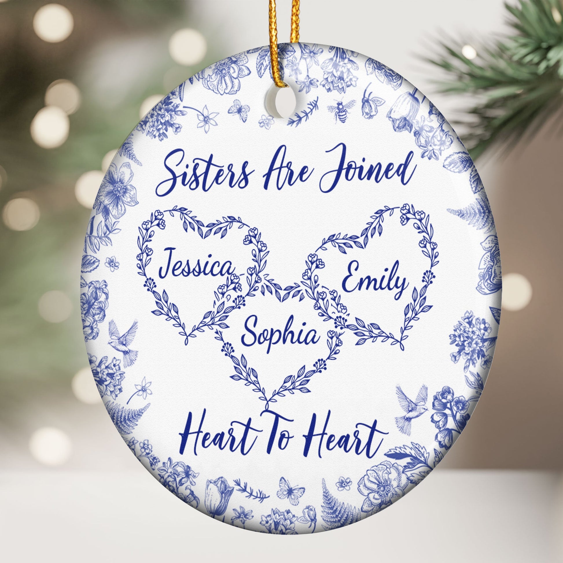 Sisters Are Joined Heart To Heart - Personalized Ceramic Ornament