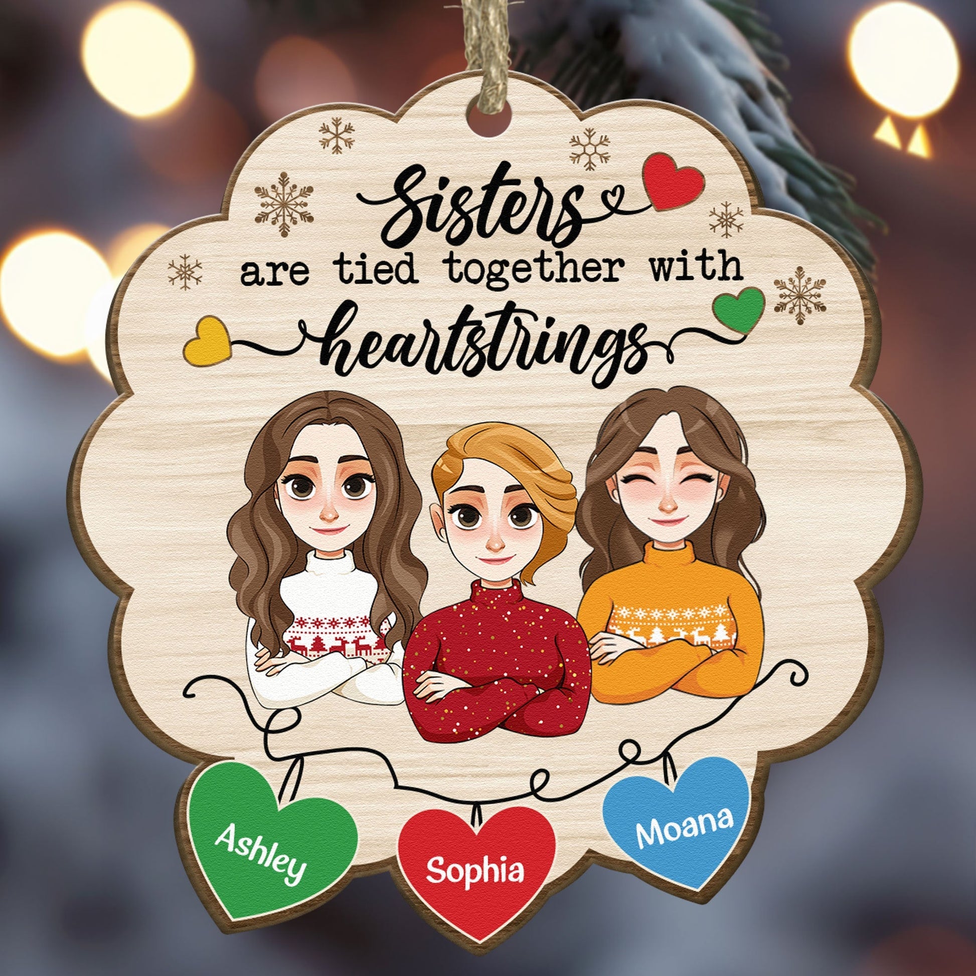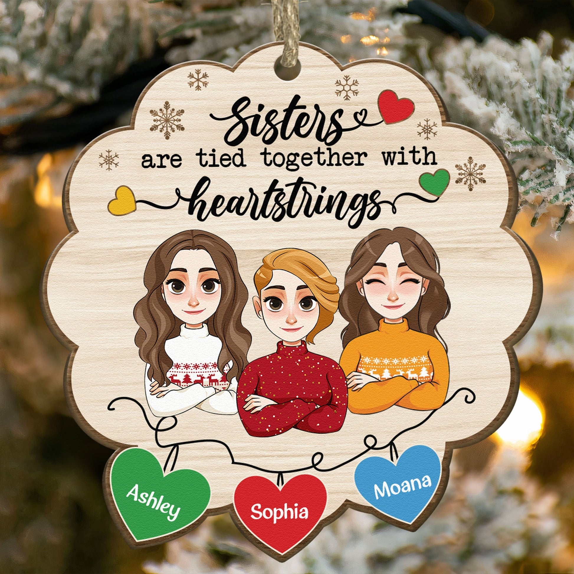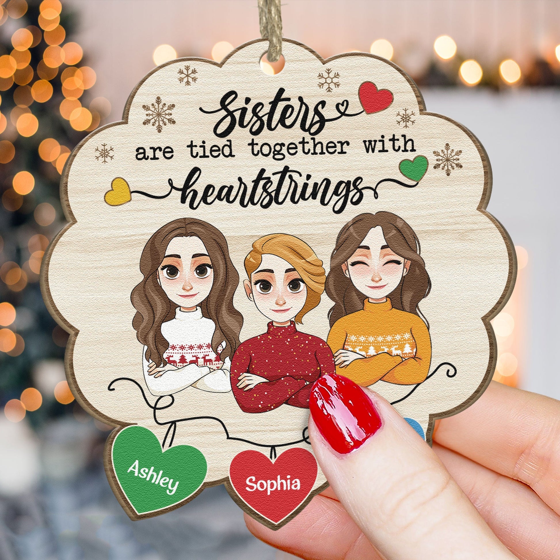 Sisters Are Tied Together With Heartstrings - Personalized Wooden Ornament