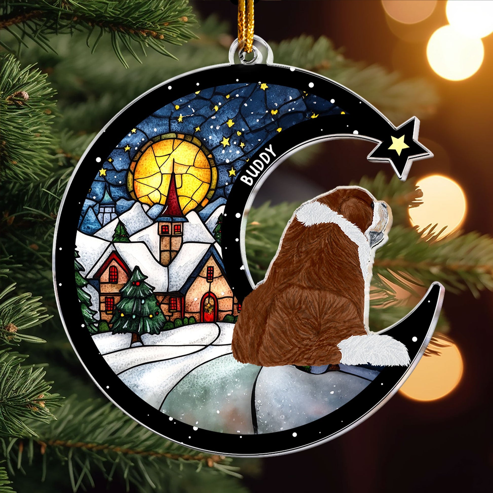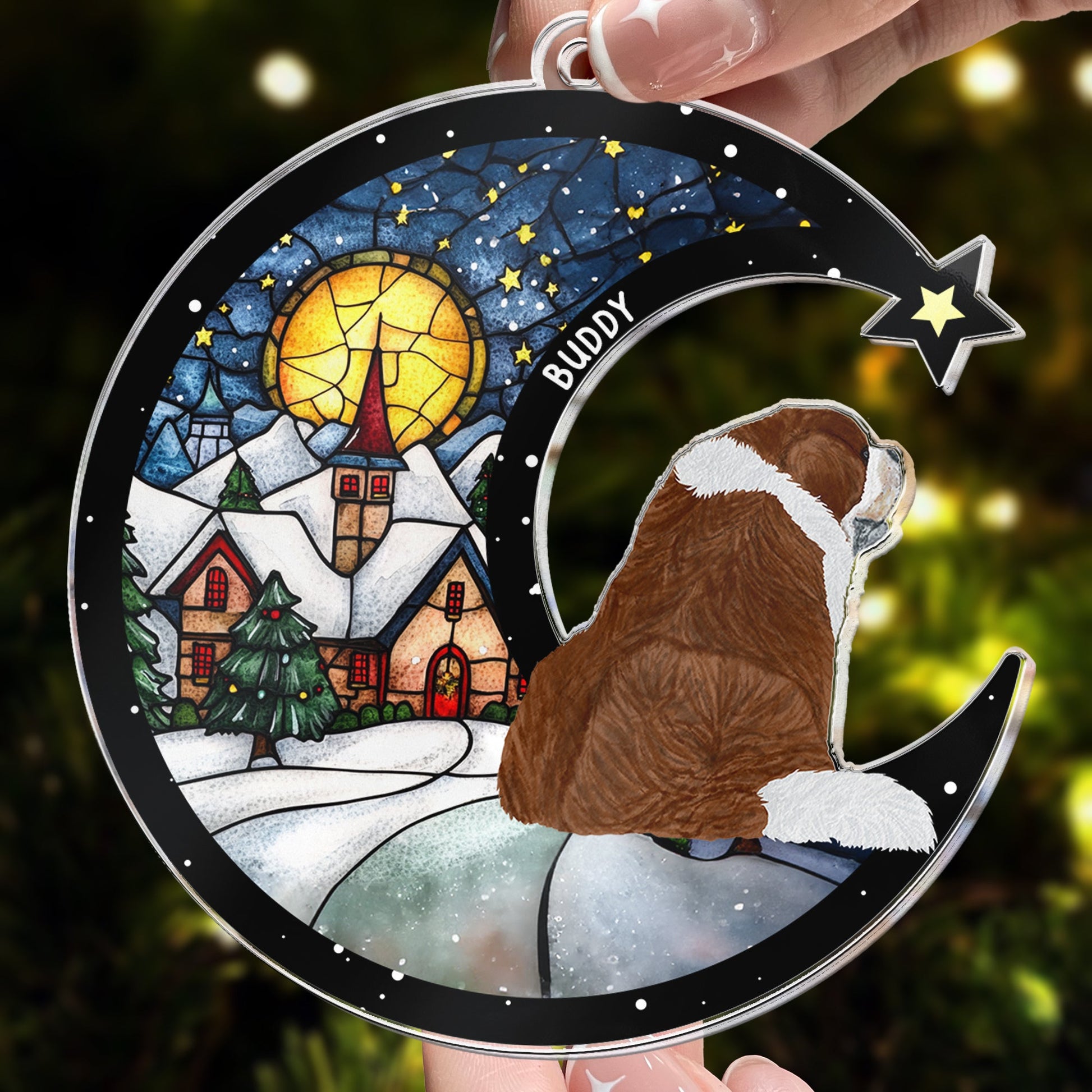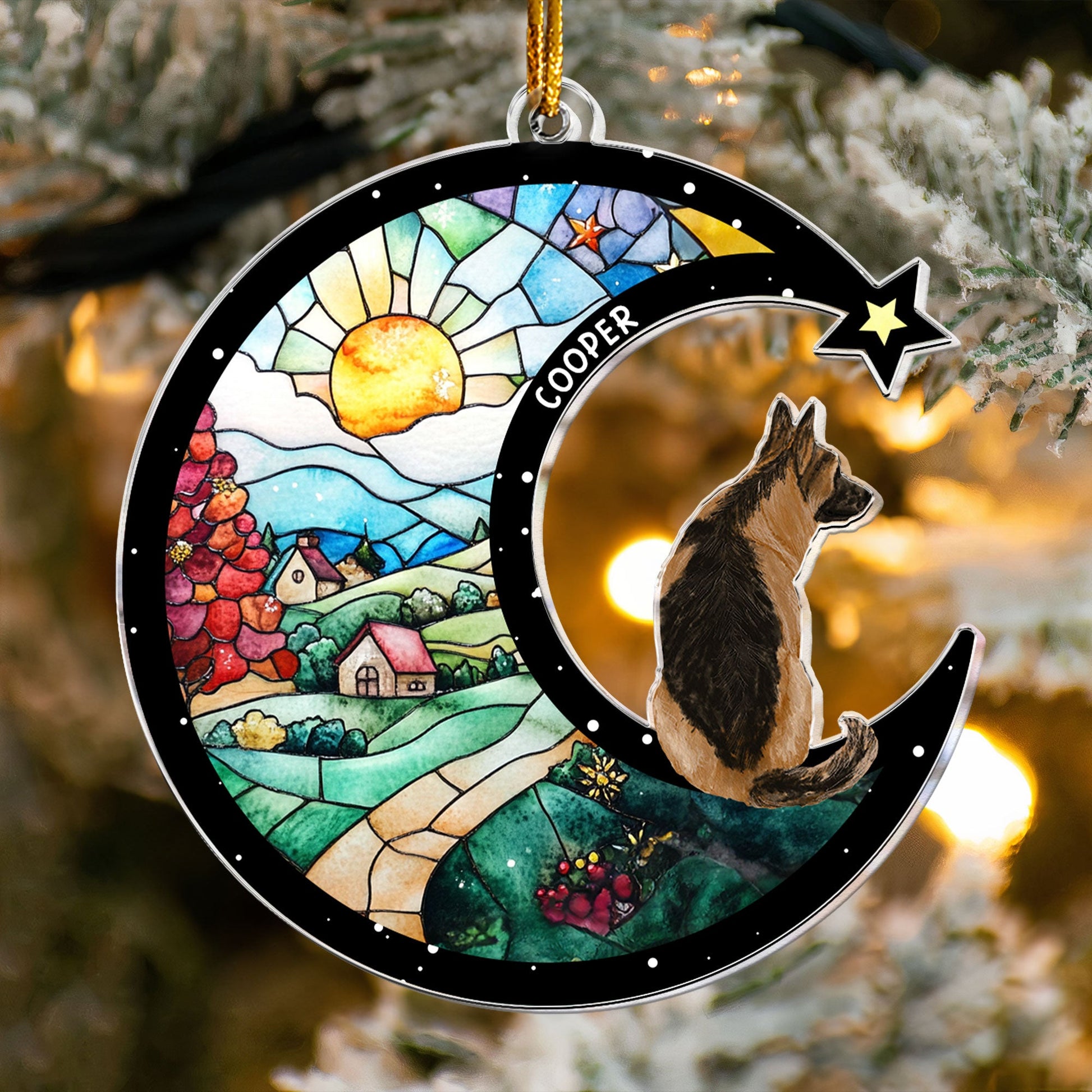 Celebrate the special bond you share with your furry friend this Christmas with our stunning Personalized Pet Moon & Wing Ornament! Featuring a beautiful stained-glass-inspired design of a crescent moon and angelic wings, this ornament is customized with a silhouette of your beloved pet, making it a unique and meaningful addition to your holiday décor.