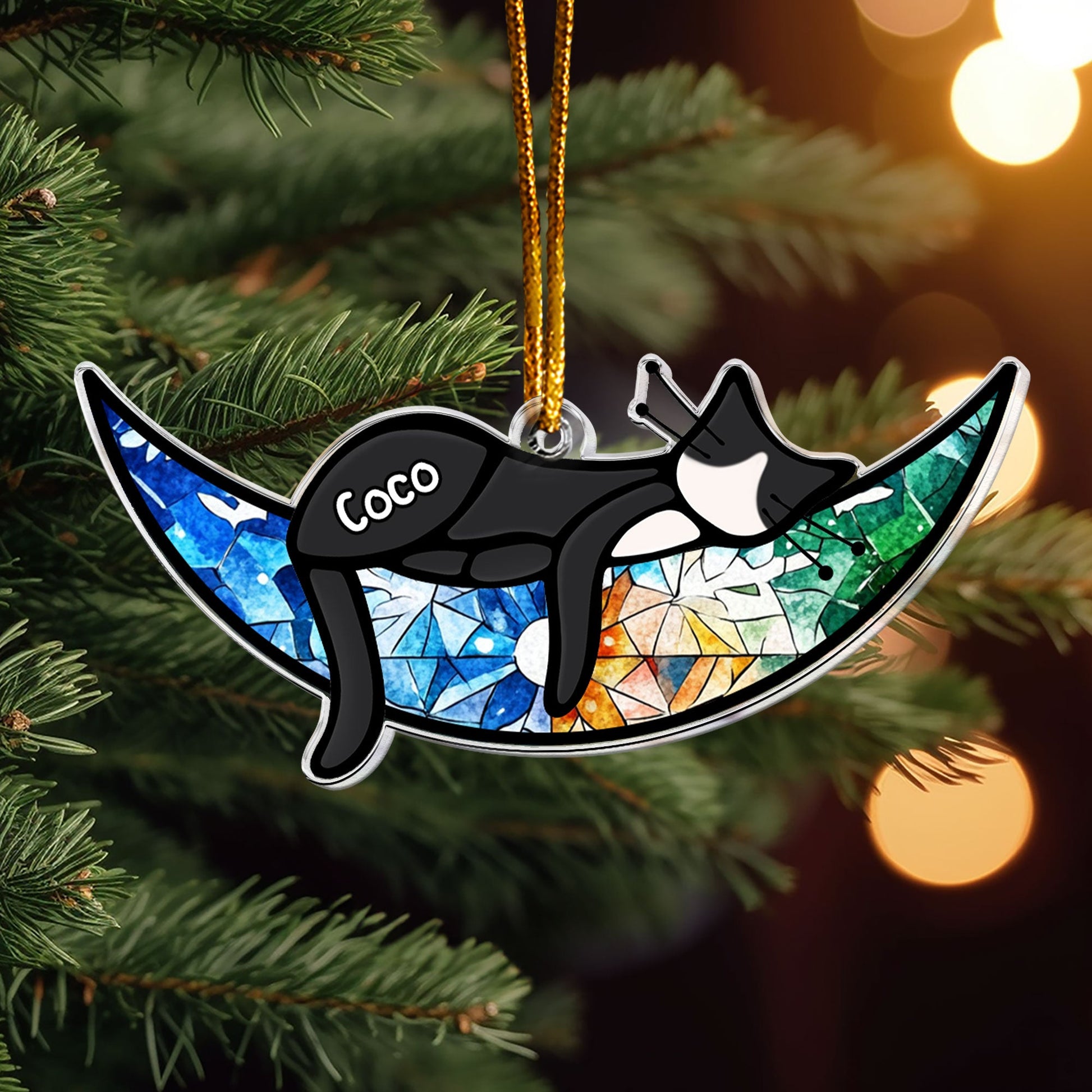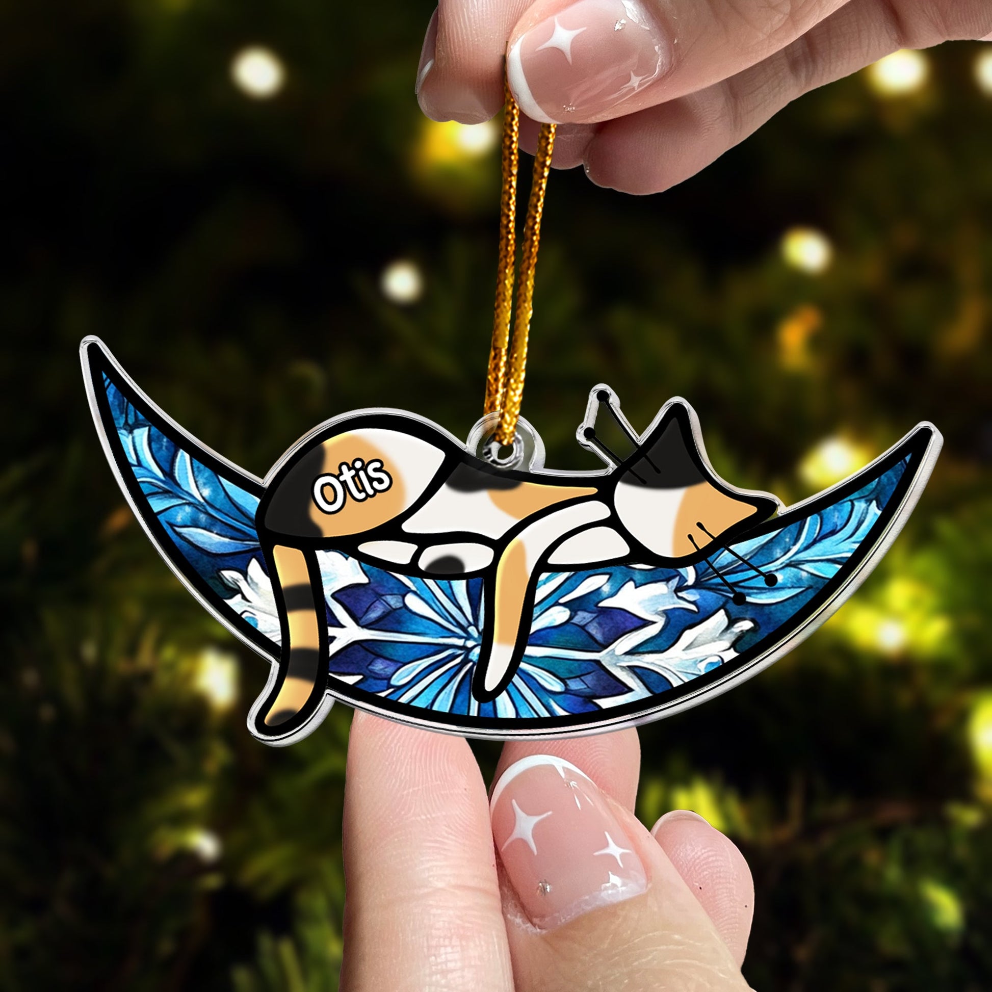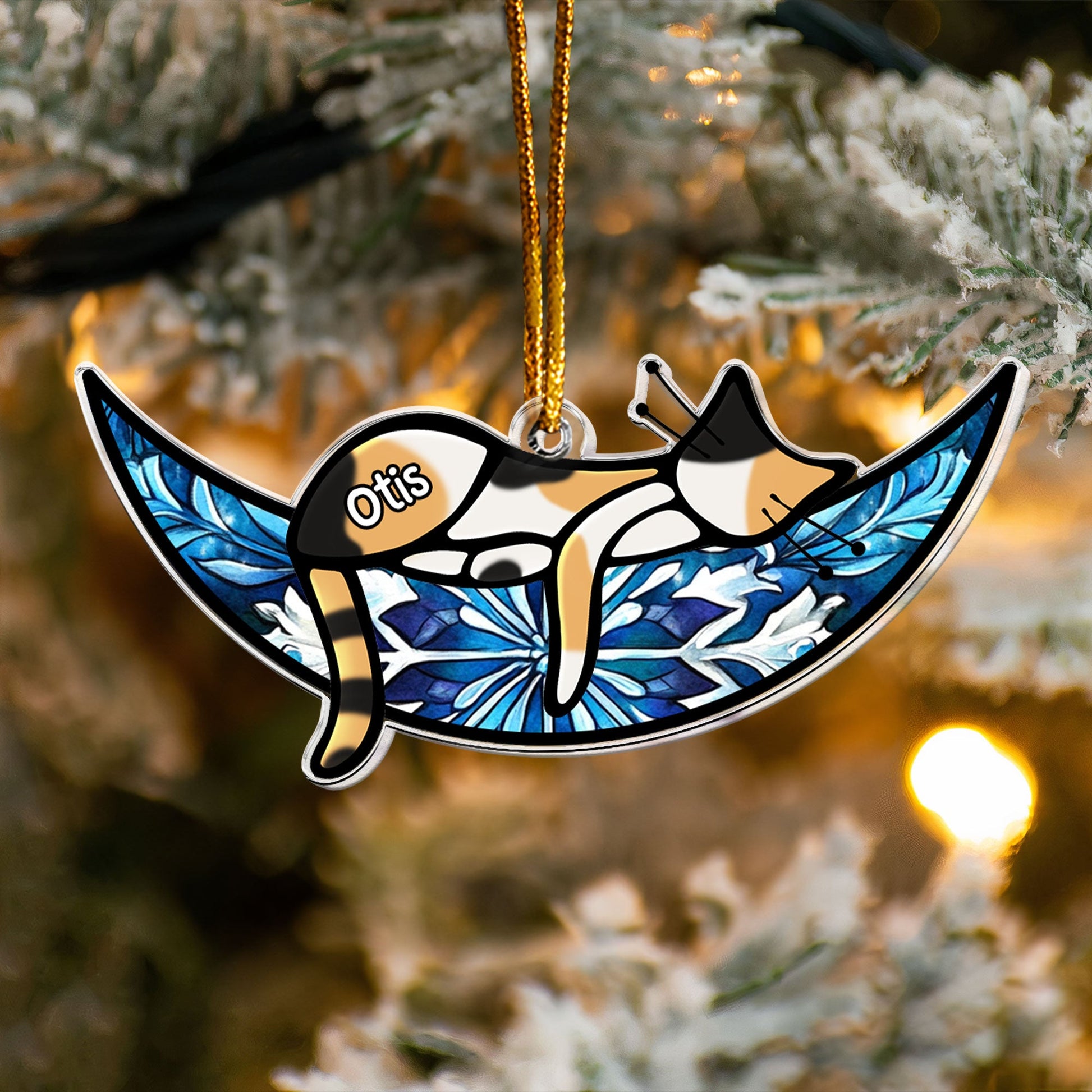 Sleeping Cat - Christmas Time - Personalized Acrylic Ornament