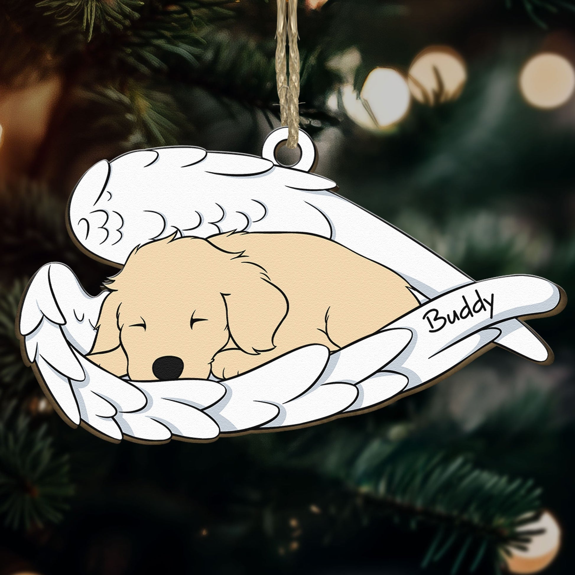 Sleeping Dog - Personalized Wooden Ornament