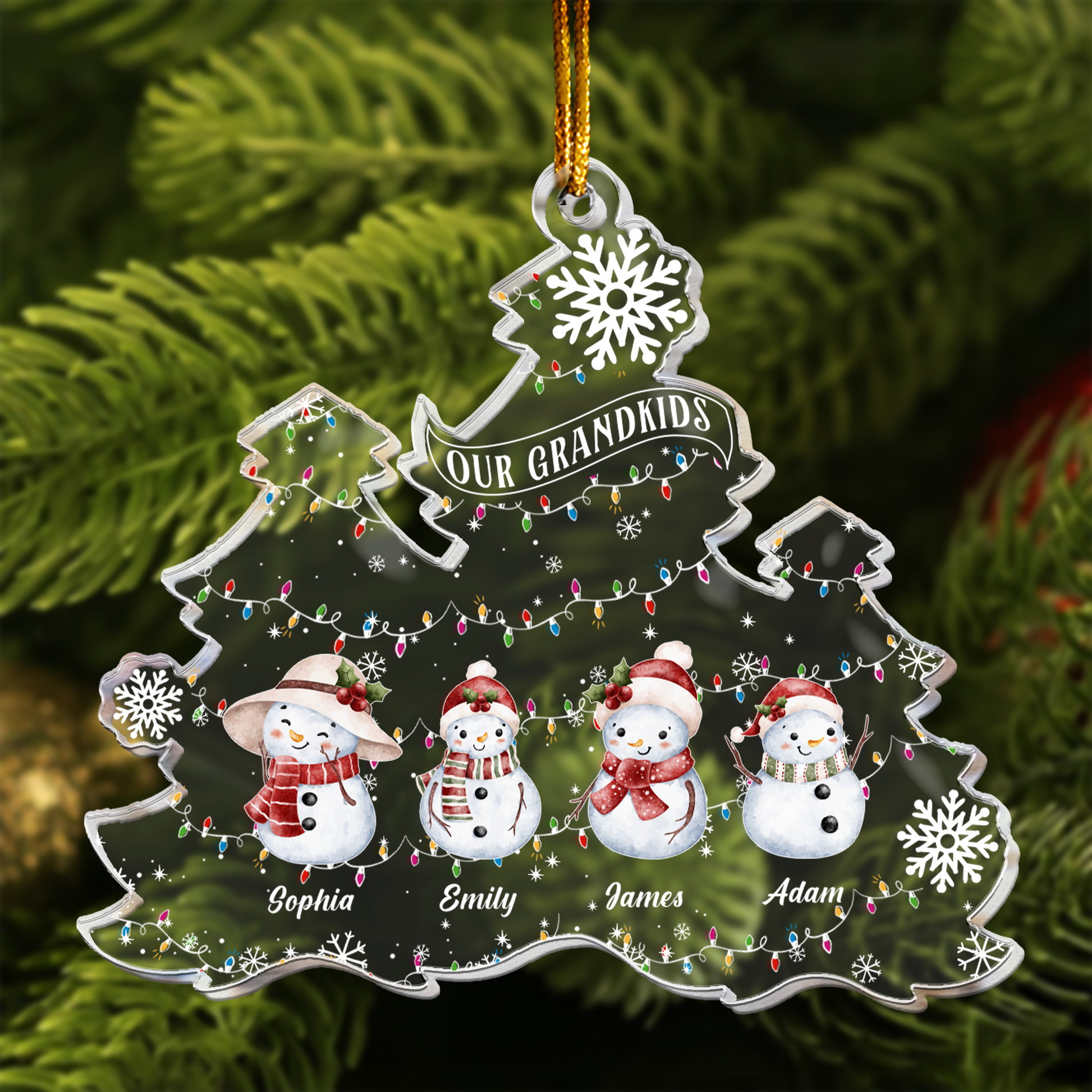 Snowman Grandkids With Names Gift For Grandma Grandparents - Personalized Acrylic Ornament