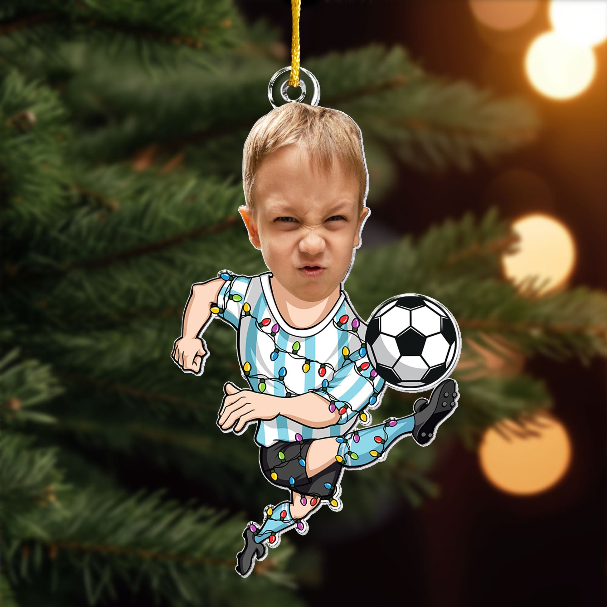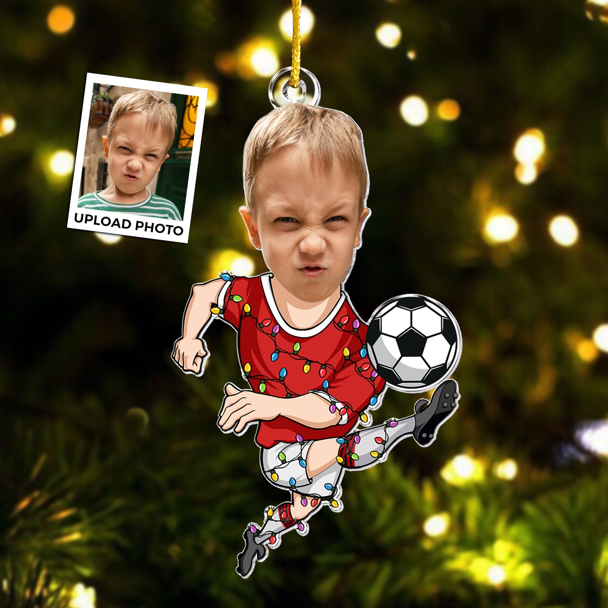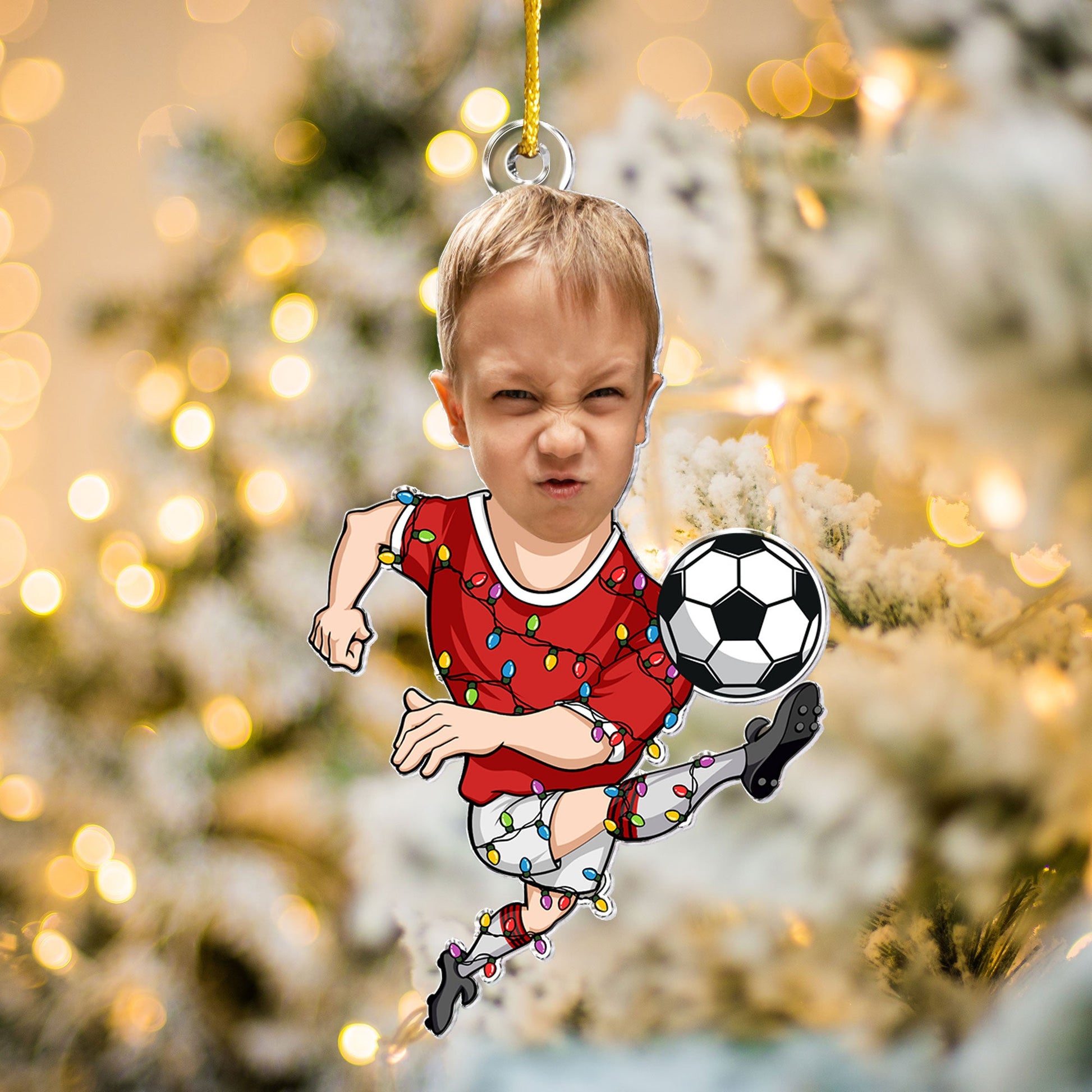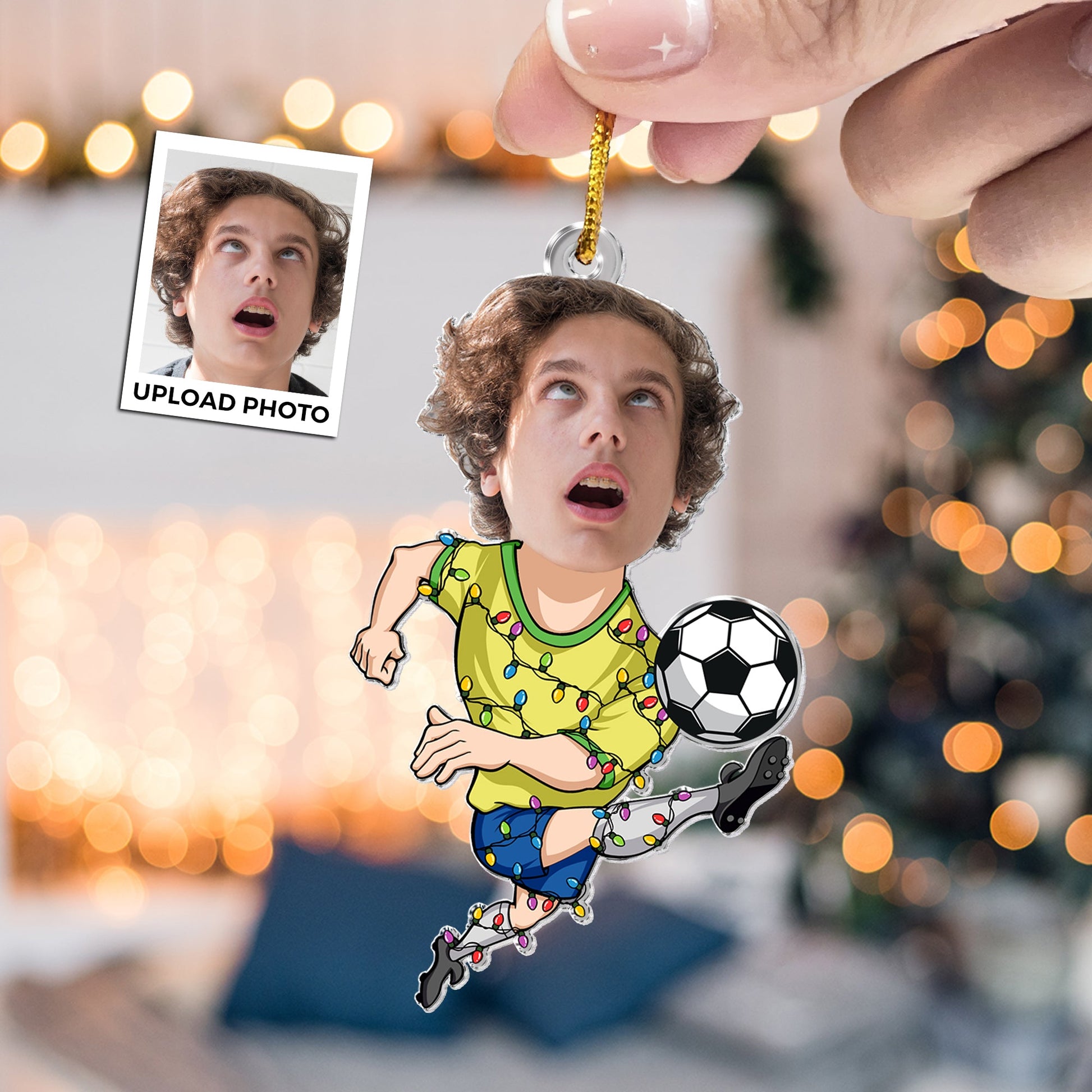 The Soccer Players - Personalized Acrylic Photo Ornament is a unique and special way to celebrate your favorite player's love for sports during the holiday season. This ornament features a custom photo of your husband, son, or grandson with a funny clipart. It's the perfect Christmas keepsake that will bring joy and pride to any sports-loving family. Ideal as a gift for your husband, son or grandson, this personalized ornament captures their passion for sports while brightening up the Christmas tree for years to come.