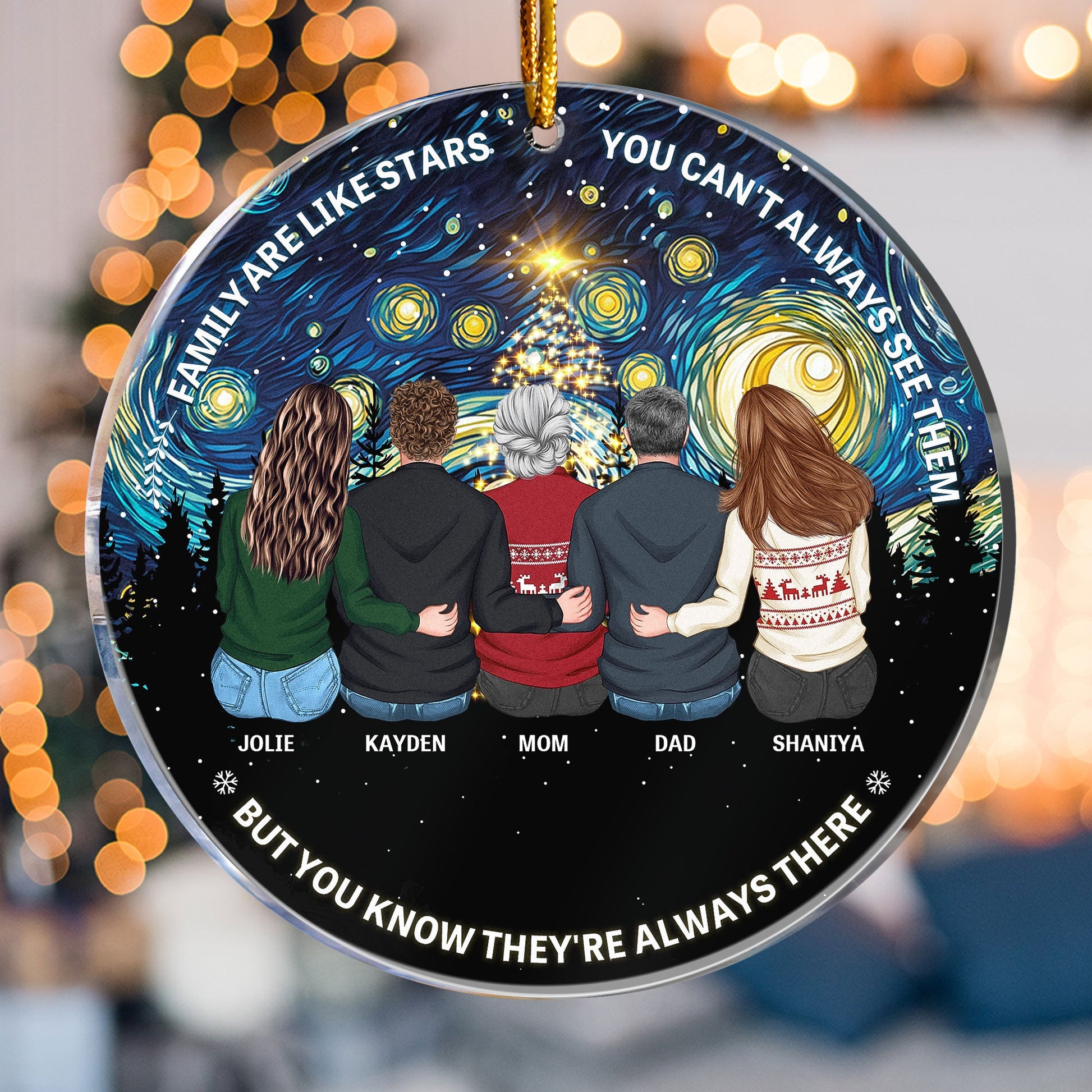 Starry Night Family Sitting Together - Personalized Acrylic Ornament