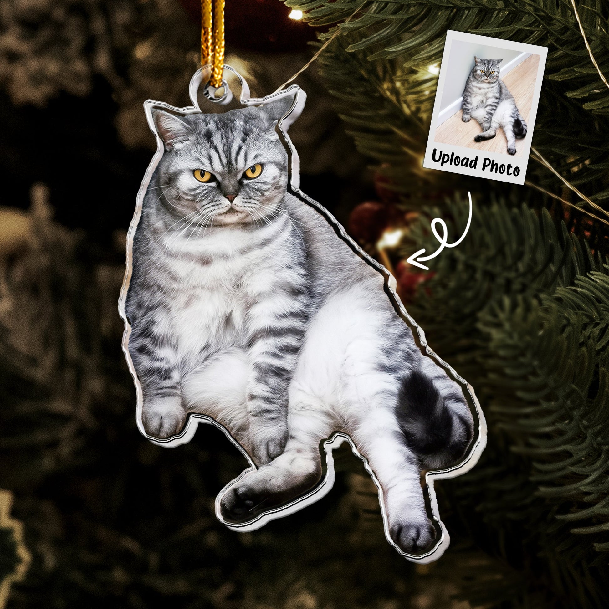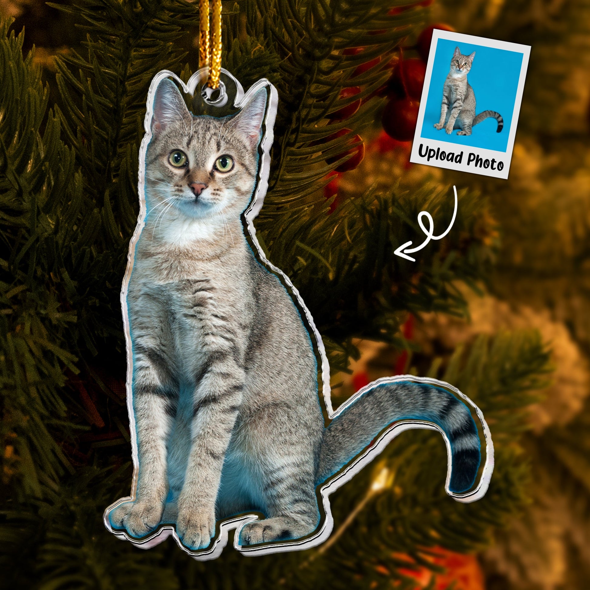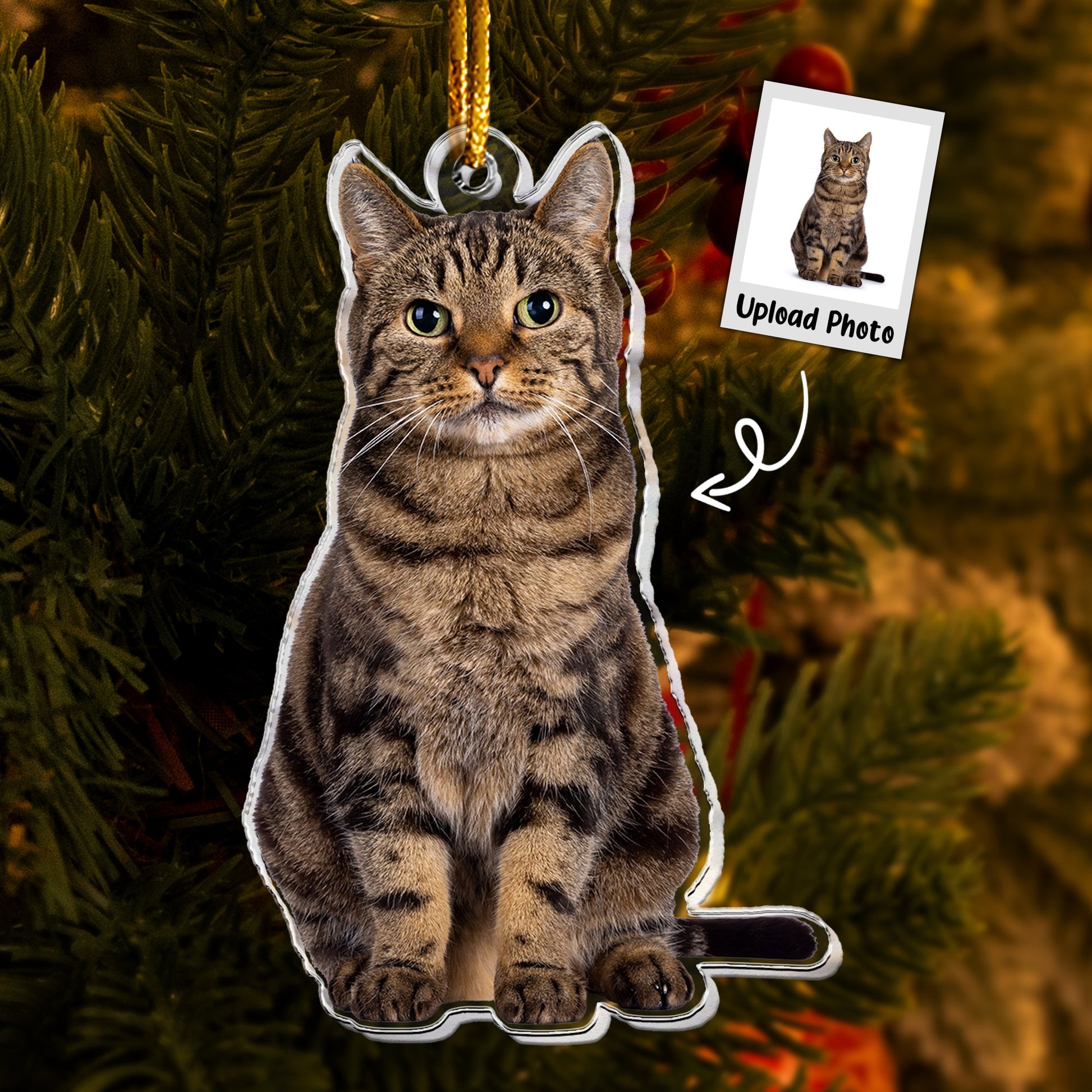 Tabby Cat Ornament - Tabby Cat Christmas Ornament - Personalized Acrylic Photo Ornament