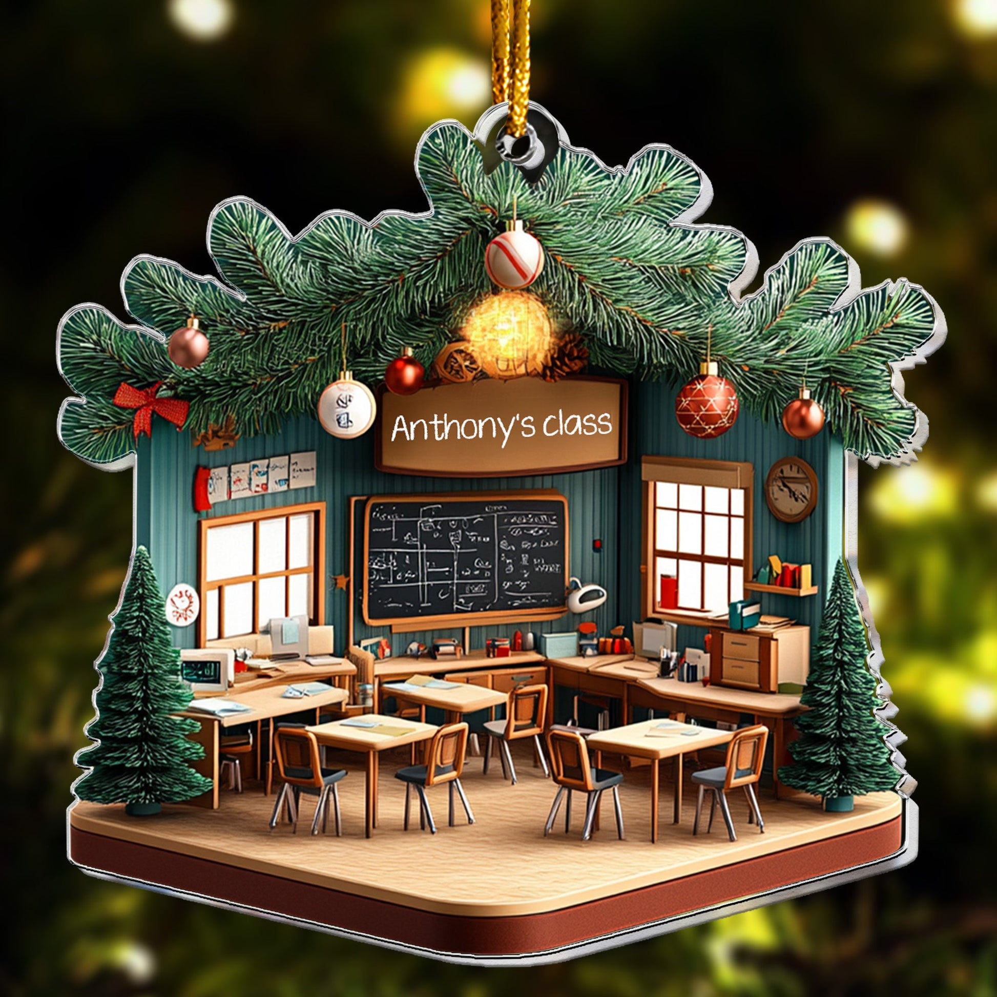 The Teacher Classroom Personalized Acrylic Ornament is a delightful, 2D flat ornament designed to celebrate and appreciate the incredible work of teachers. Crafted with a custom touch featuring a name, it’s perfect for hanging in the classroom, at home, or on a holiday tree, bringing a bit of classroom pride to any setting.