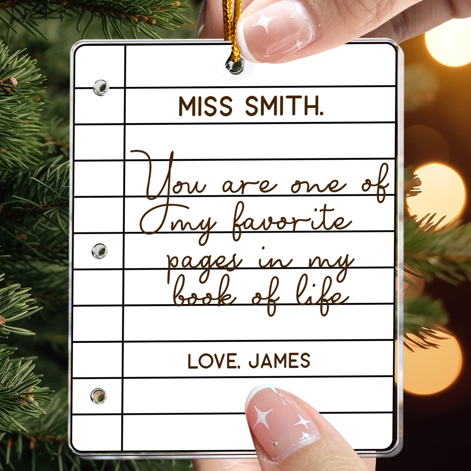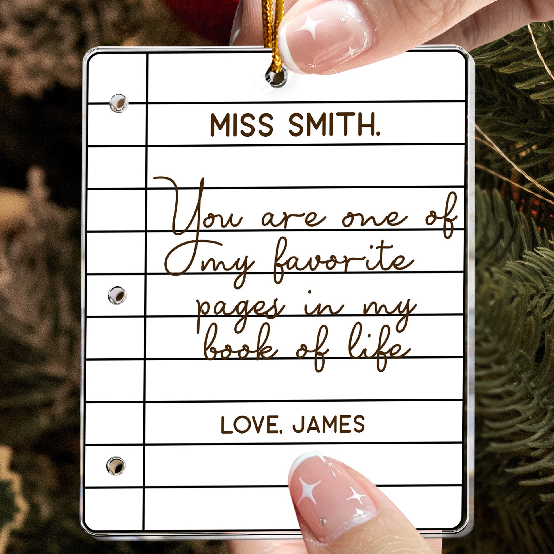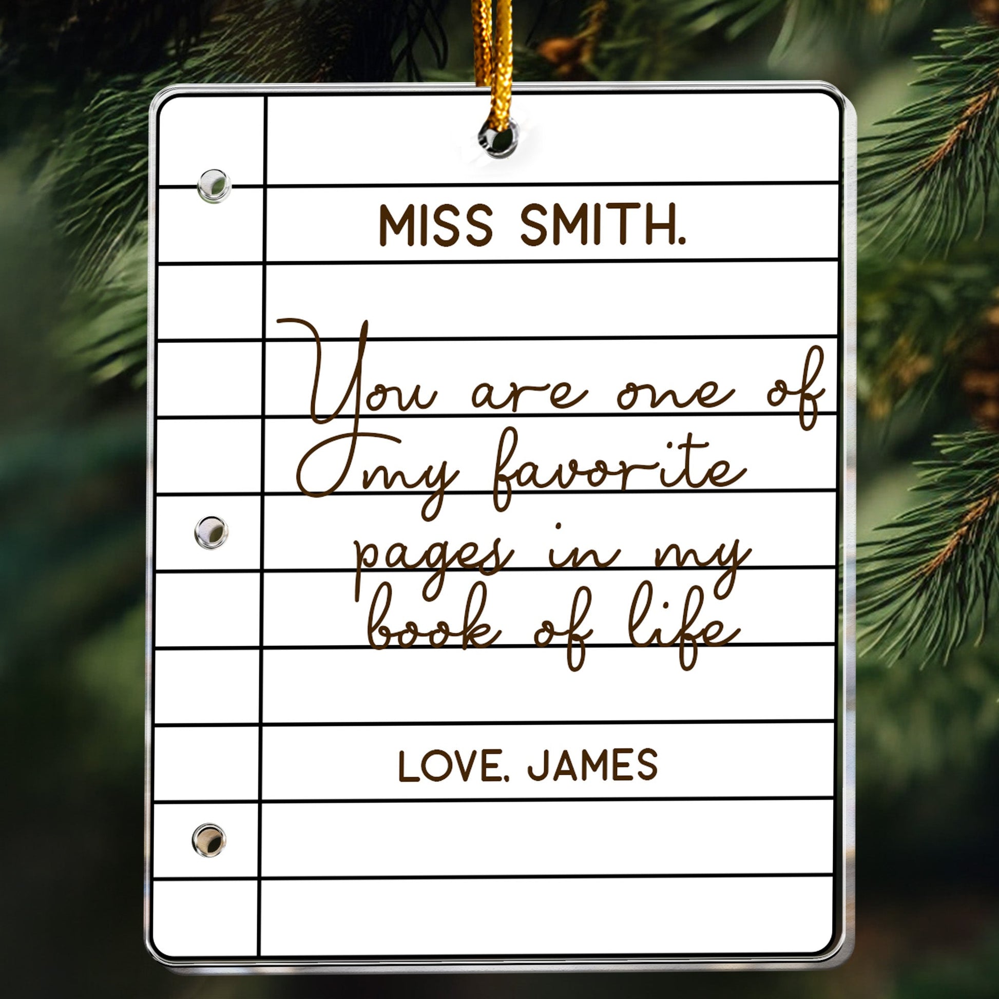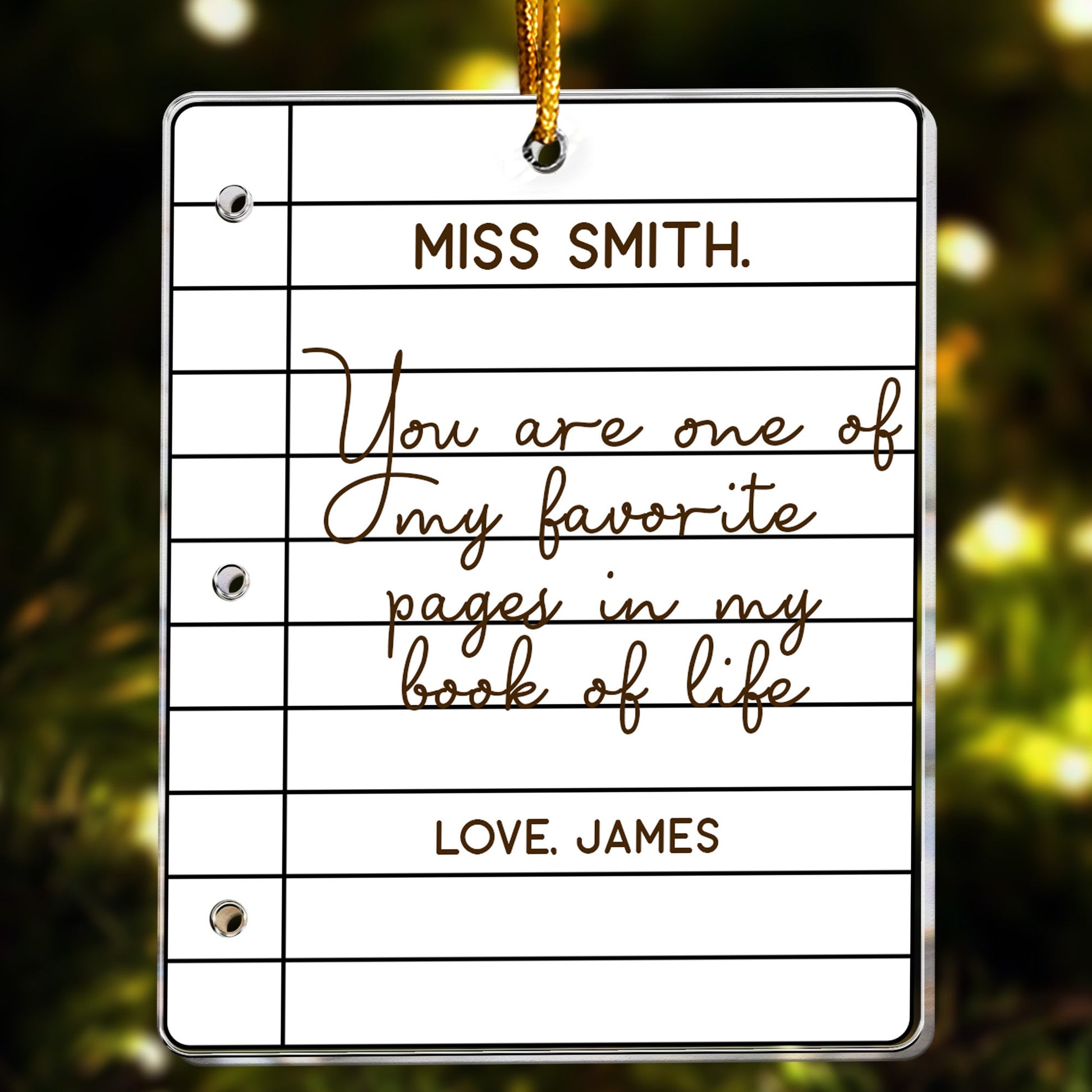 Teacher Ornament - Favorite Pages In My Book Of Life - Thank You Gift - Personalized Acrylic Ornament