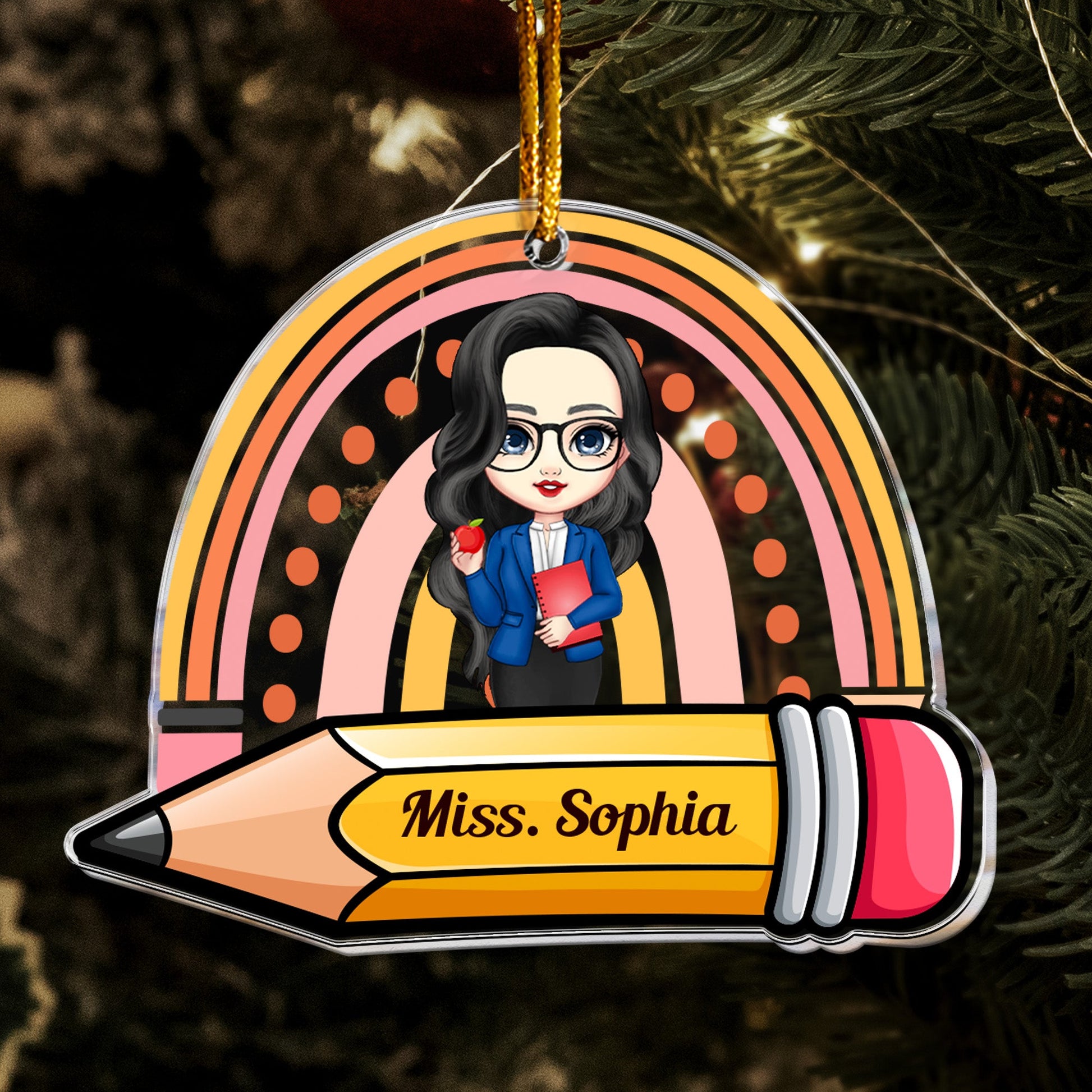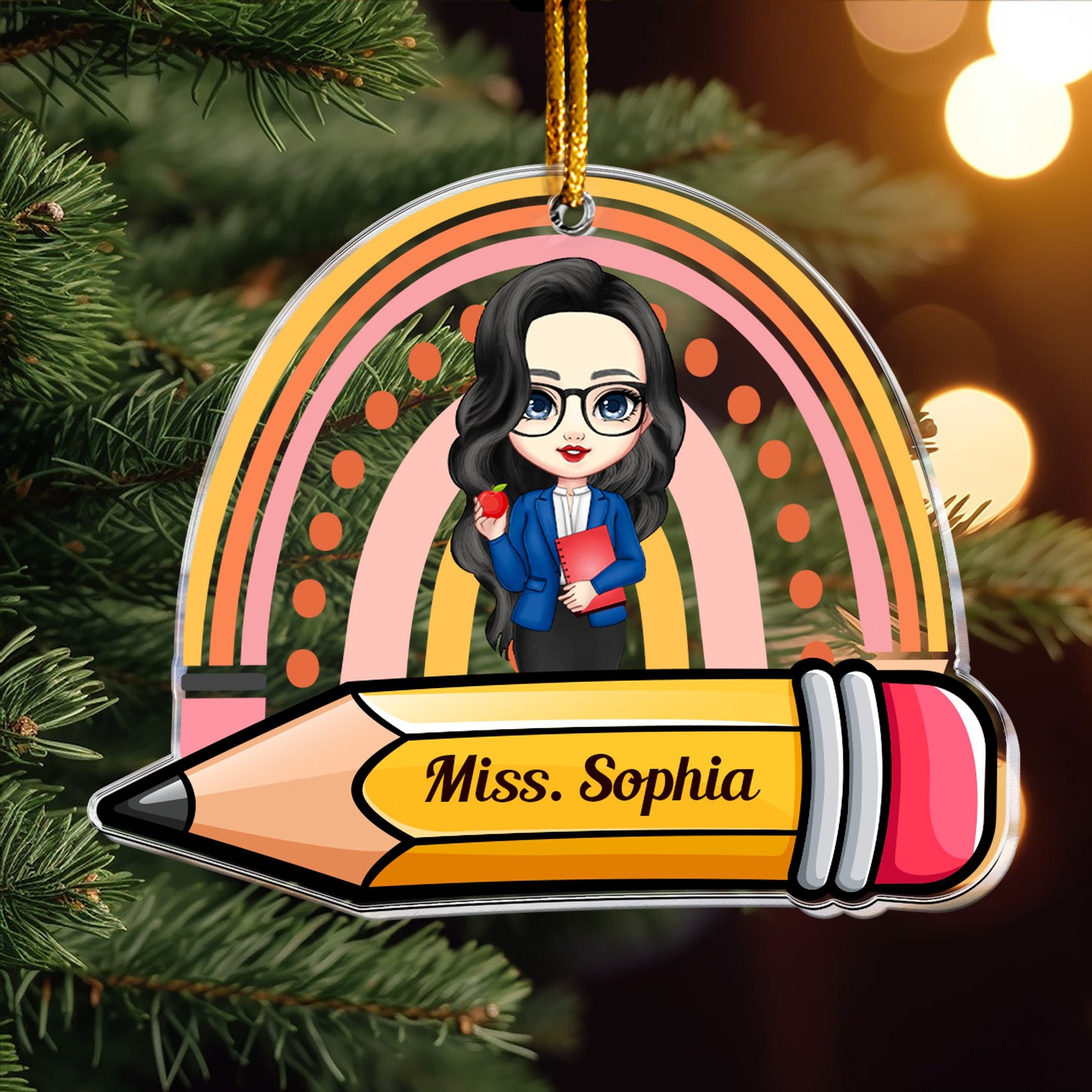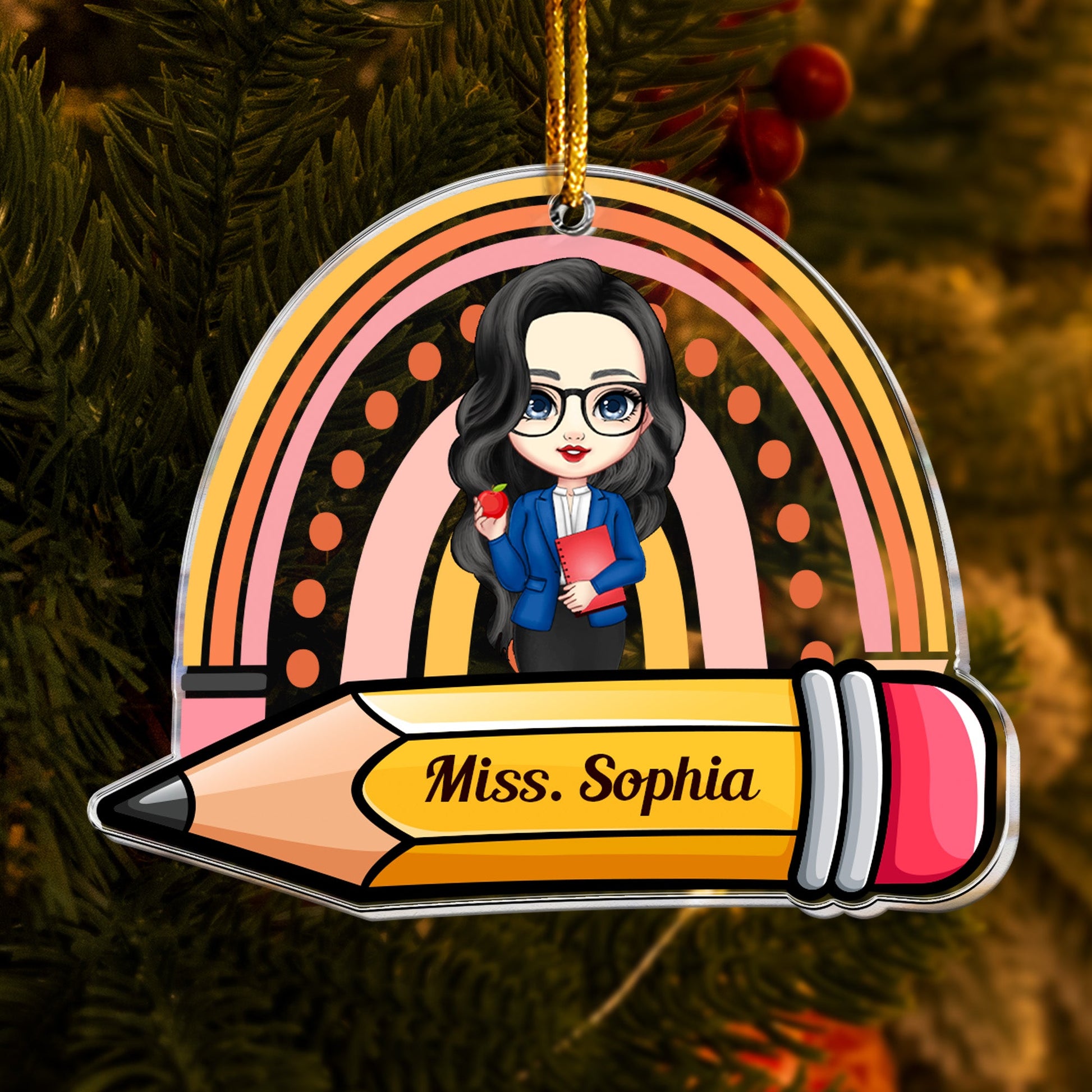 Teacher With Pencil And Boho Rainbow Christmas Ornament - Personalized Acrylic Ornament