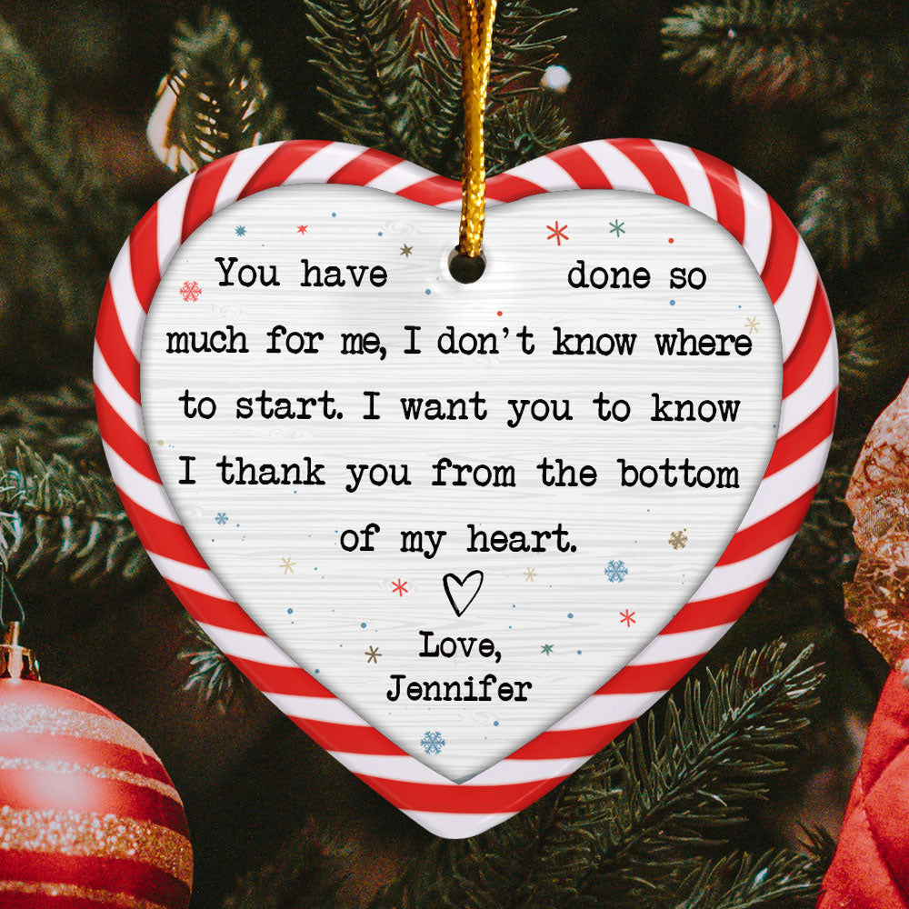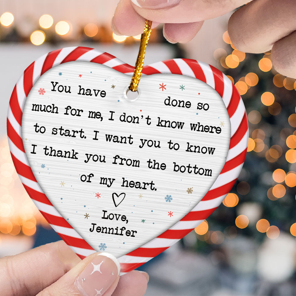 Thank You From The Bottom Of My Heart - Personalized Heart Shaped Ceramic Ornament