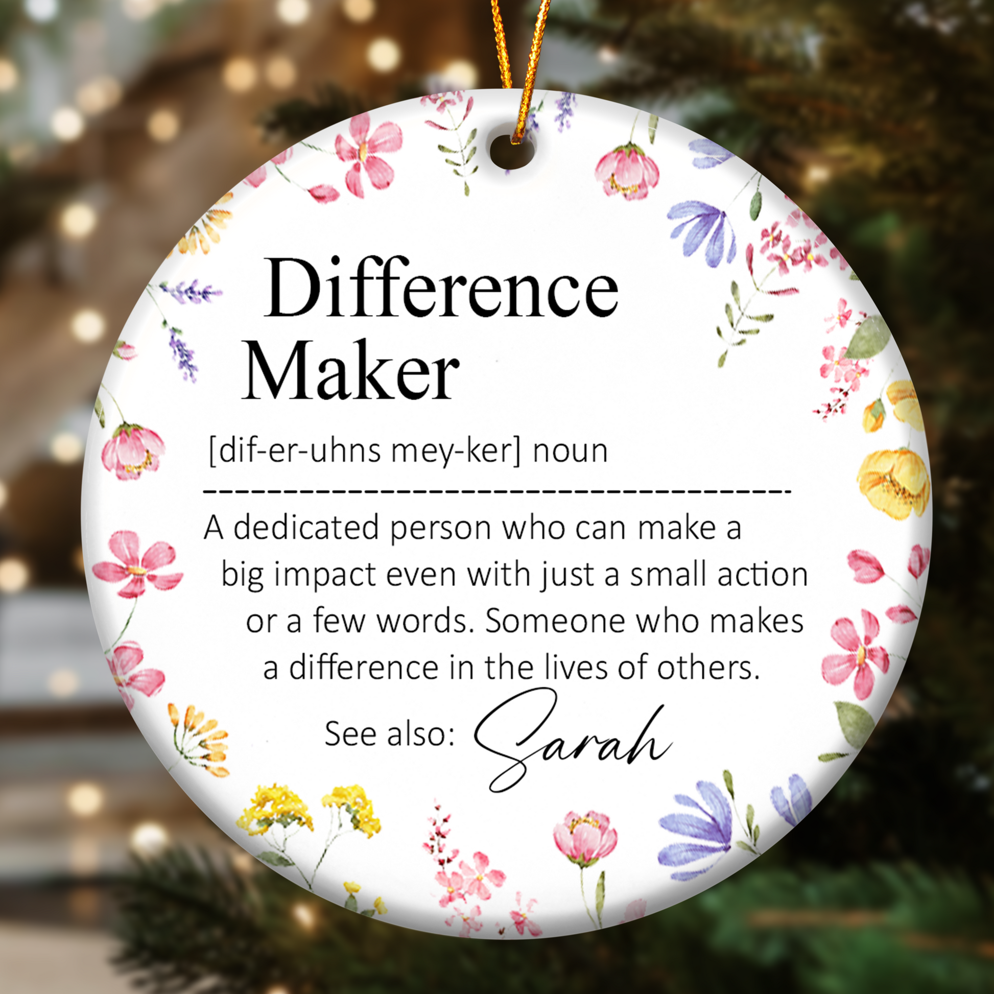 Thank You Gifts - Difference Maker - Mentor Appreciation For Coworkers, Family, Leader, Boss - Personalized Ceramic Ornament
