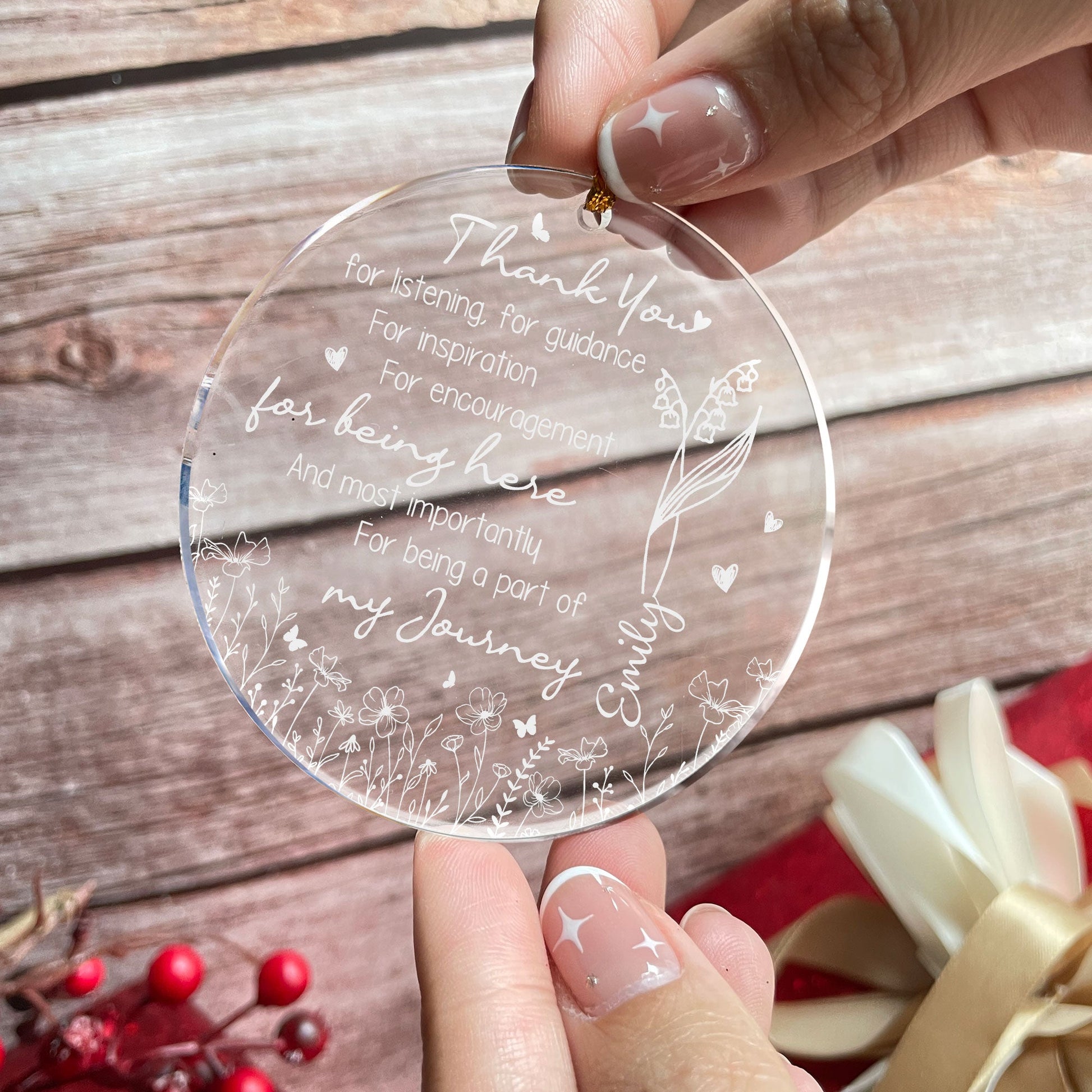 Show appreciation with this heartfelt thank you ornament gifts —a perfect way to honor the impact of a cherished work colleague, friend, teacher, or family member. Featuring custom birth flowers, it’s a beautiful and personalized keepsake that serves as a reminder of their meaningful contributions. Ideal as a thank you gift, leaving gift, Christmas gift, or birthday gift, this thoughtful piece makes a touching present for women, mom, friends, or anyone who deserves recognition. Give it to someone special—or even treat yourself—to celebrate the difference they make in the lives of those around them.