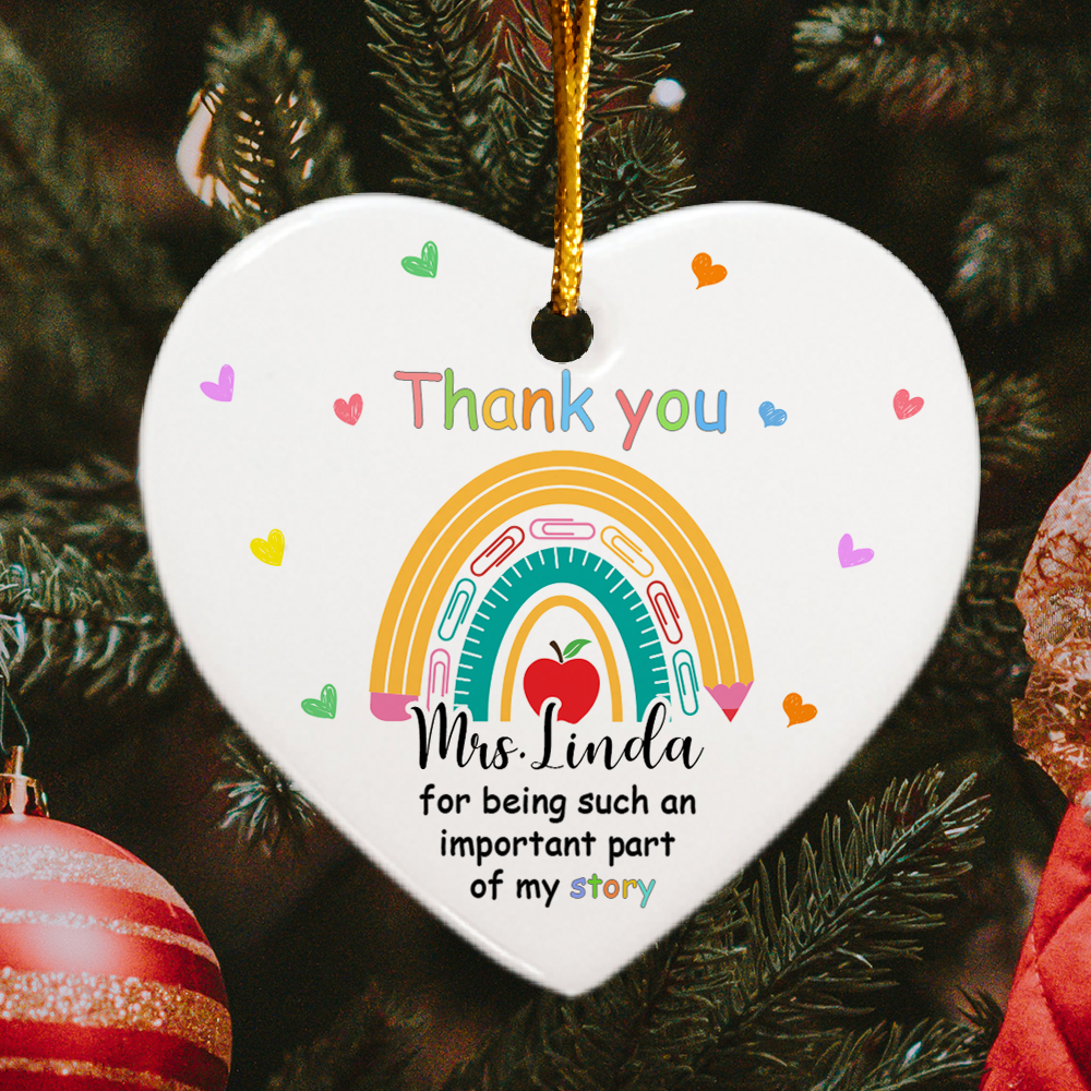 Thank You Teacher - Personalized Heart Shaped Ceramic Ornament