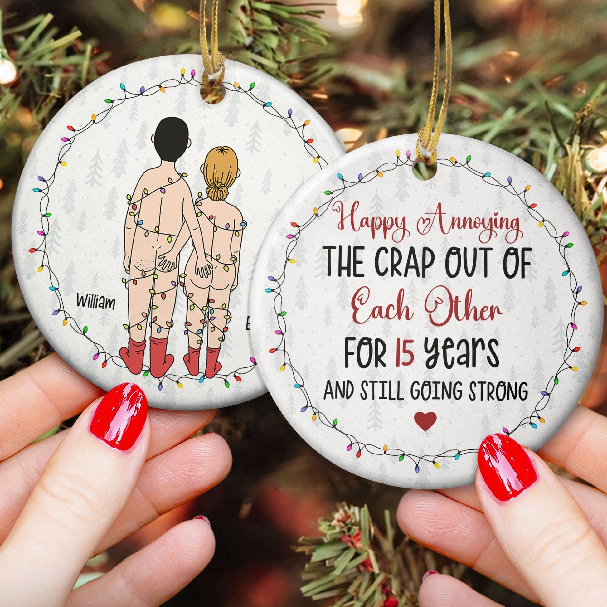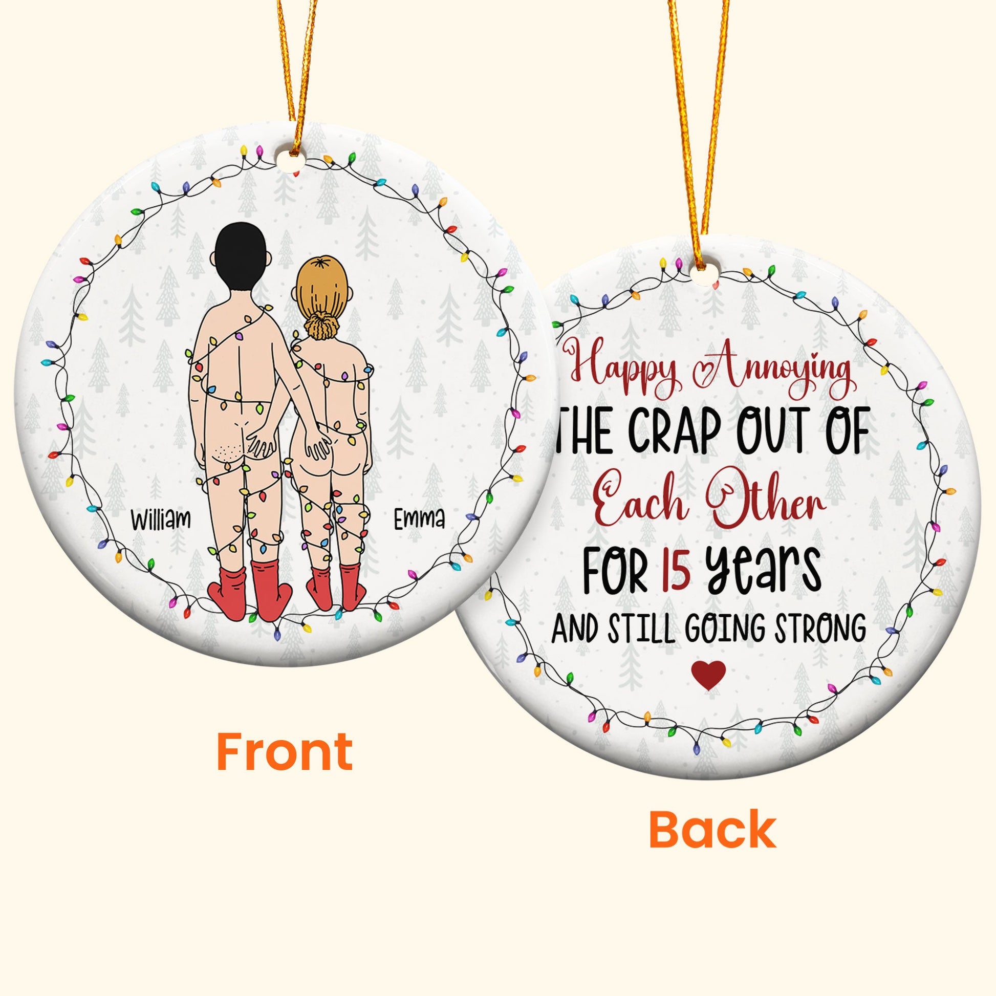 Celebrate love and laughter with our Funny Christmas Couples Personalized Ceramic Ornament. This unique ornament adds a playful touch to your Christmas tree, making it a perfect gift for him or her, whether it's your wife, husband, or boyfriend. Ideal for holiday decorations, this funny ornament is a memorable way to share joy during the festive season.